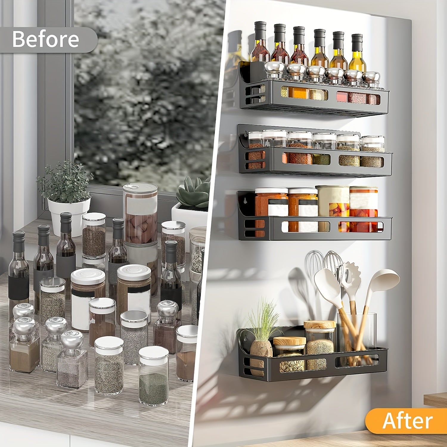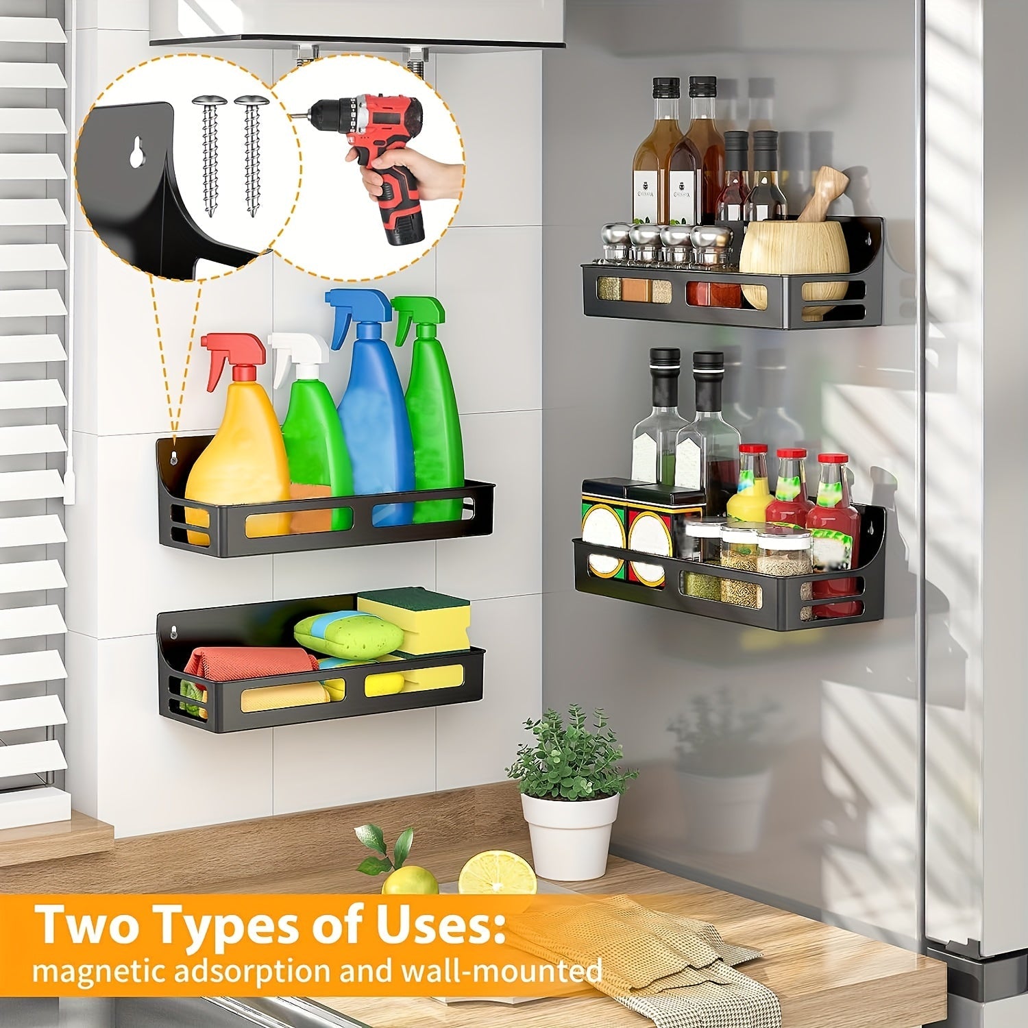 4 ta magnit ziravorlar tokchasi to'plami oshxona muzlatgichi uchun, yuqori sifatli plastik ziravorlar tashkilotchisi, magnit muzlatgich shelfi, oshxona tashkiloti va saqlash uchun ideal, zarur oshxona ta'minotlari