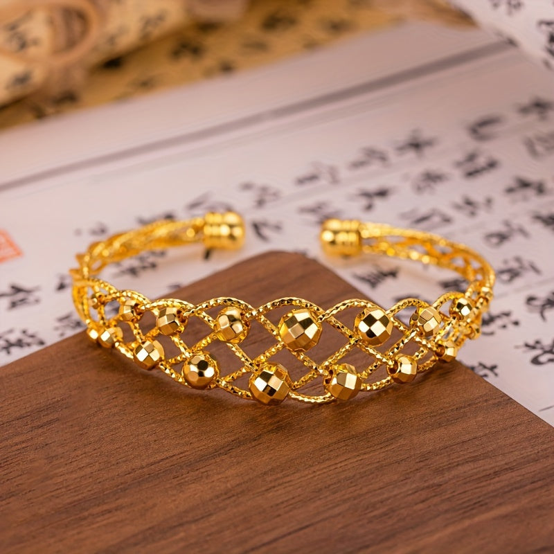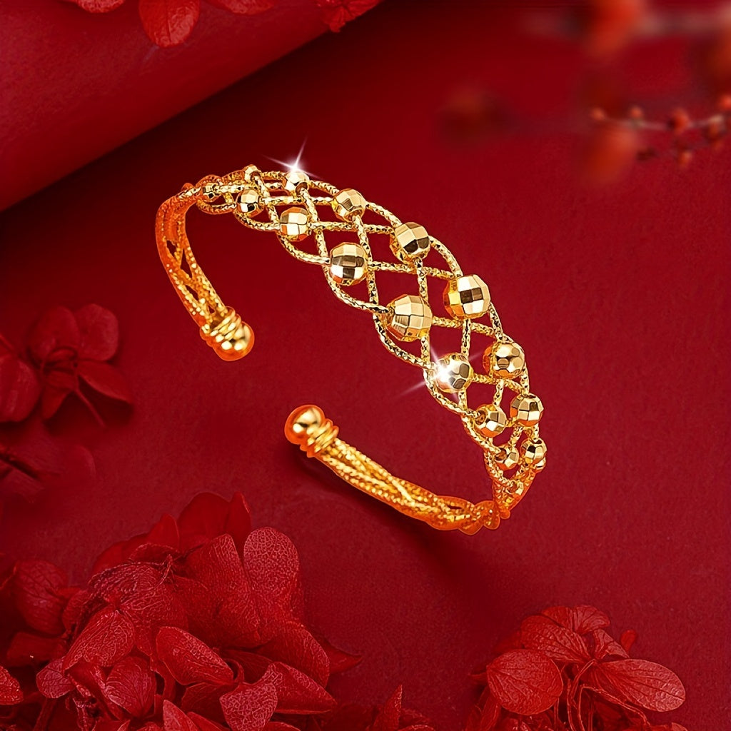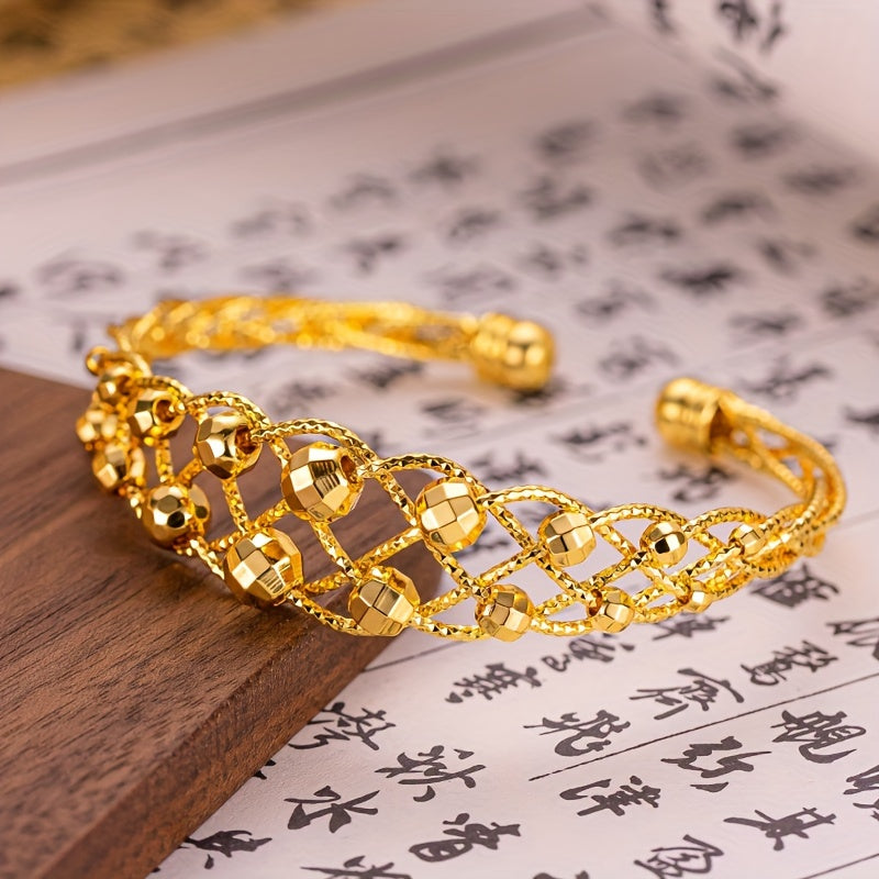 Oltin bilan qoplangan mis bilaguzuk, sozlanadigan ochiq bangil, porloq toʻqish dizayni