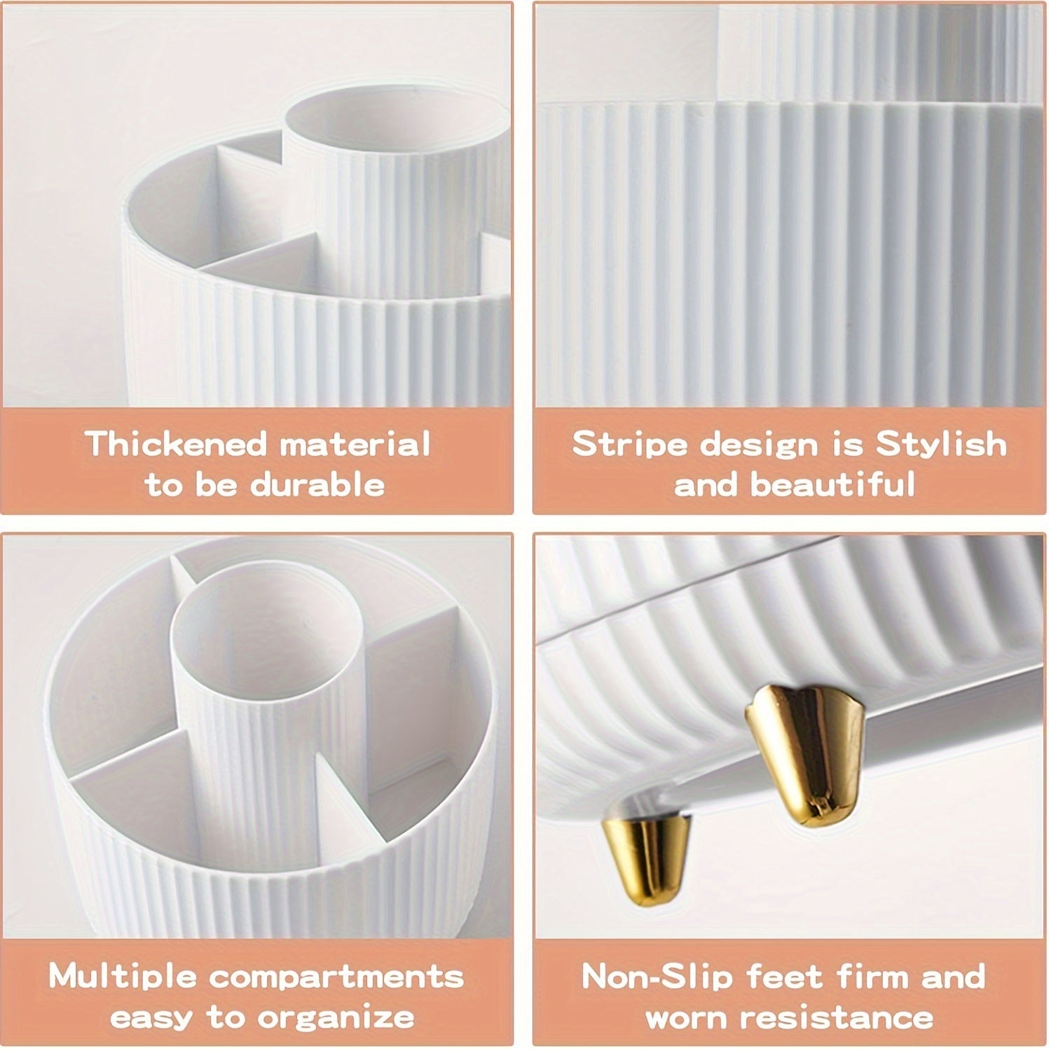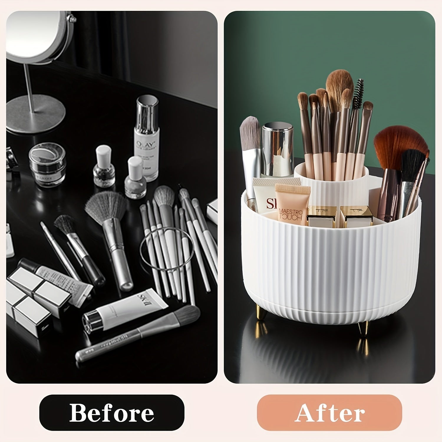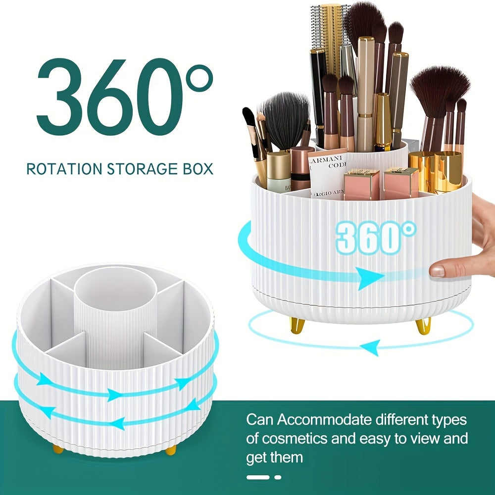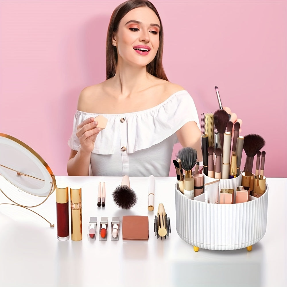 360° aylanish va cho'tkalar, lab bo'yoqlari va kansteynerlar uchun 5 ta bo'limga ega bo'lgan makiyaj cho'tkasi tashkilotchisi. Gippoallergen plastikdan tayyorlangan.