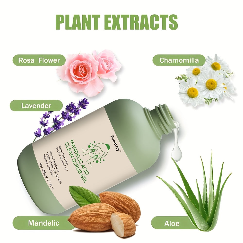 Aloe, Atirgul va Romashka bilan Mandelik Kislota Tozalovchi Gel - yuz va tanaga mo'ljallangan namlantiruvchi skrab, barcha teri turlari uchun mos, 7.05oz.