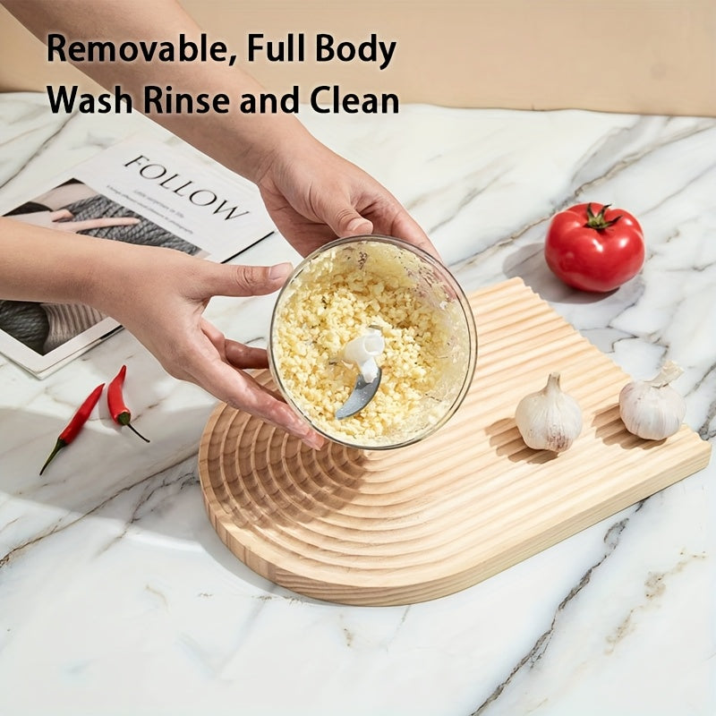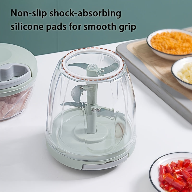 Qulay tutqichli qo'lda sarimsoq maydalagich, sarimsoq maydalash, chili bo'laklash va sous tayyorlash uchun shaffof stakanda mo'ljallangan. Ona kuniga mos.