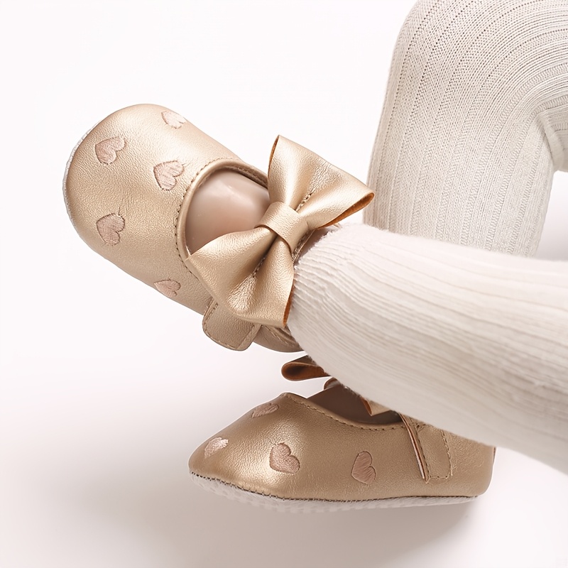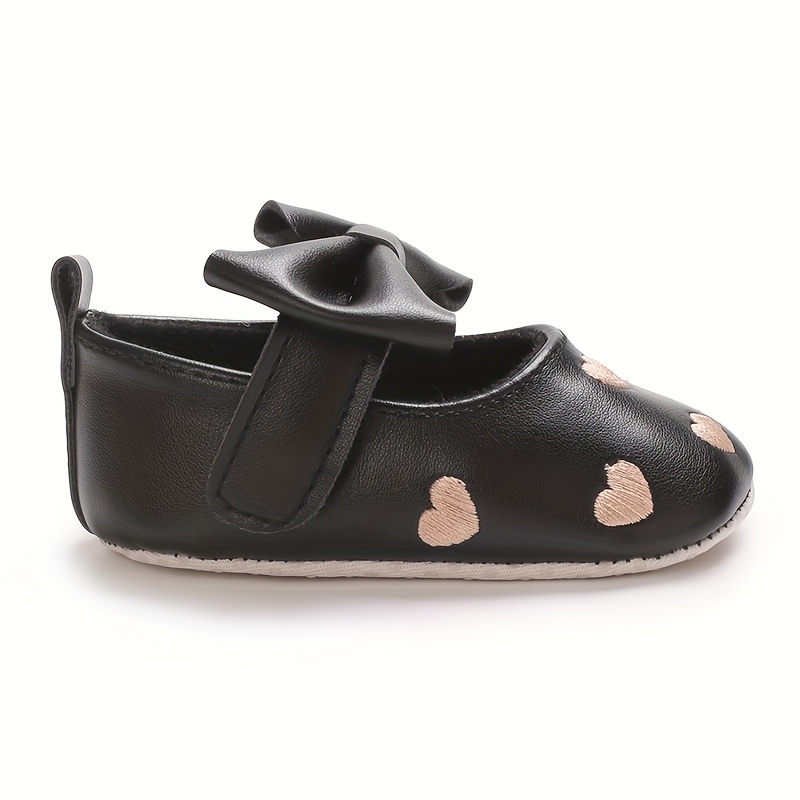 Mary Jane chaqaloq poyabzallari qora, pushti va oltin ranglarda, bog‘ich va yurak dizaynlari bilan bahor/kovak uchun.