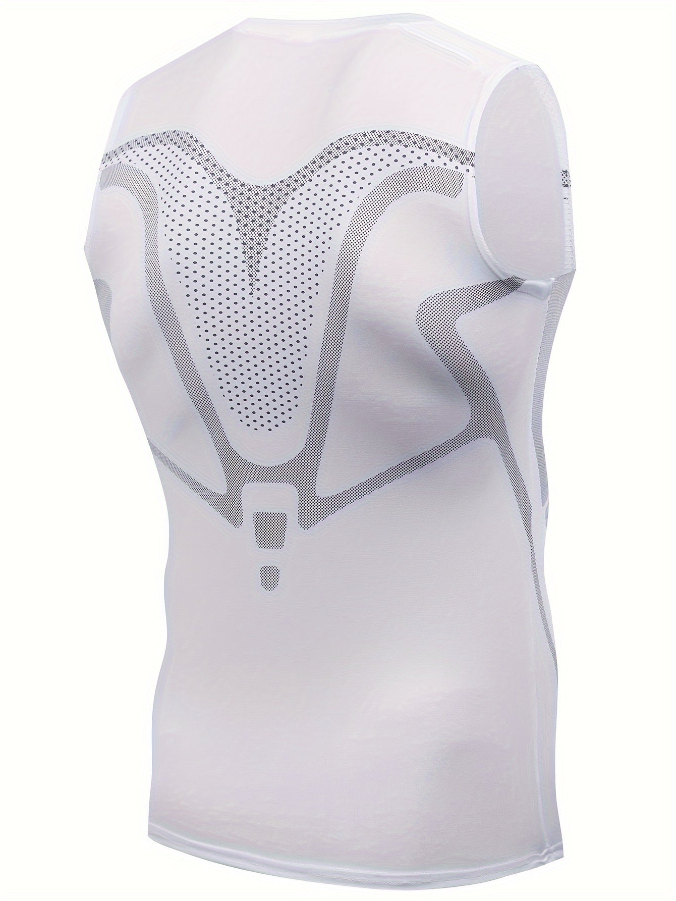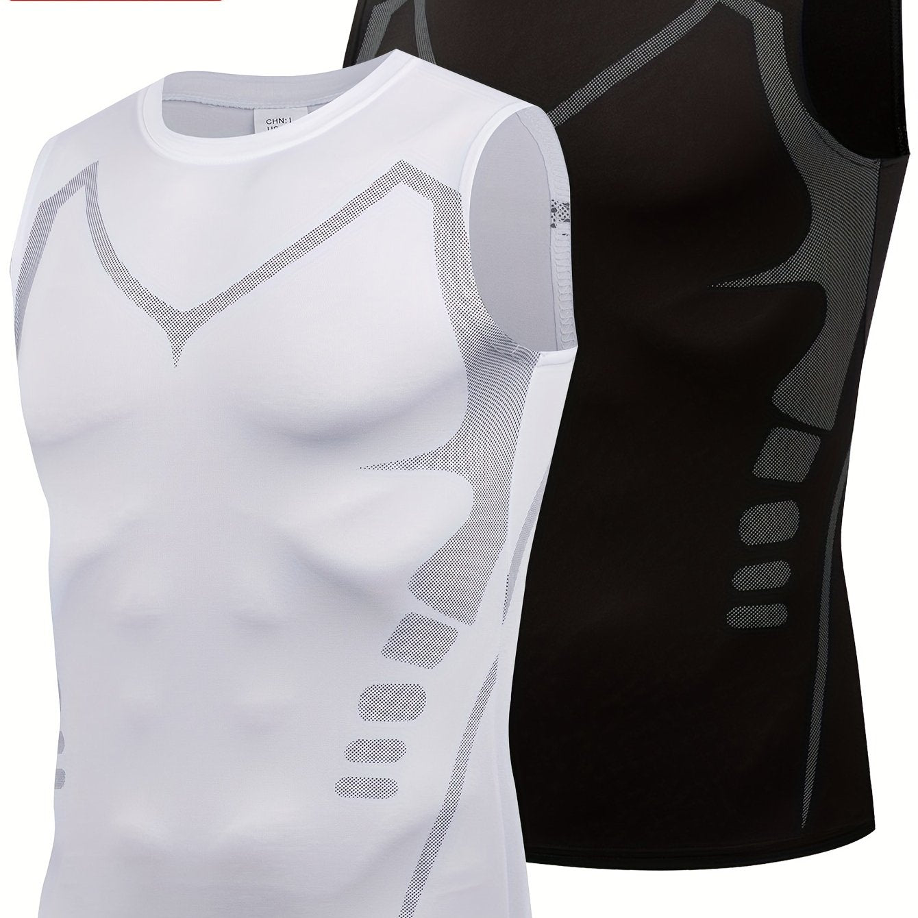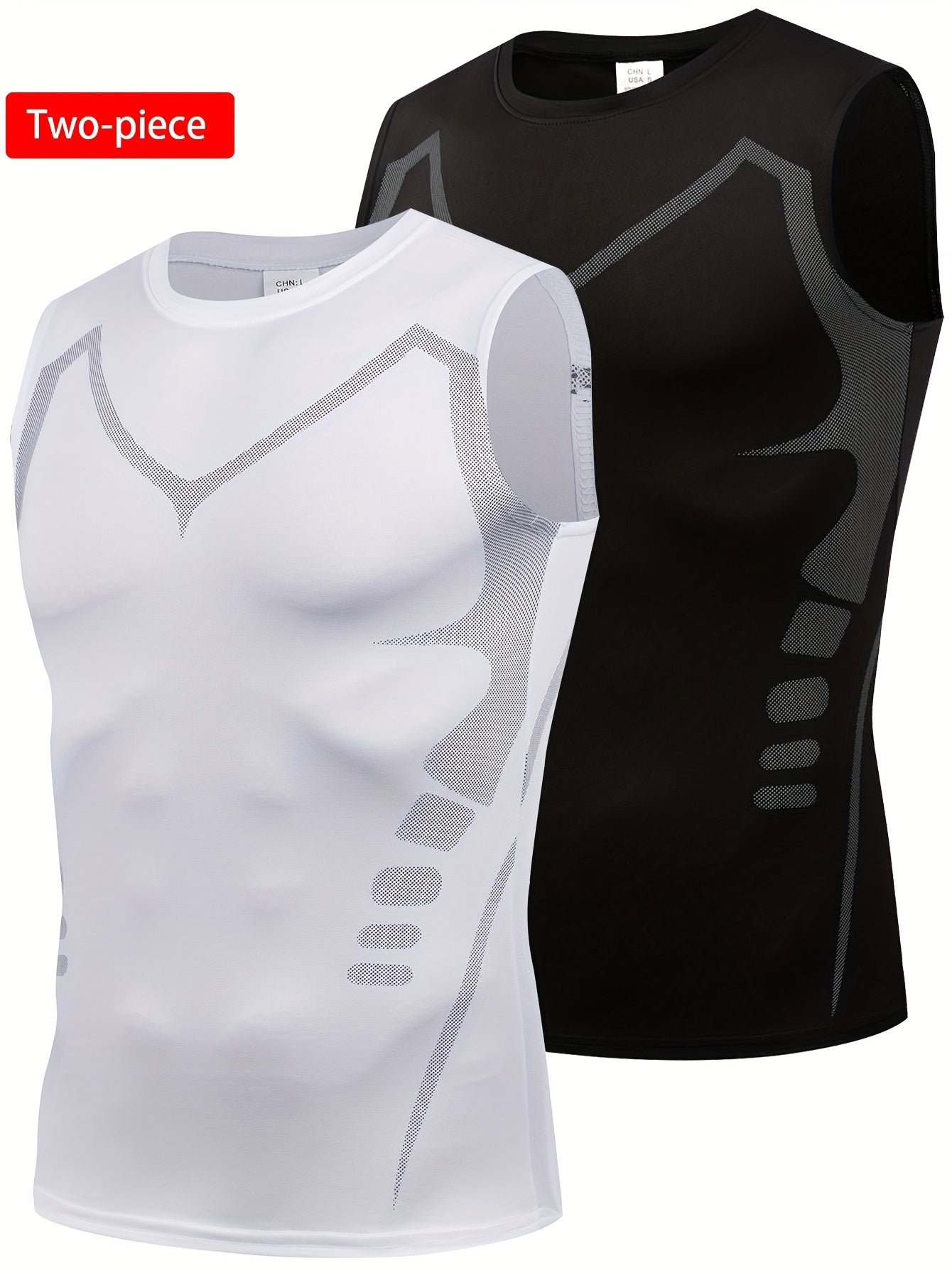 Erkaklar uchun 2 qismli sport tanki, tez quriydigan, nafas oladigan va ingichka siqish xususiyatlariga ega, geometrik dizayn bilan.