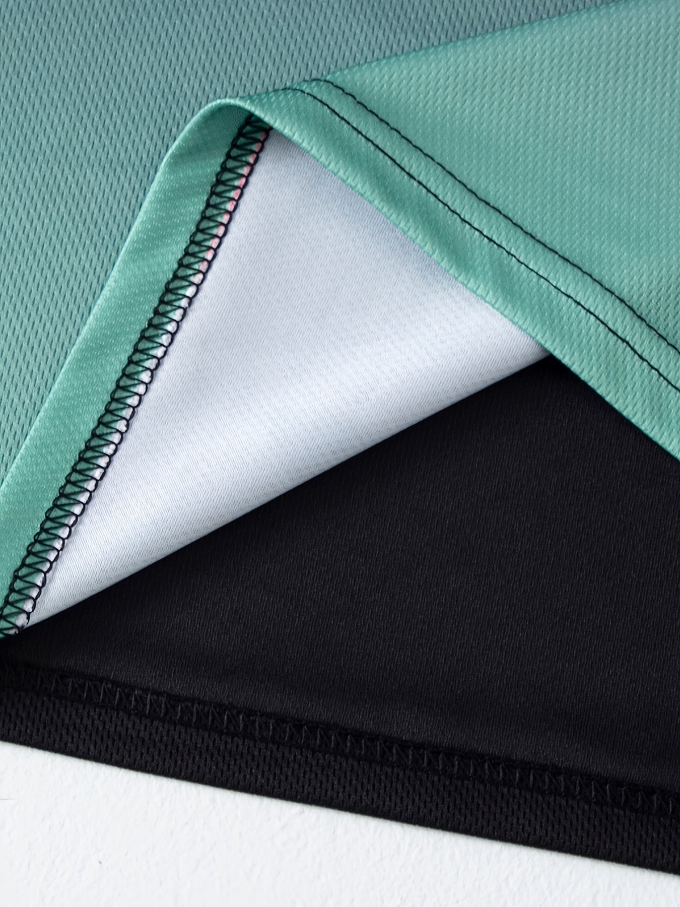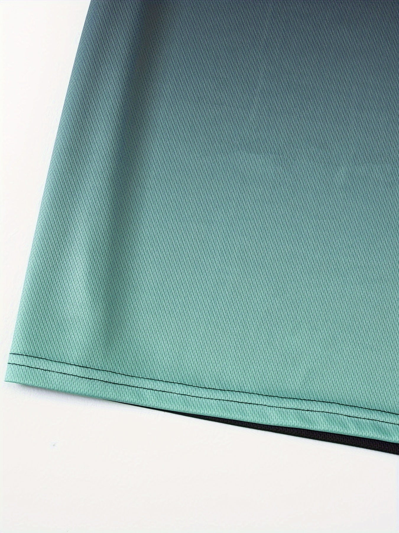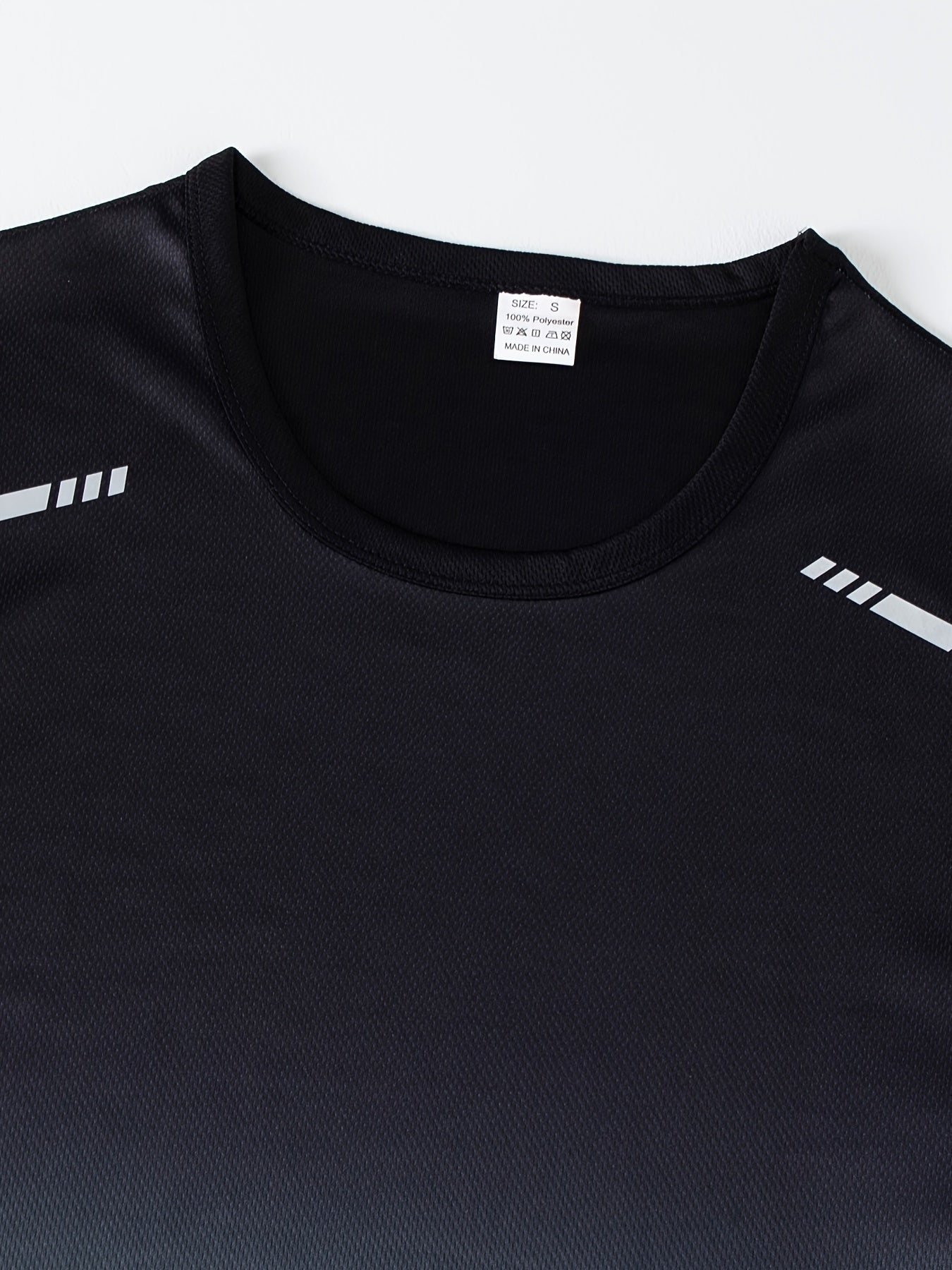 Erkaklar uchun 2 qismli sport kiyimlari to'plami, qisqa yengli ko'ylak va gradient rangdagi shortlar, nafas oladigan va tez quriydigan, oddiy moslikda.