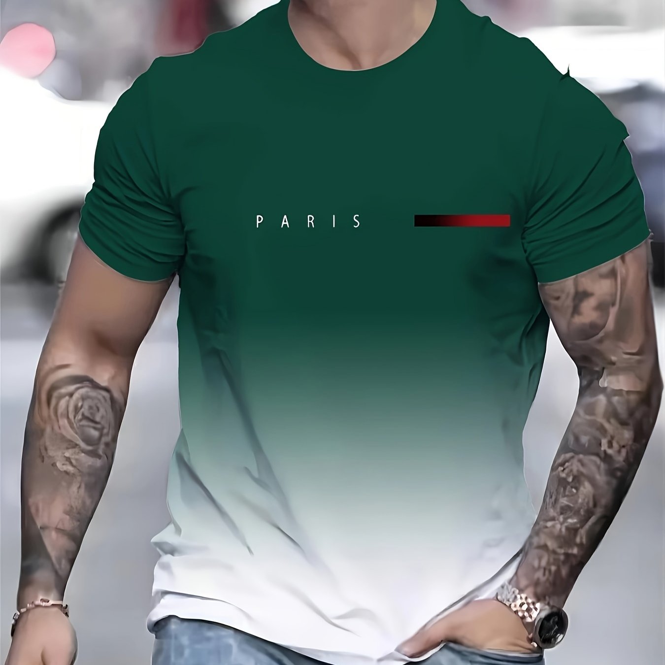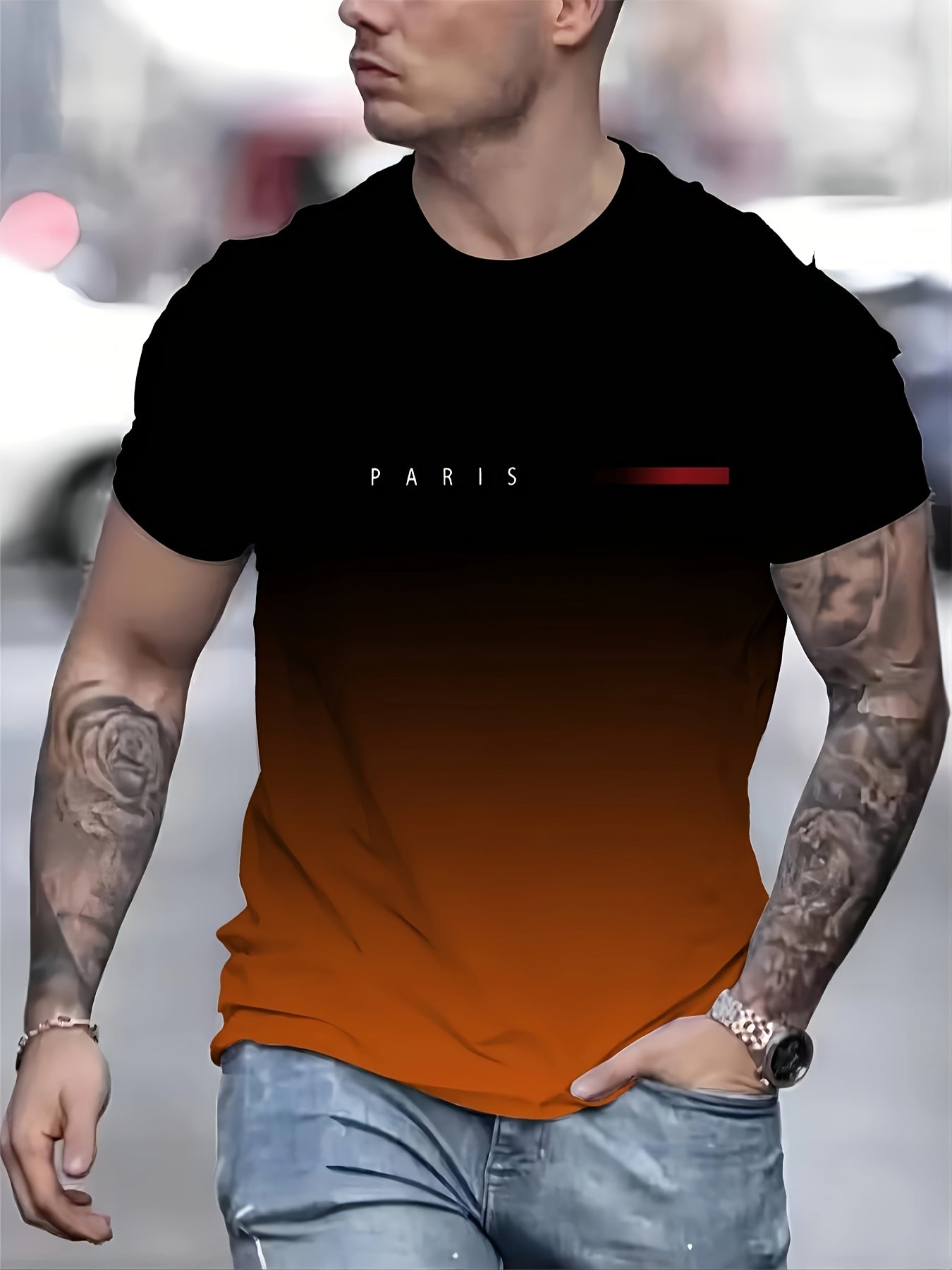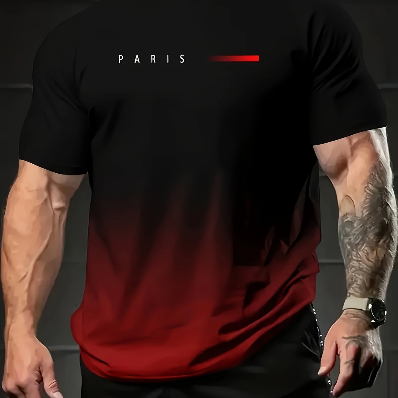 Erkaklar uchun 3D bosilgan sport futbolkasi, gradient rangda, 100% polyesterdan tayyorlangan, yumshoq bo'yinli, oddiy kesim va yozgi to'qima mato. Tasodifiy sport kiyimlari uchun mukammal, silliq tuzilishga ega va