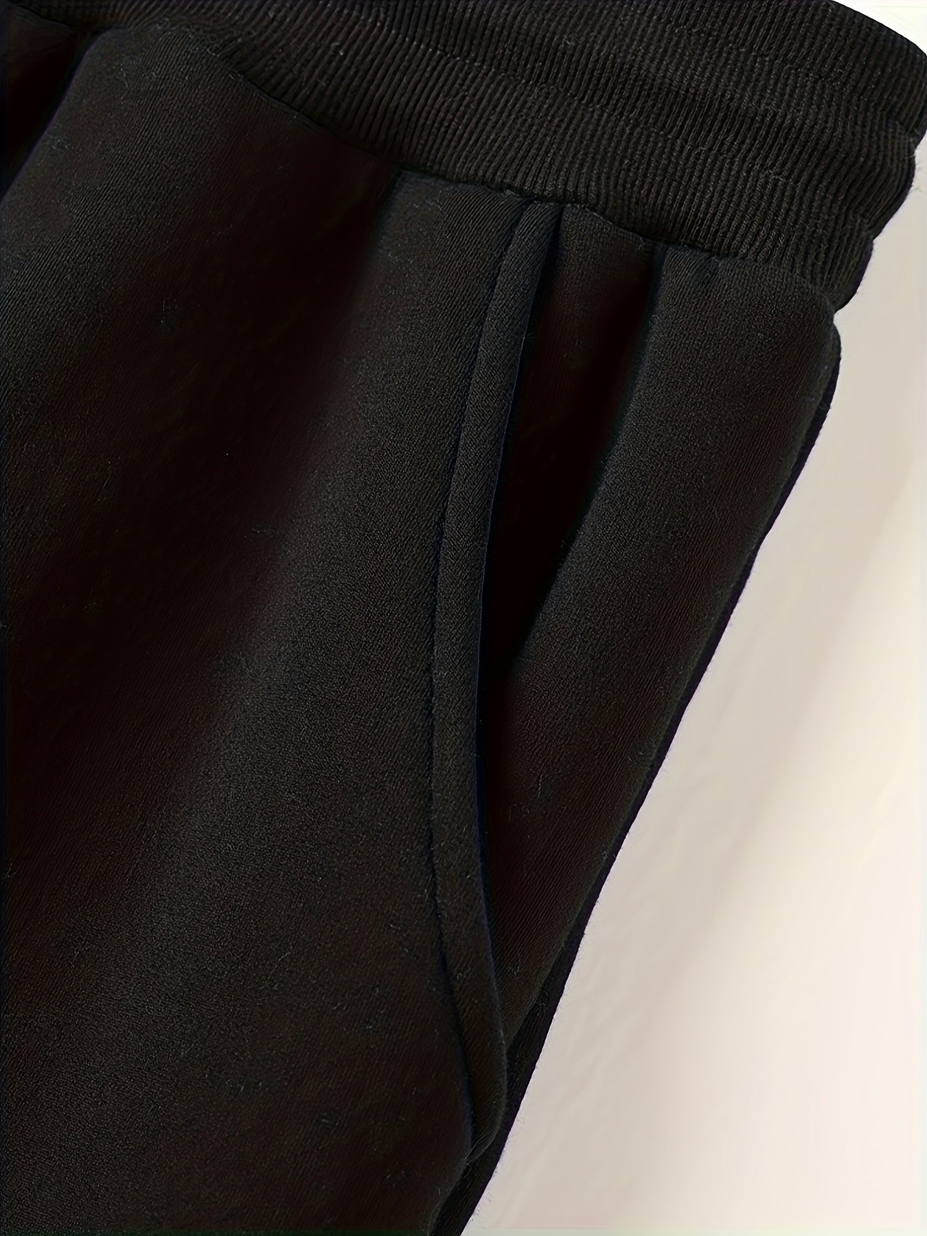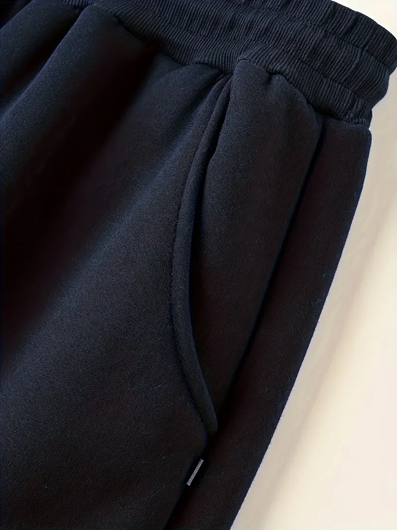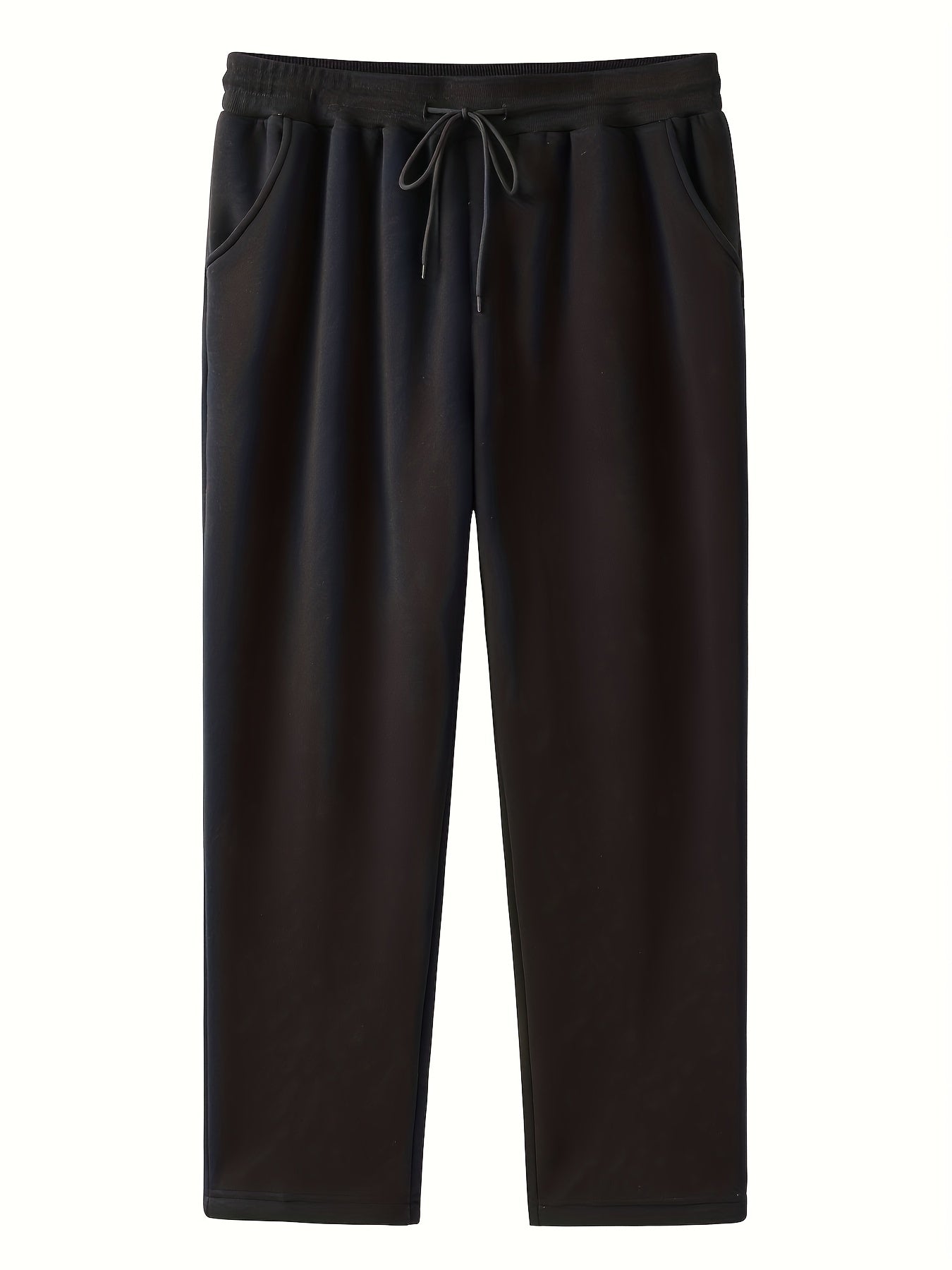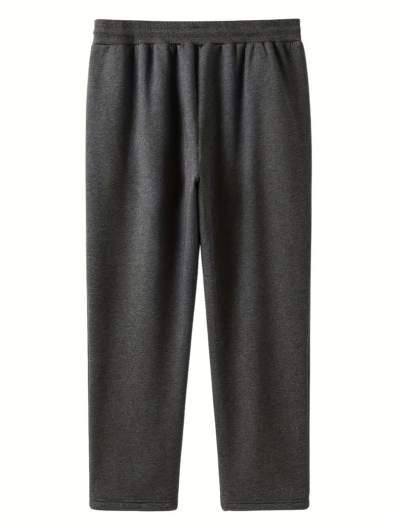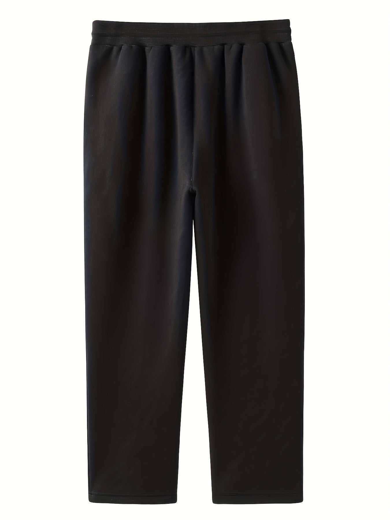 Erkaklar uchun kuz/qish fleytsli tasodifiy sport shimlari - Keng kesim, bir rangda, tortma bel, cho'ntaklar, KATTA O'LCHAM