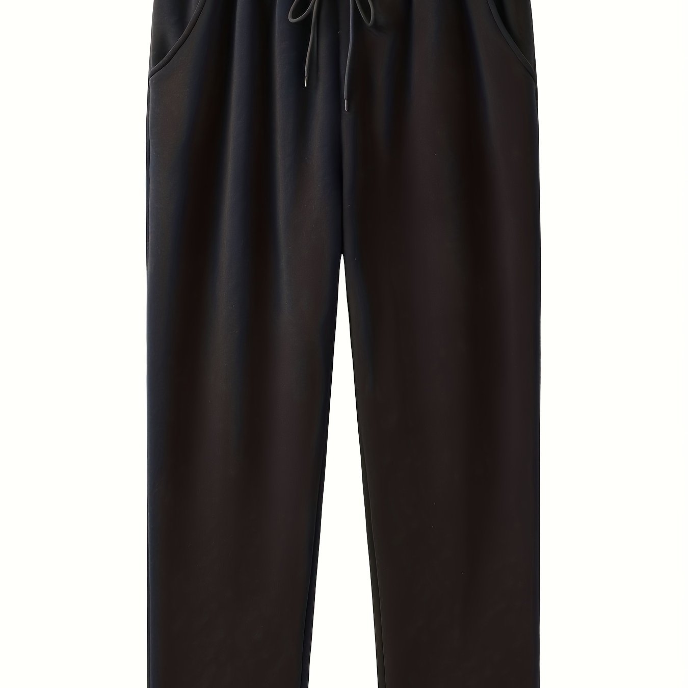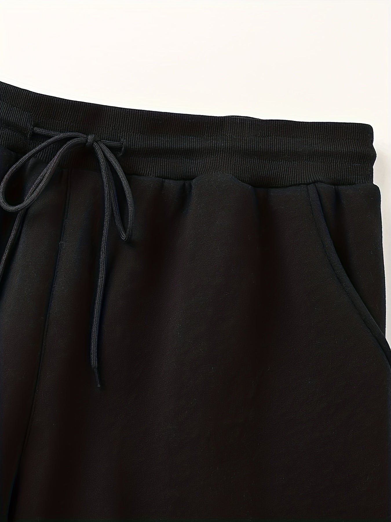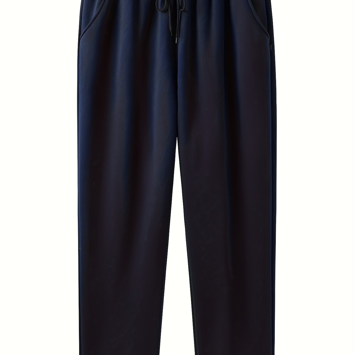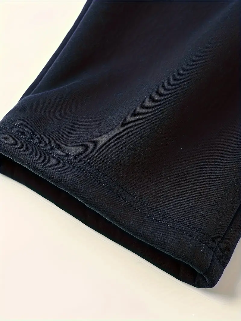 Erkaklar uchun kuz/qish fleytsli tasodifiy sport shimlari - Keng kesim, bir rangda, tortma bel, cho'ntaklar, KATTA O'LCHAM
