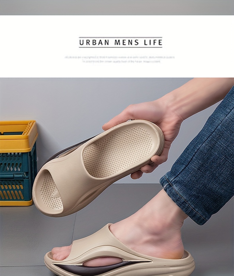 Erkaklar uchun bej EVA slaydlar, kamon qo'llab-quvvatlash bilan - qulaylik uchun qalin yumshoq taglik, tez quriydigan va sirpanmaydigan - bahor/yoz/kuzda ichki/tashqi foydalanish uchun mukammal