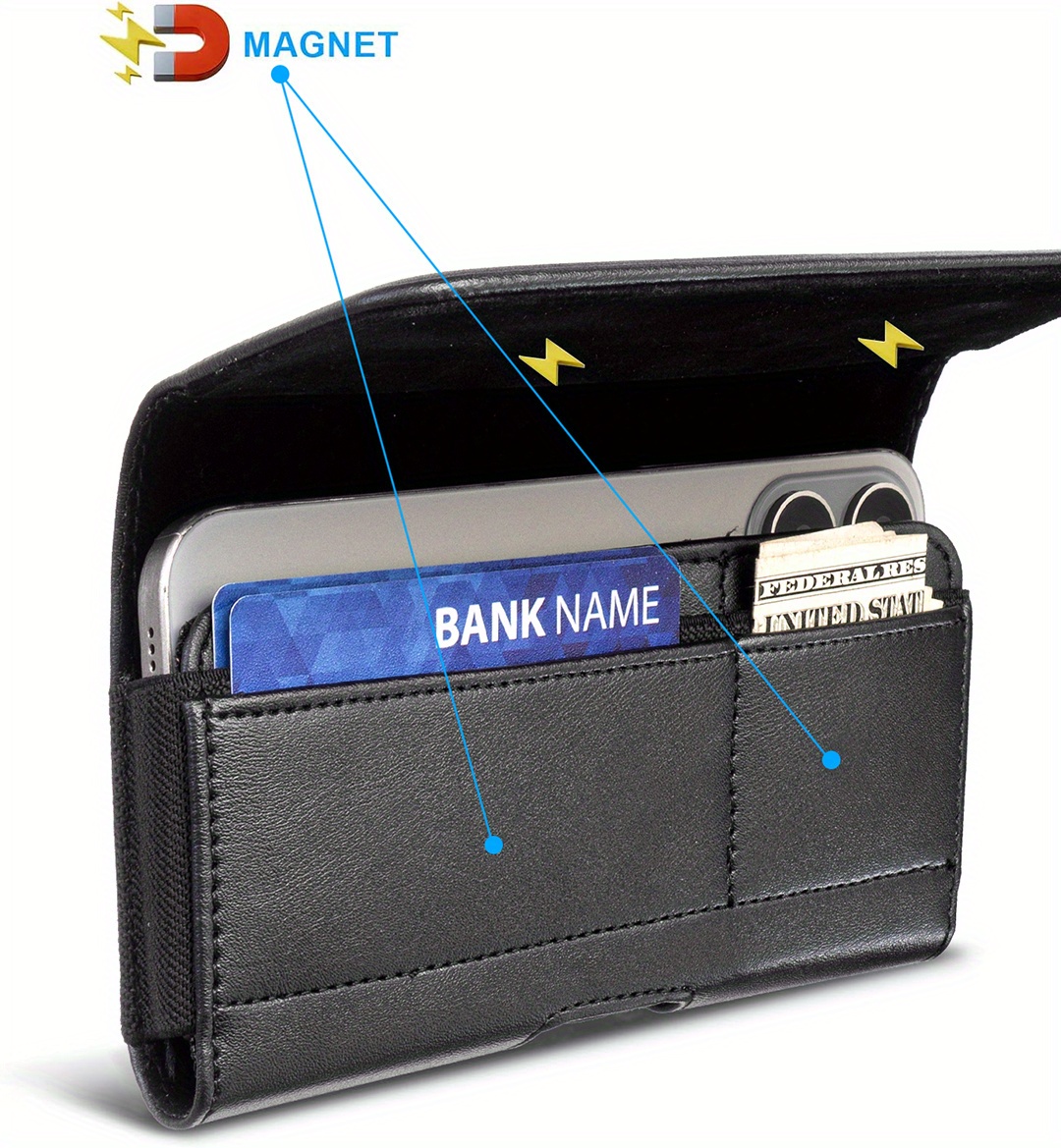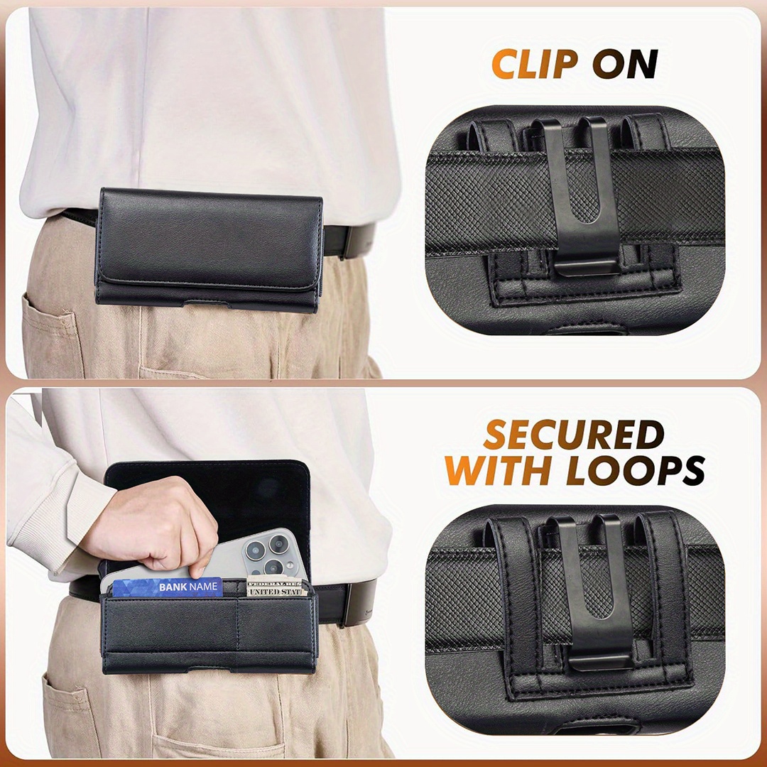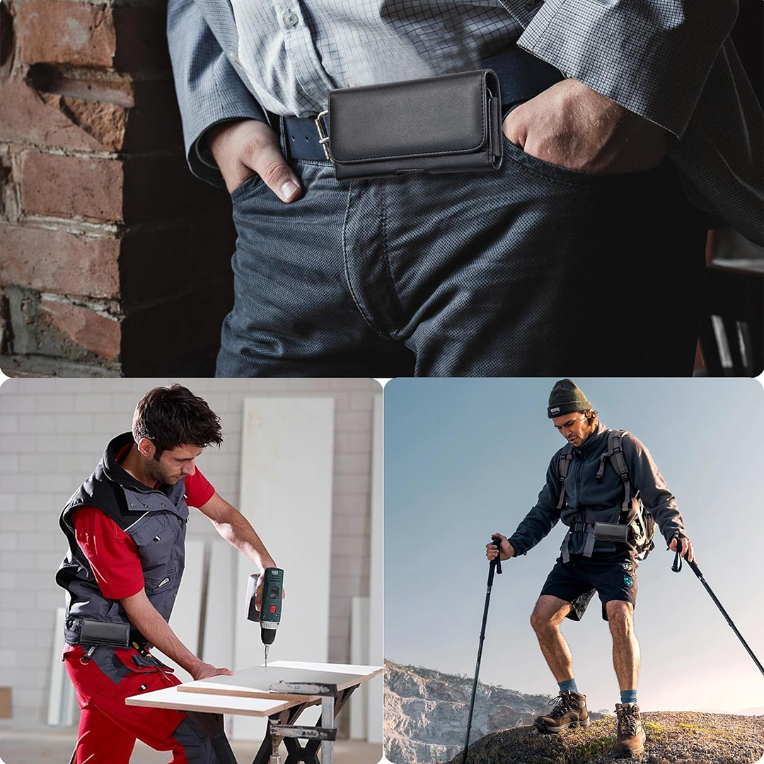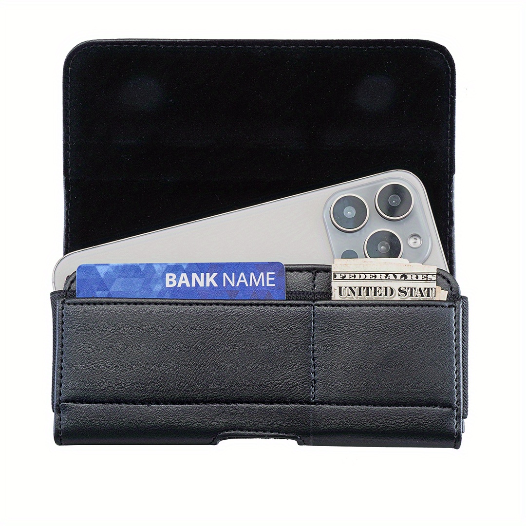 Erkaklar uchun ko'p funksiyali sun'iy charm telefon qopqog'i, turli iPhone va Samsung Galaxy modellari uchun kredit karta va naqd pul joylari bilan.