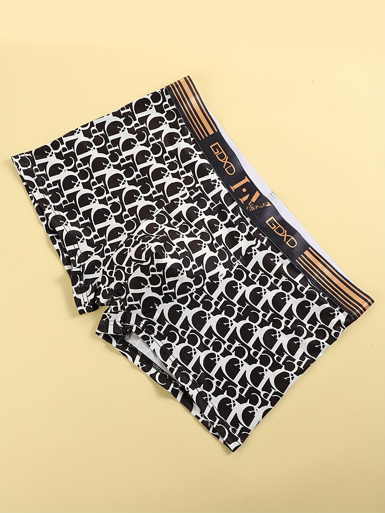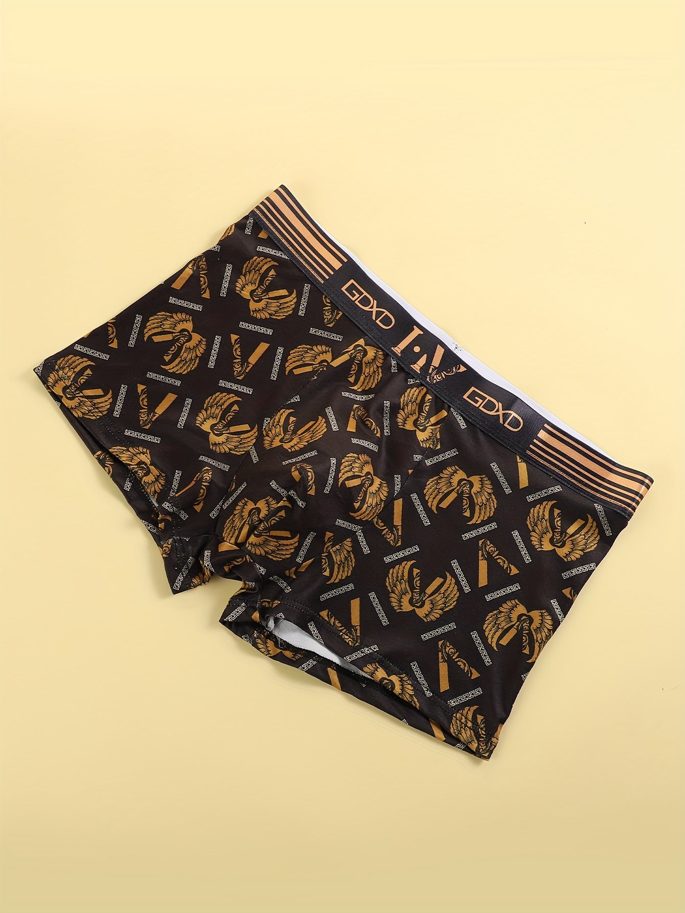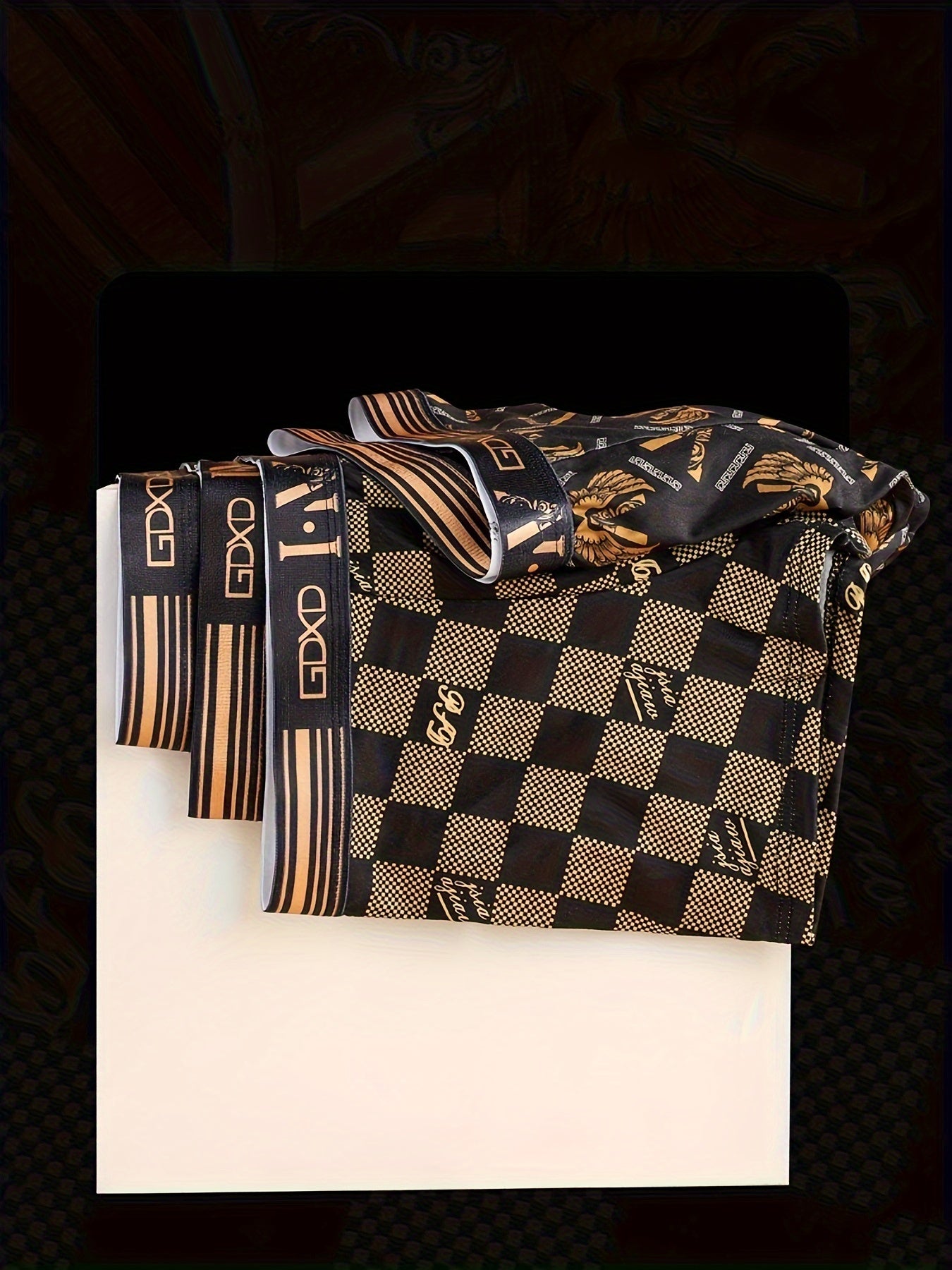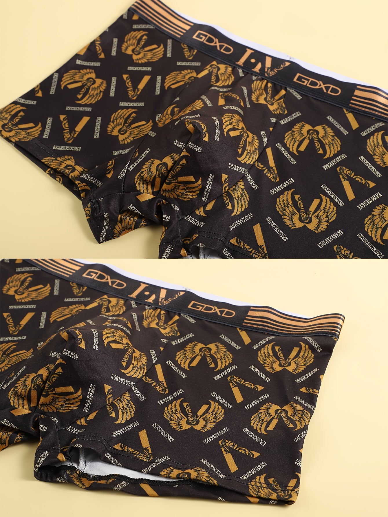 Erkaklar uchun qora va oltin naqshli bosma ichki kiyim to'plami, sport mashg'ulotlari va kundalik fitnes uchun ideal elastik sport shimlari bilan.