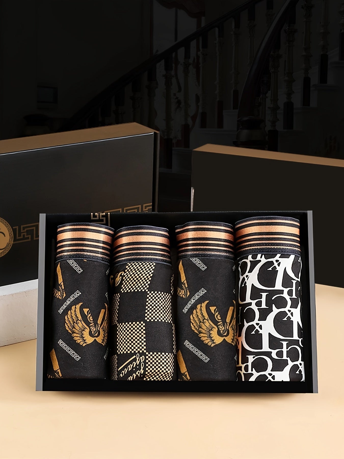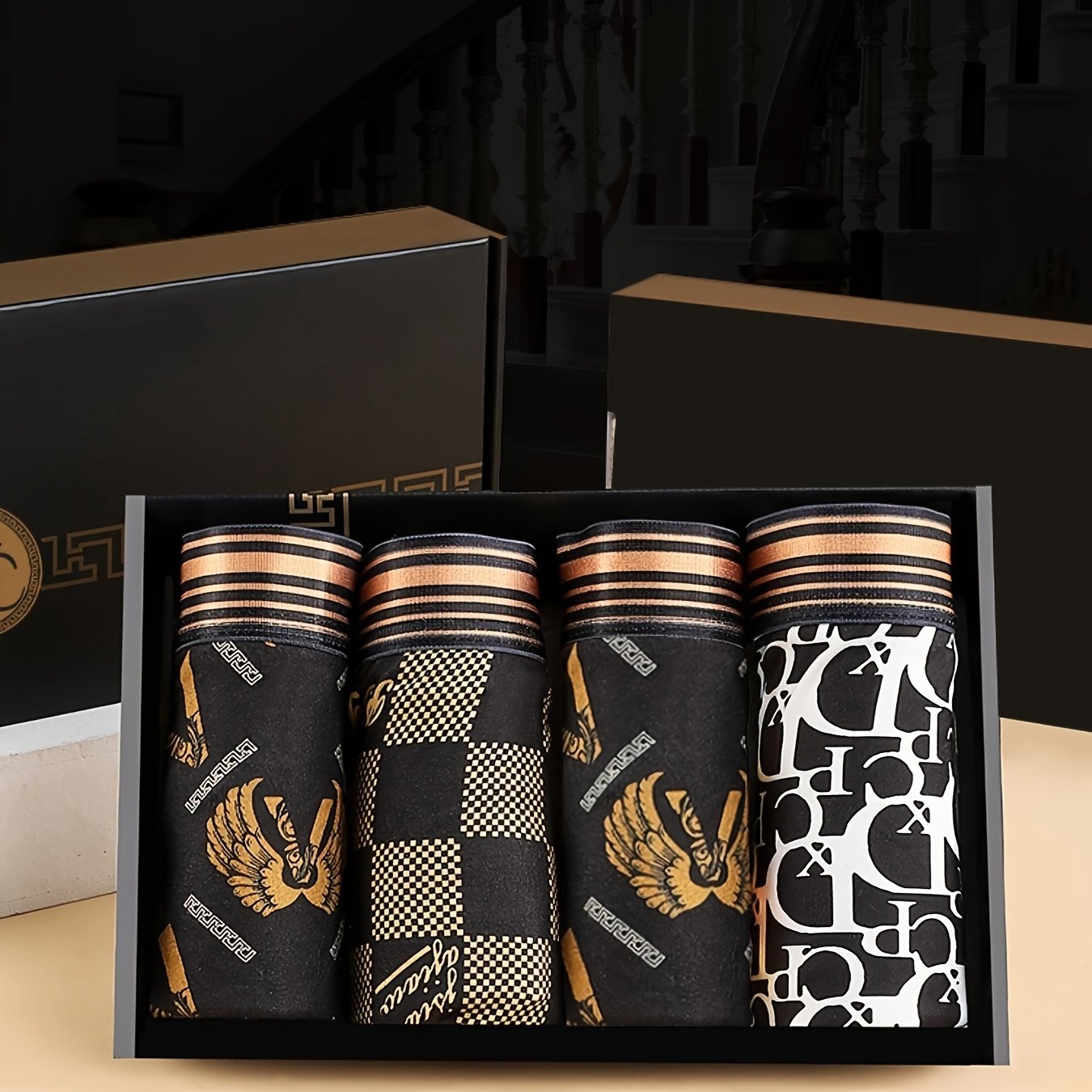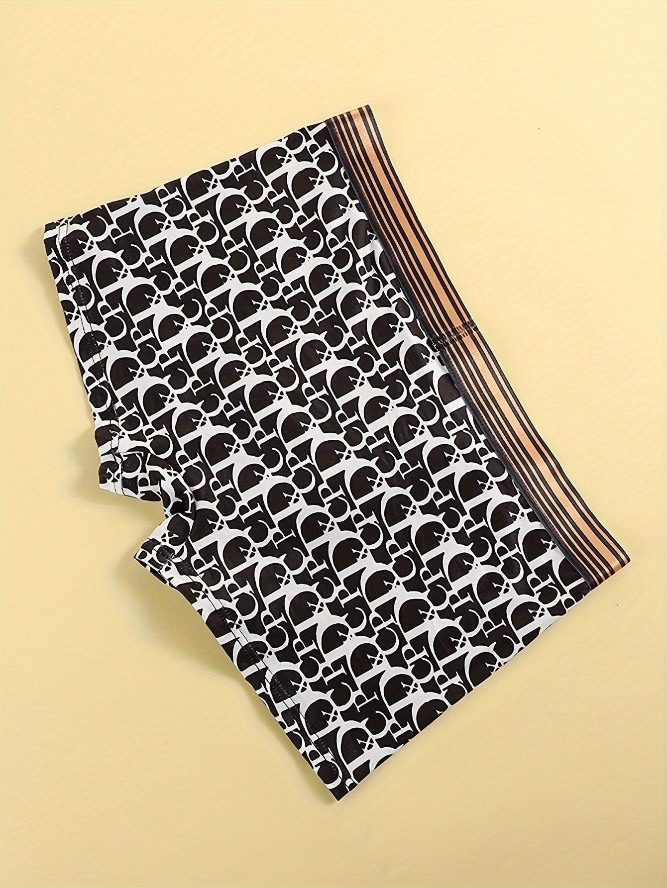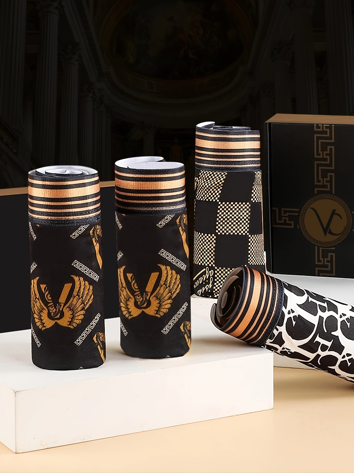 Erkaklar uchun qora va oltin naqshli bosma ichki kiyim to'plami, sport mashg'ulotlari va kundalik fitnes uchun ideal elastik sport shimlari bilan.