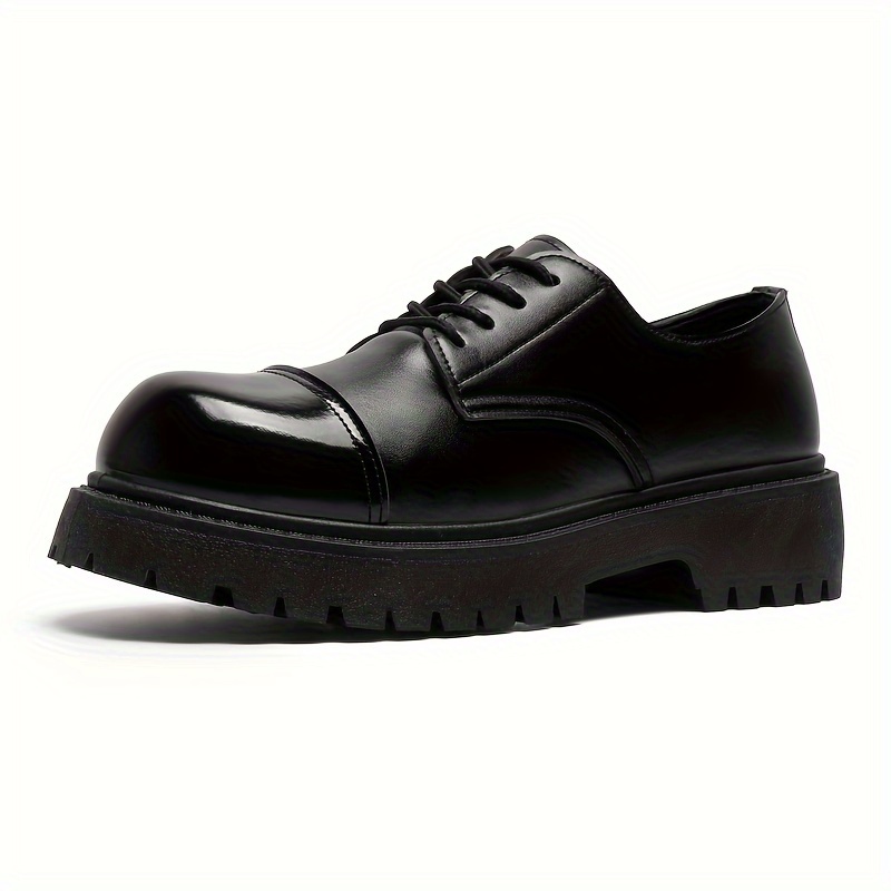 Erkaklar uchun qora oxfords, tasodifiy ko'cha uslubida, pastki qismida bog'ichli dizayn. Mustahkam rangli sun'iy yuqori va ichki qismi, PVC taglik, dumaloq barmoq, qalin taglik ish va dam olish kiyimlari uchun mos.