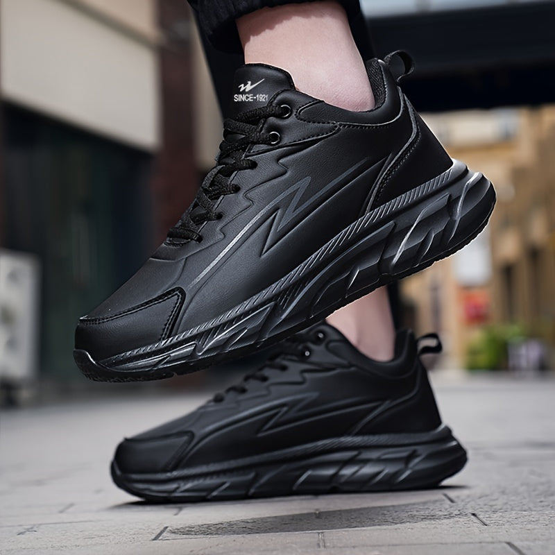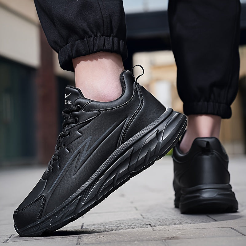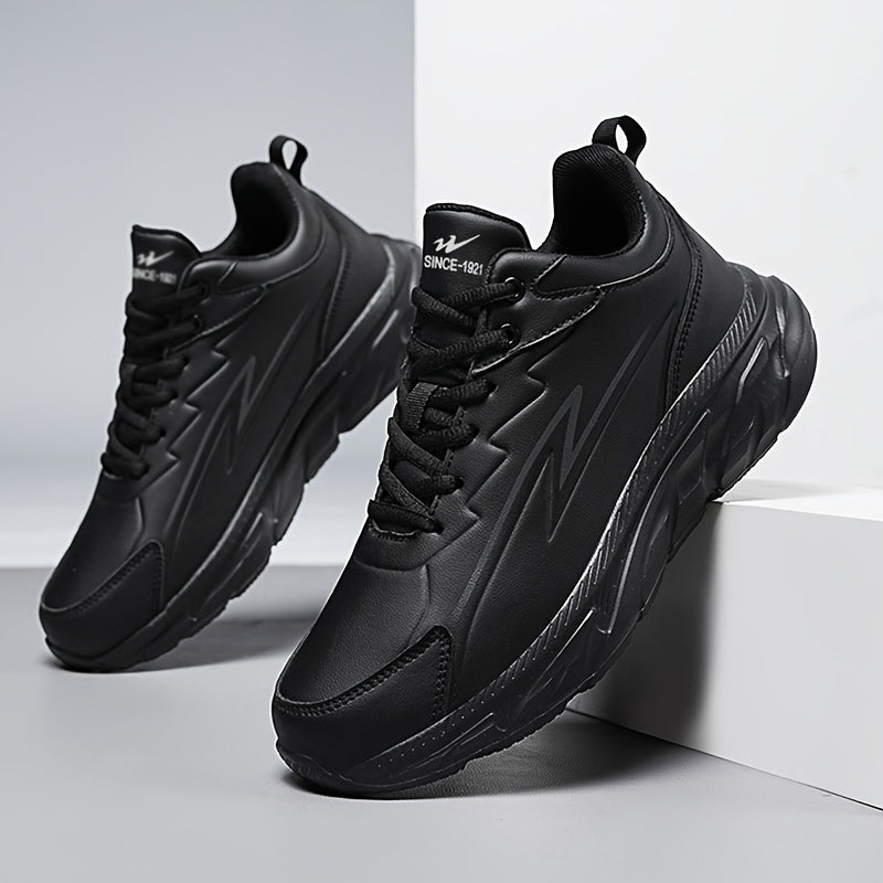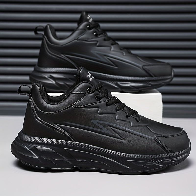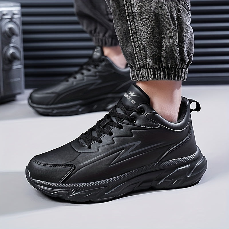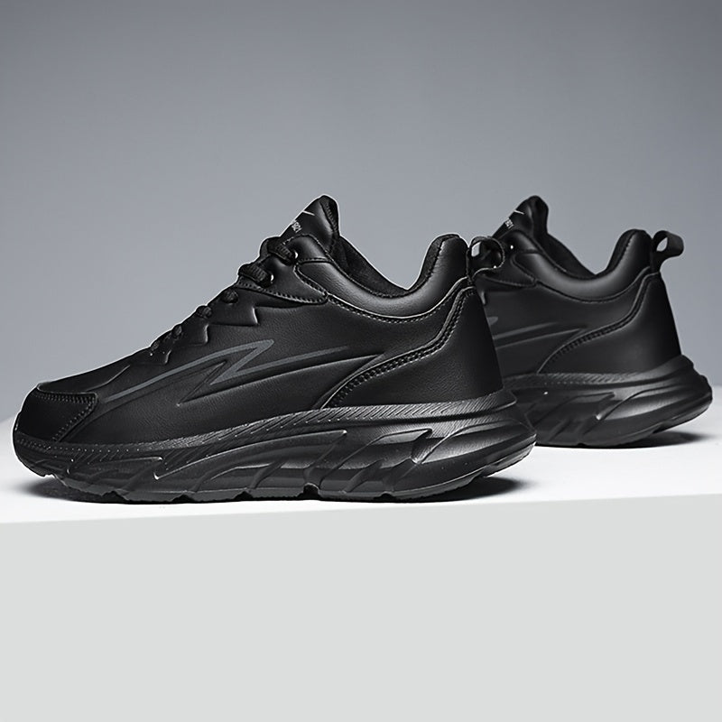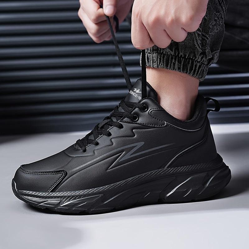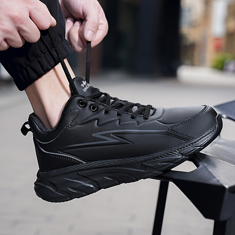 Erkaklar uchun qora yo'l yugurish poyabzallari, tasodifiy sport uslubida, mustahkam kauchuk taglik, qulay mato astar va pastki bog'ichli dizayn bilan. Har mavsum uchun mos, bu sport krossovkalari
