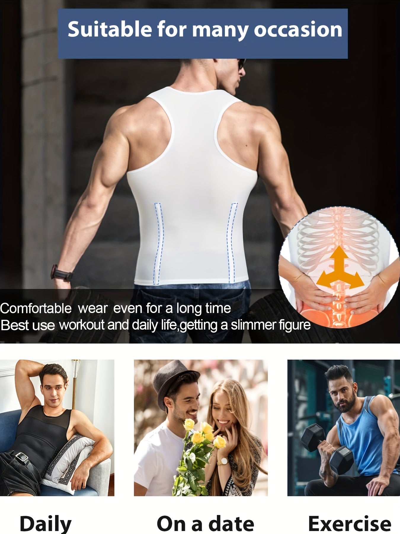 Erkaklar uchun orqa qo'llab-quvvatlash bilan tanani shakllantiruvchi tank.