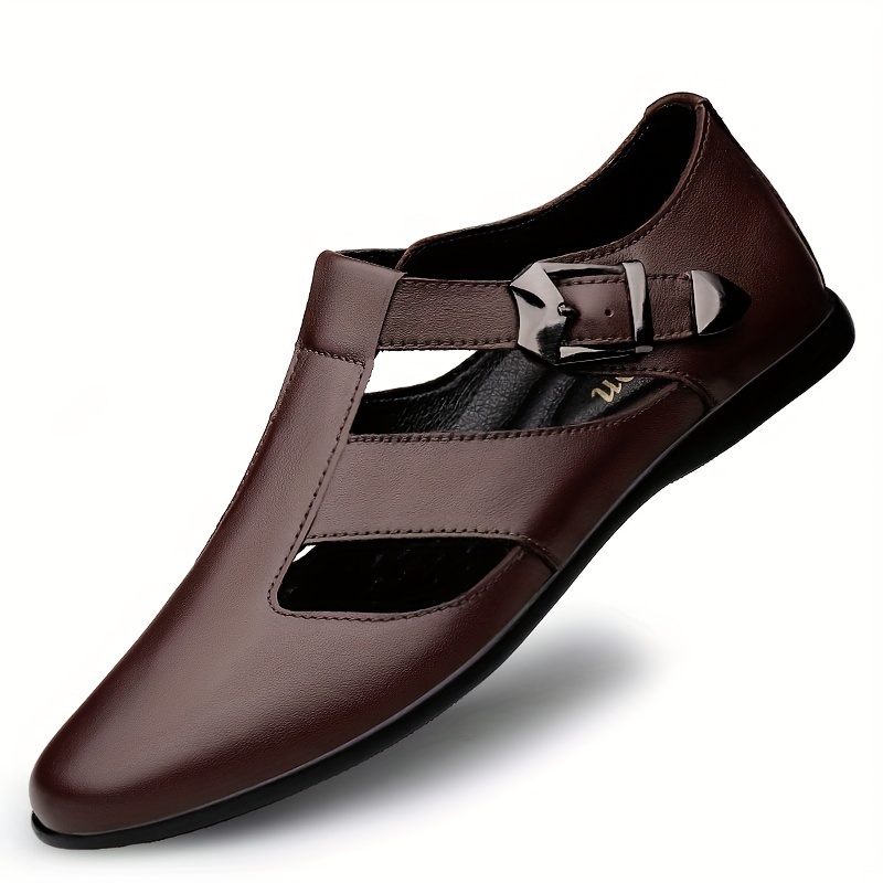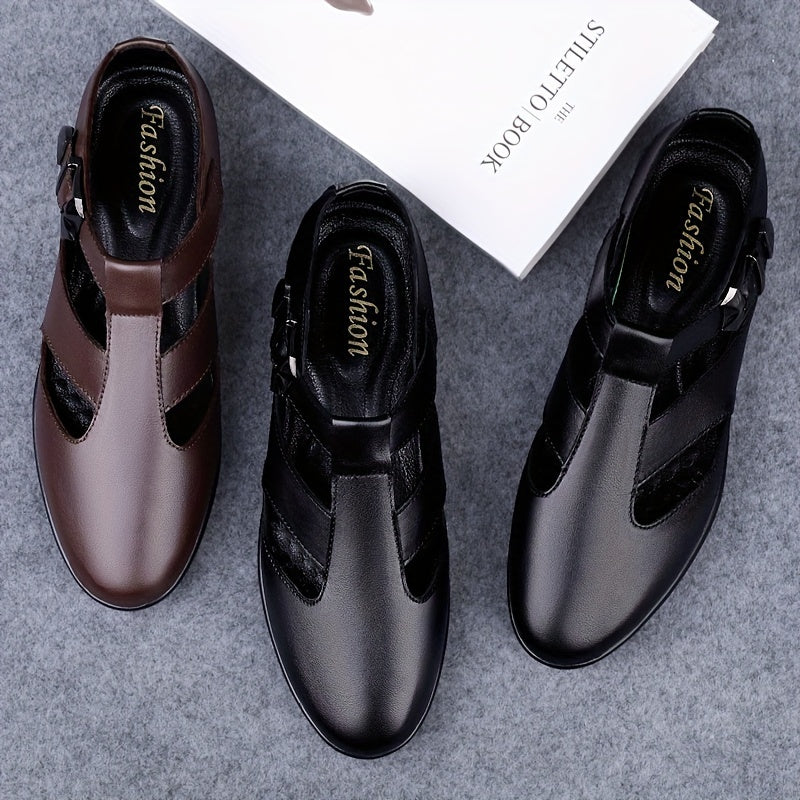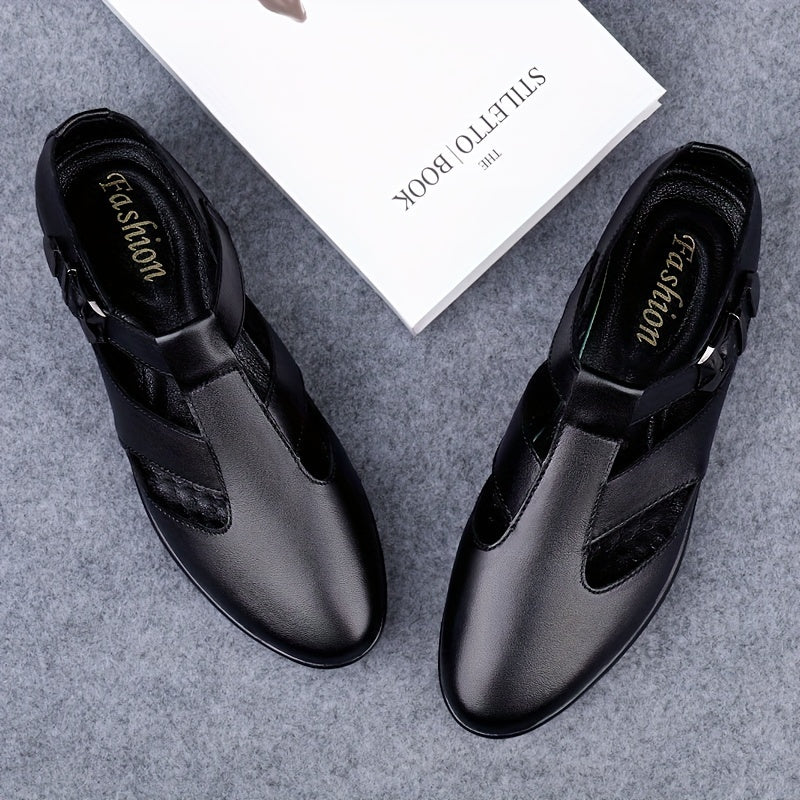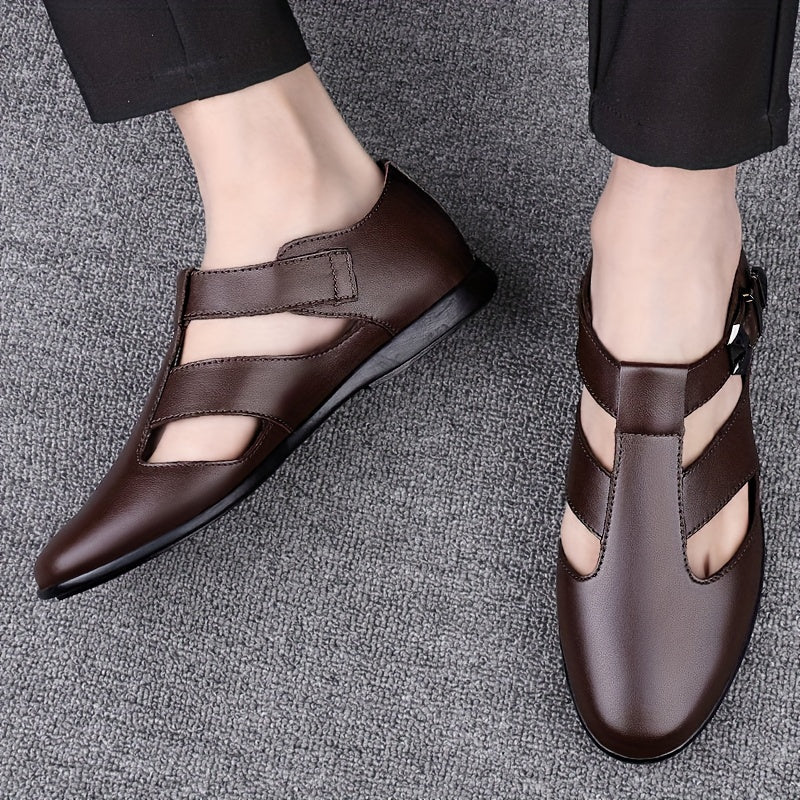 Erkaklar uchun nafas oladigan kesilgan sandallar, moslashtiriladigan tasmali qopqoq va yumshoq taglik bilan qulaylik uchun, qora rangda tasodifiy yozgi/kuzgi kiyimlar uchun mukammal.