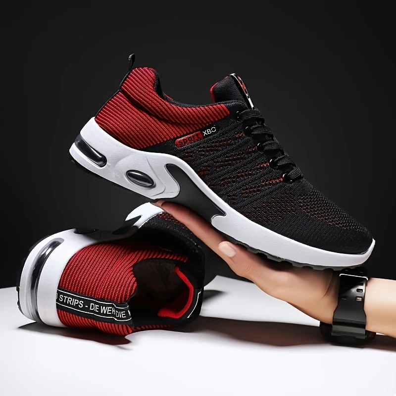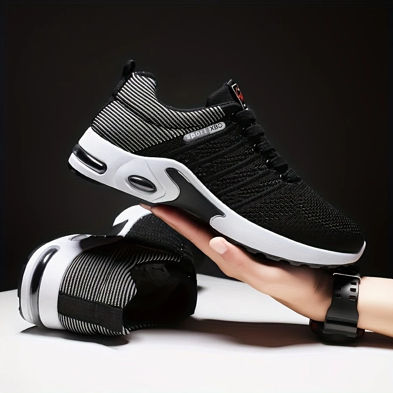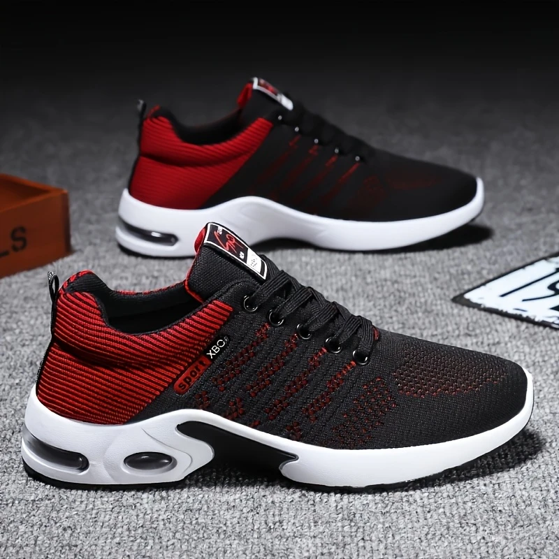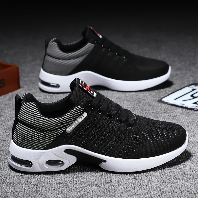 Erkaklar uchun nafas oladigan to'qilgan sport poyabzallari, bog'ichli yopiq, mato yuqori va ichki qismi, sun'iy taglik va qulay o'rta balandlik dizayni. Har mavsumda yugurish uchun mos.