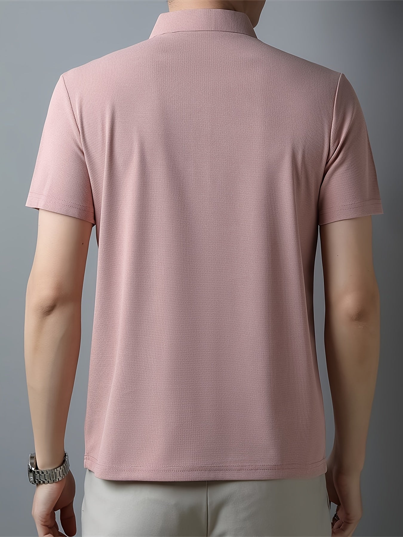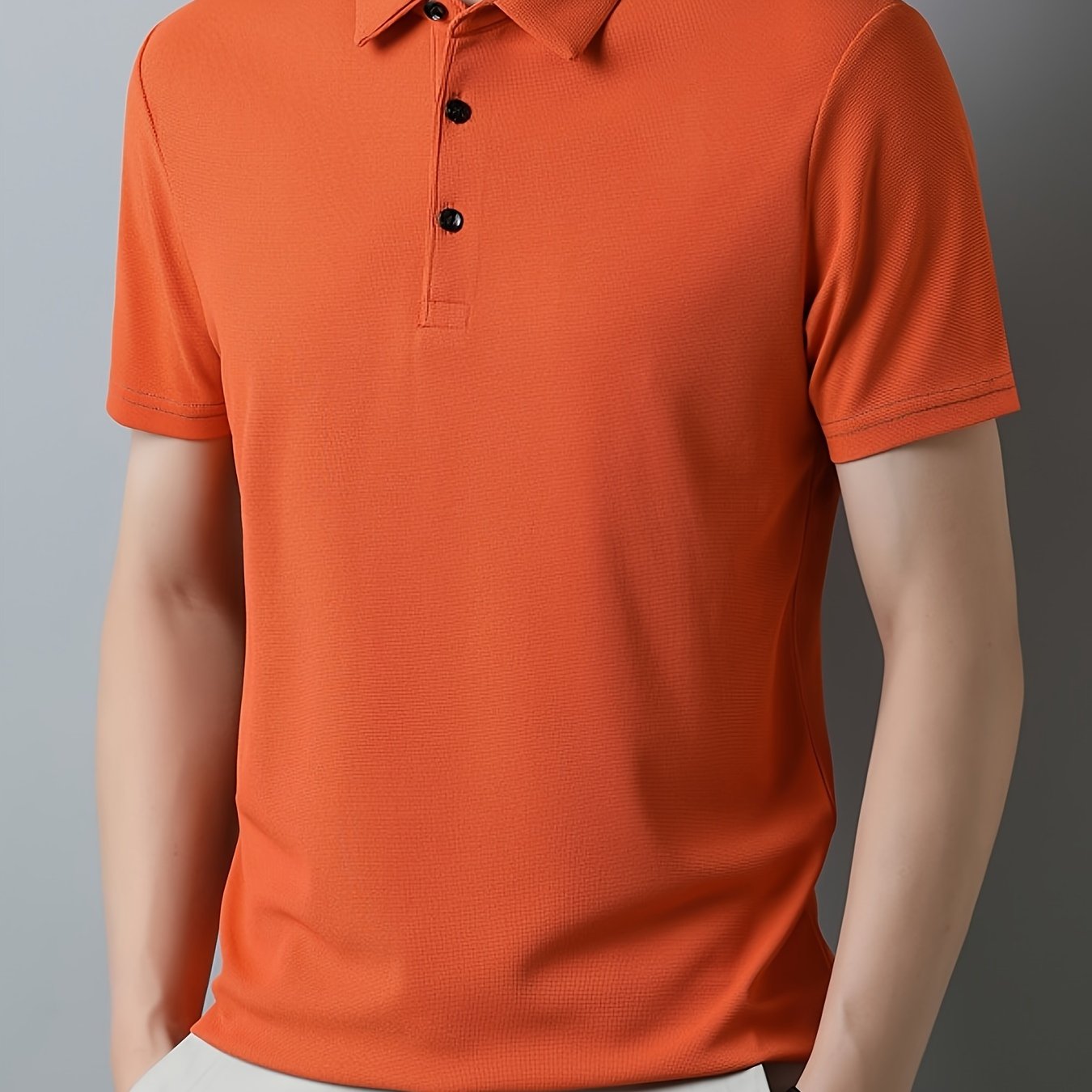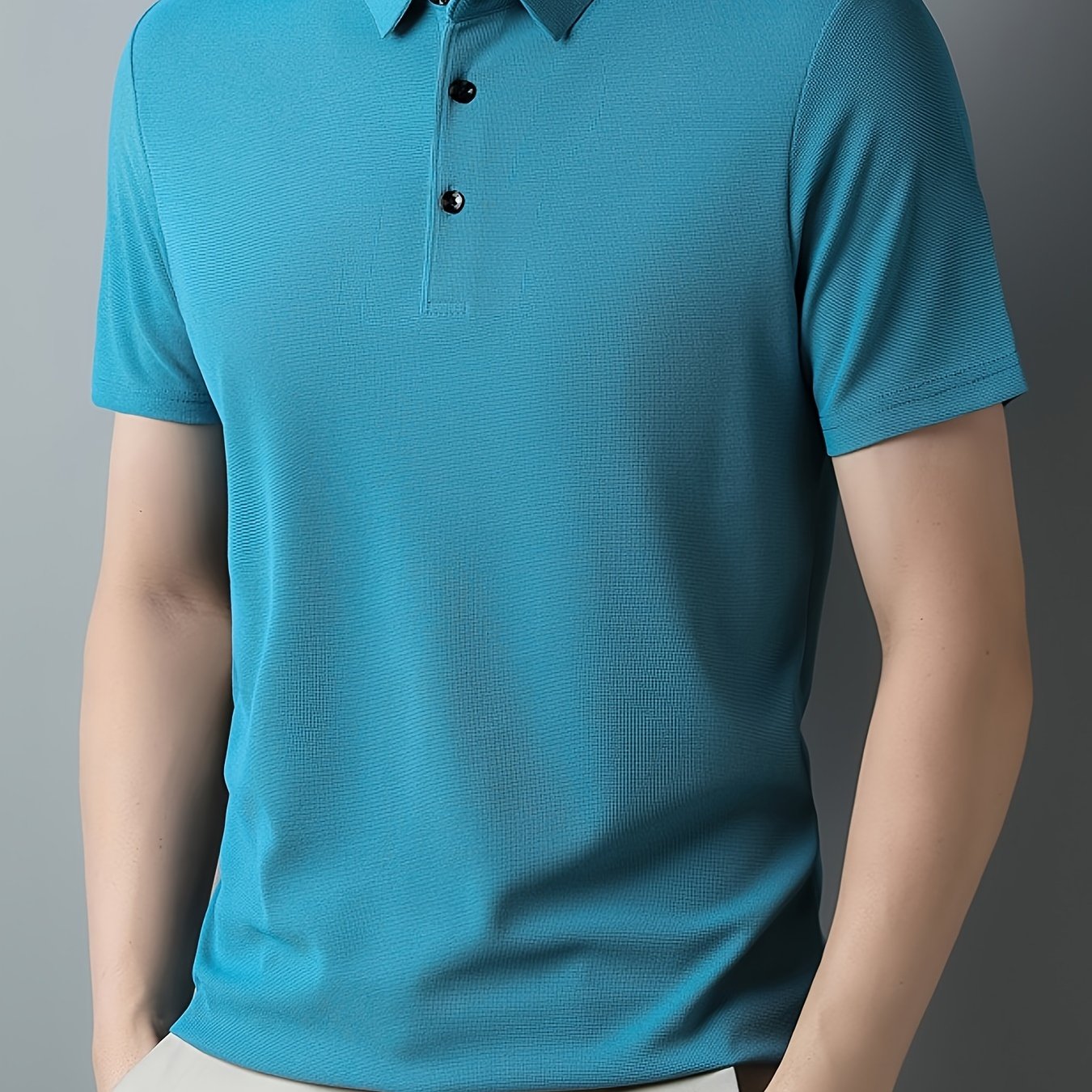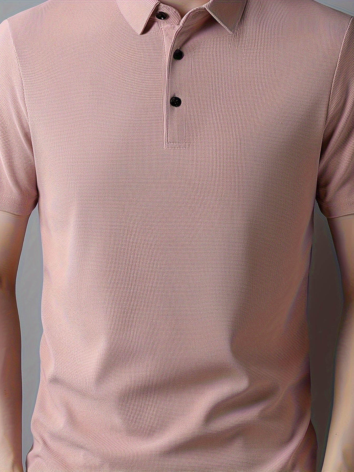 Erkaklar uchun nafas oladigan polyester ko'ylak - Tasodifiy bir rang, qisqa yengli va yoqa bilan