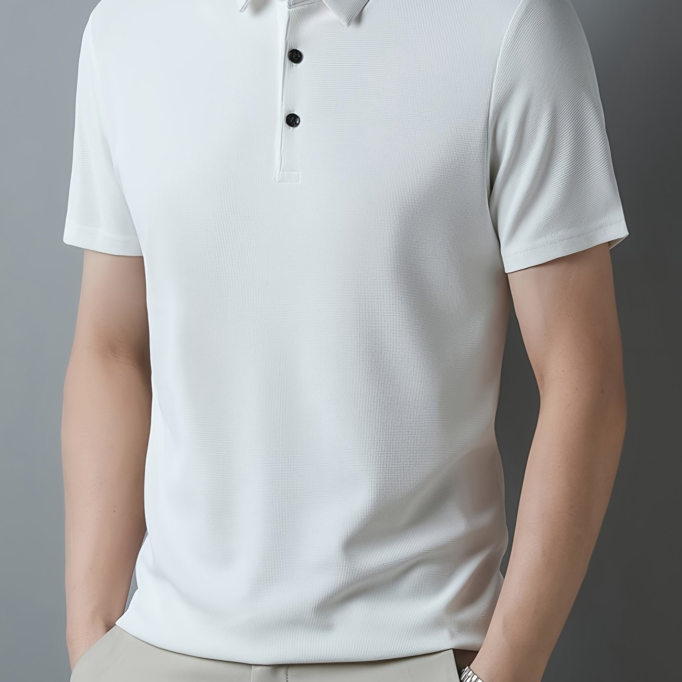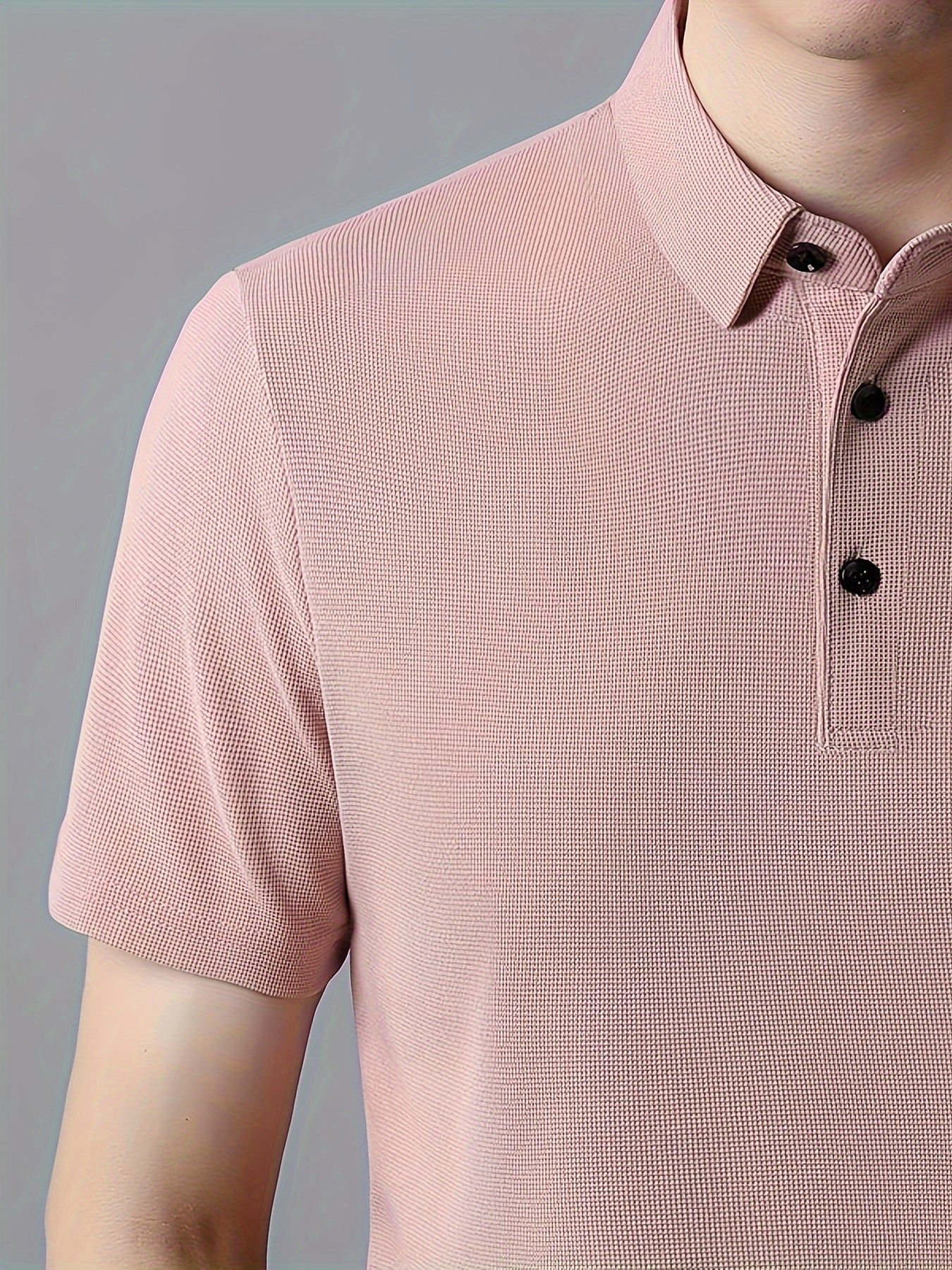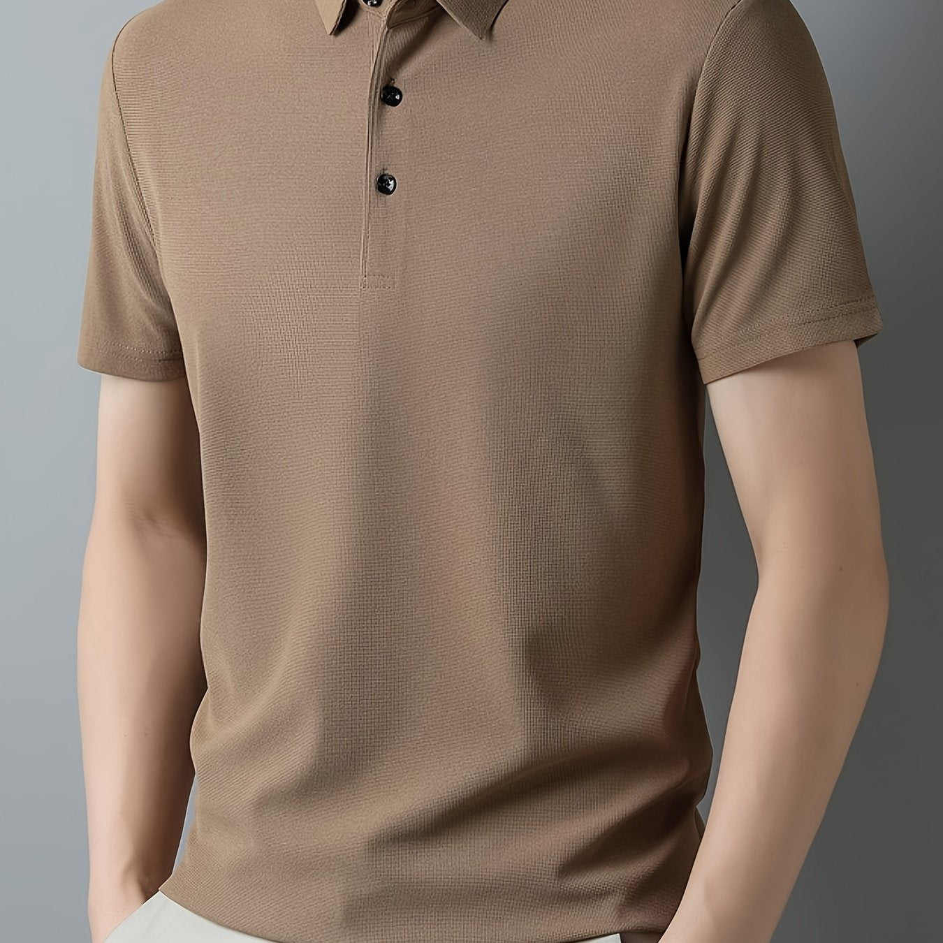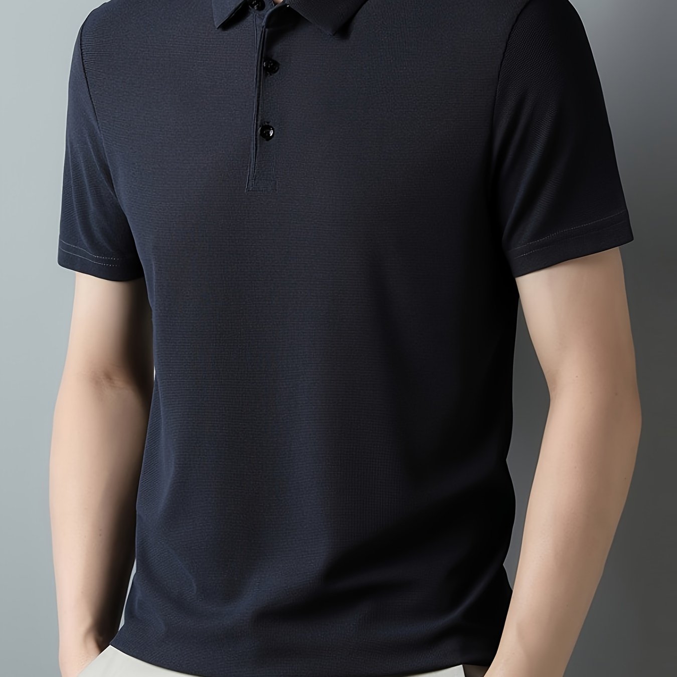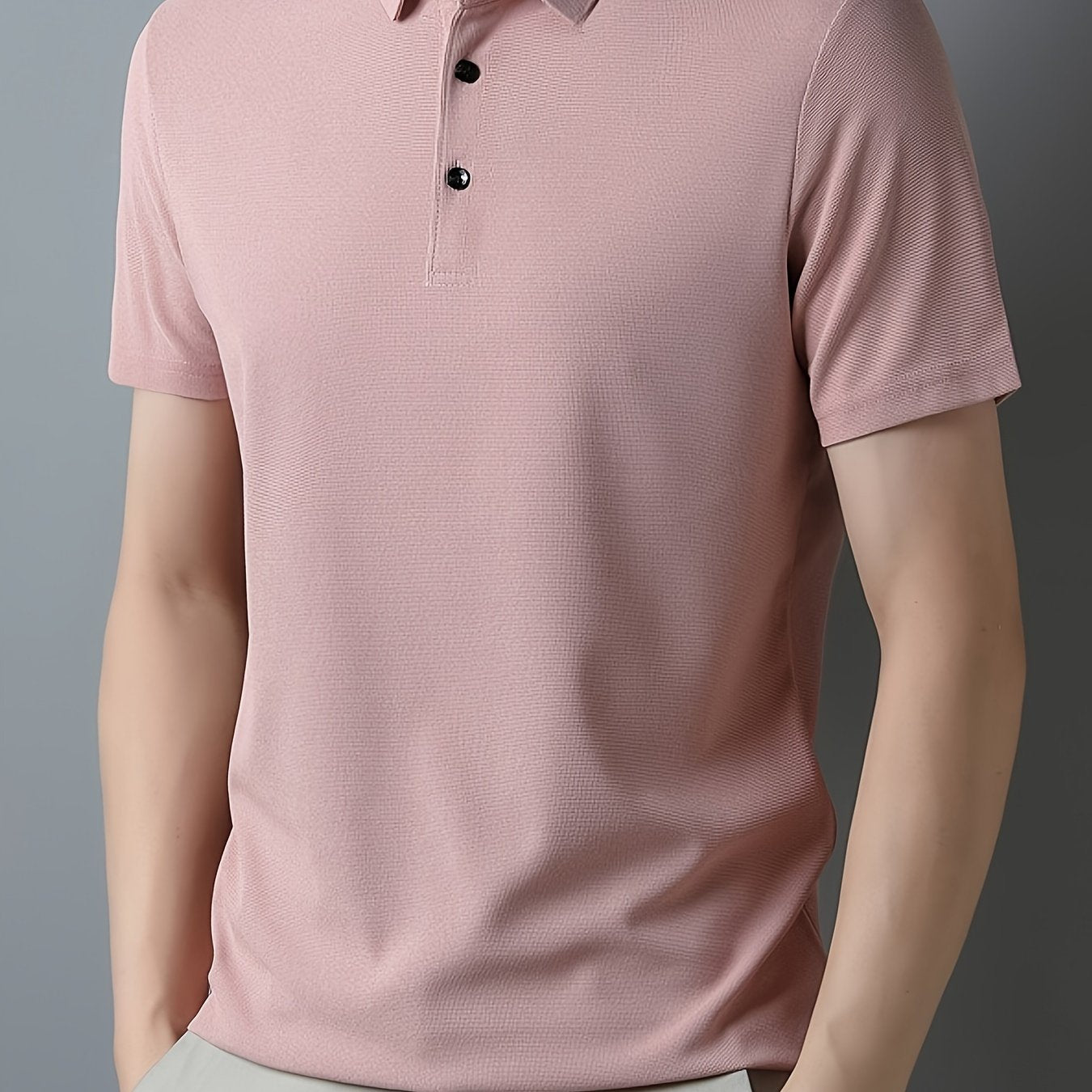 Erkaklar uchun nafas oladigan polyester ko'ylak - Tasodifiy bir rang, qisqa yengli va yoqa bilan