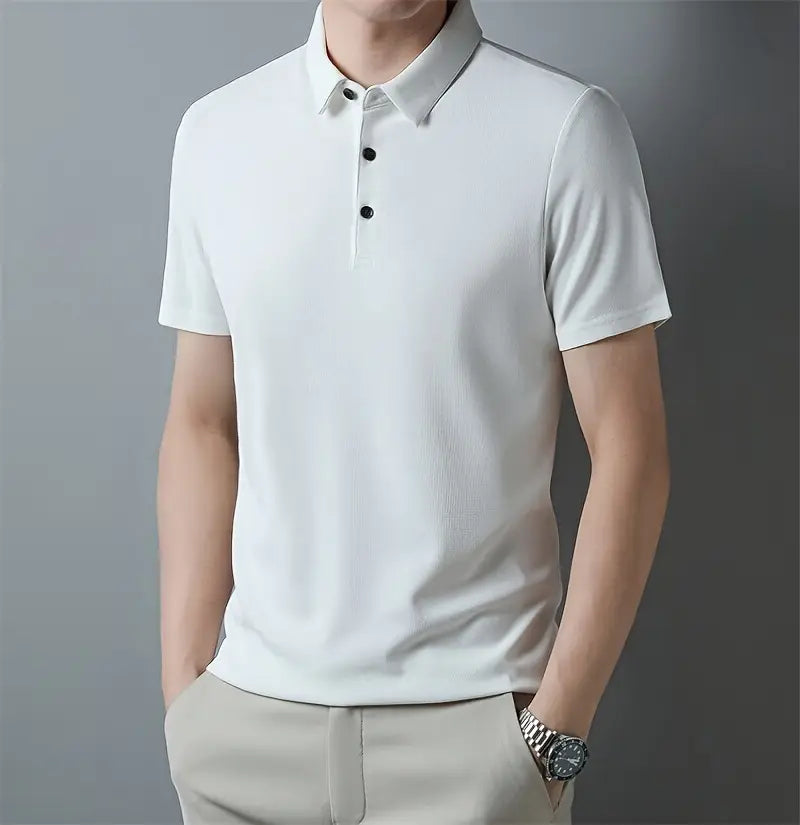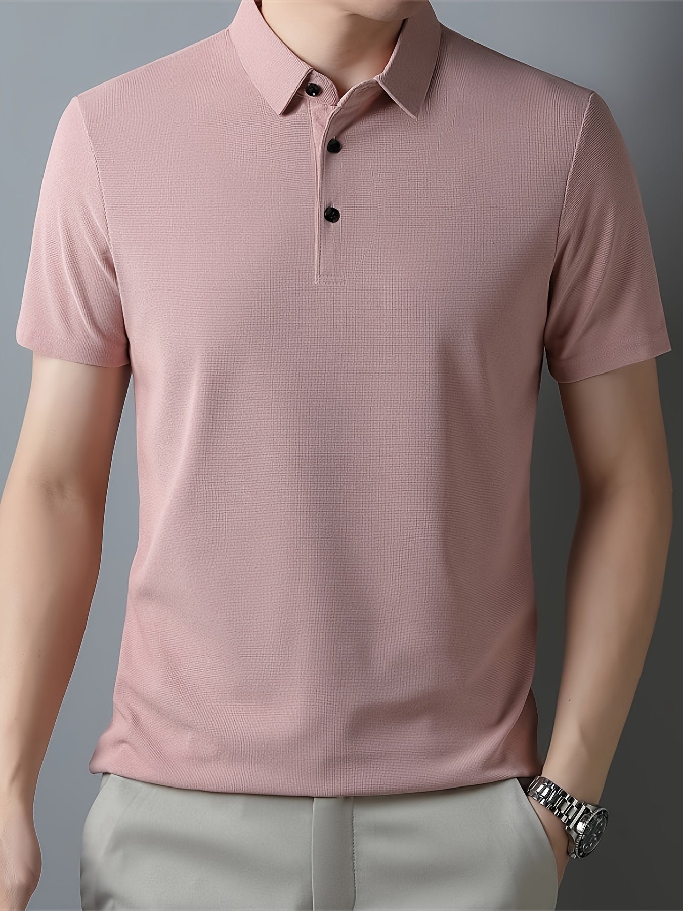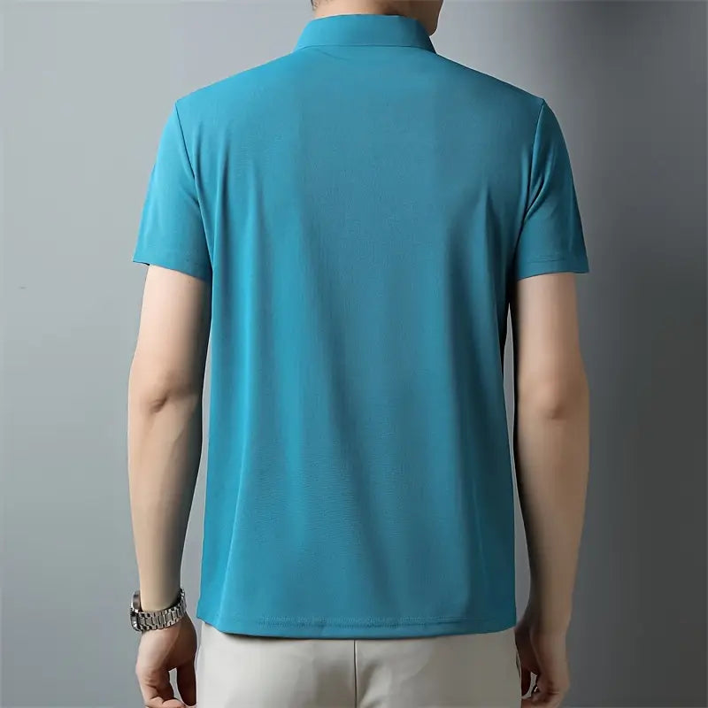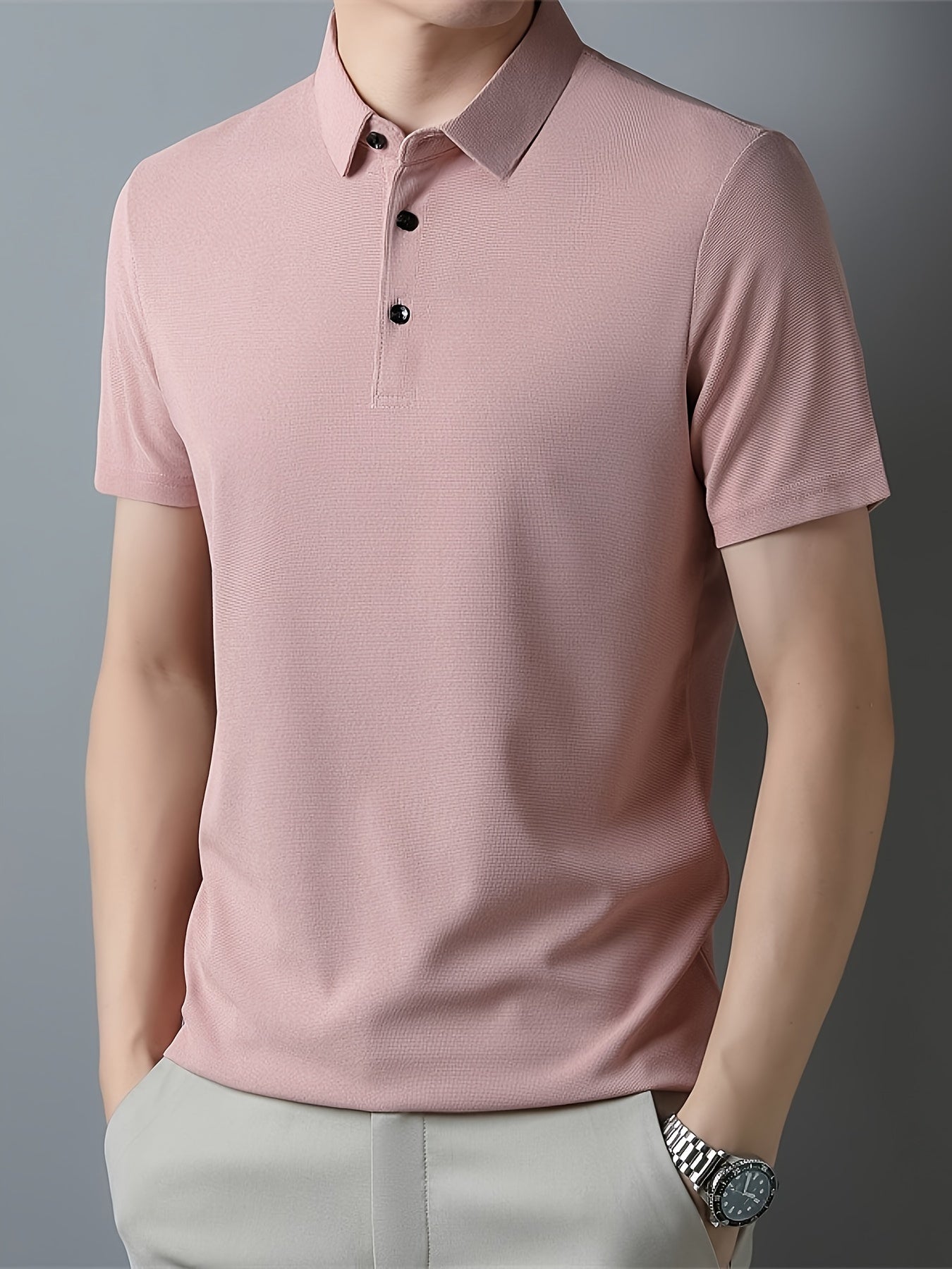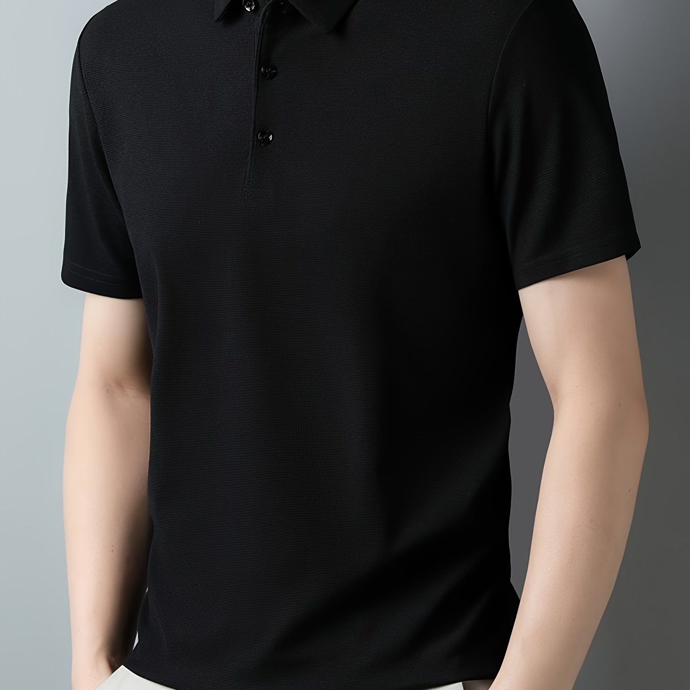 Erkaklar uchun nafas oladigan polyester ko'ylak - Tasodifiy bir rang, qisqa yengli va yoqa bilan
