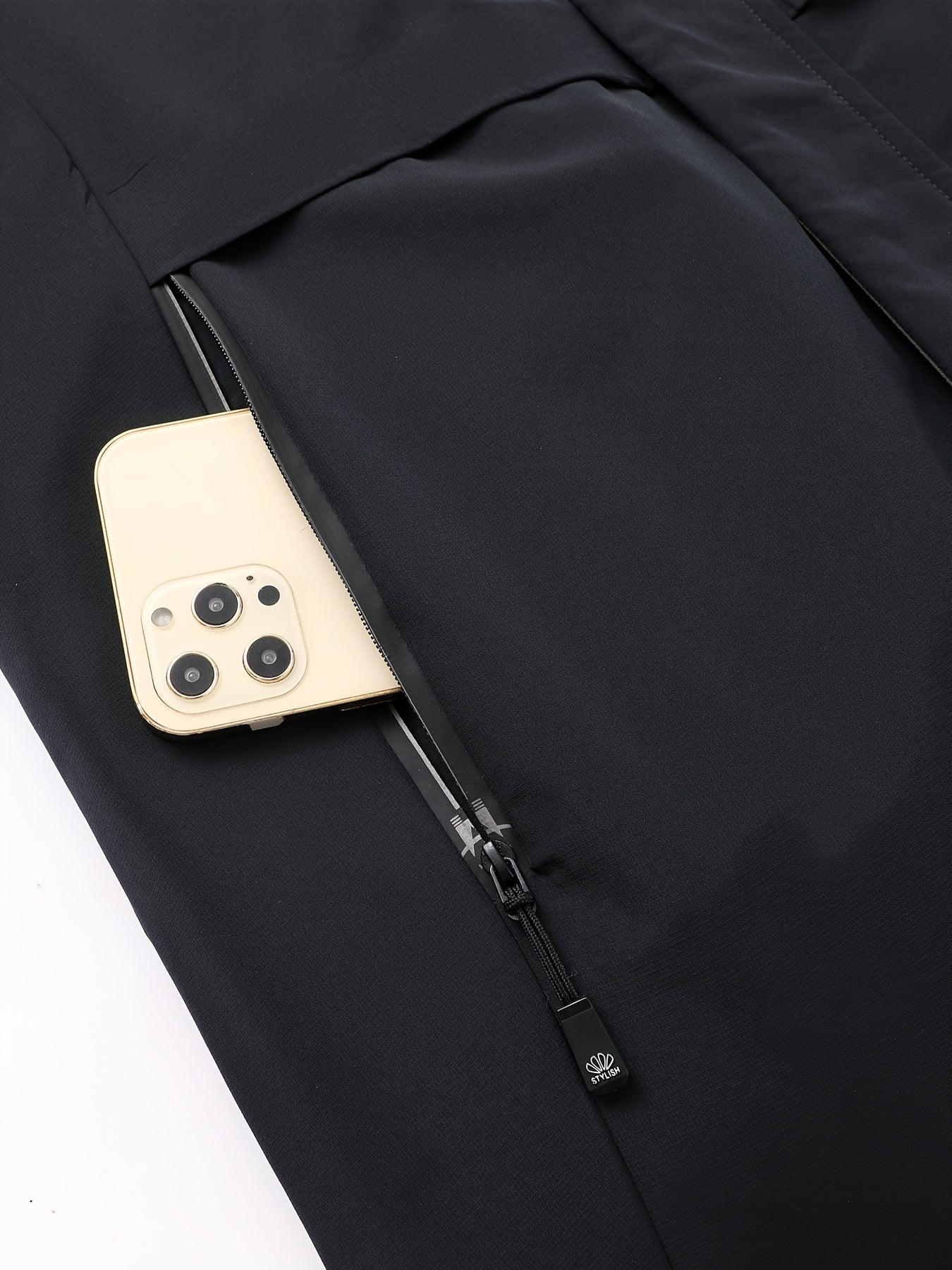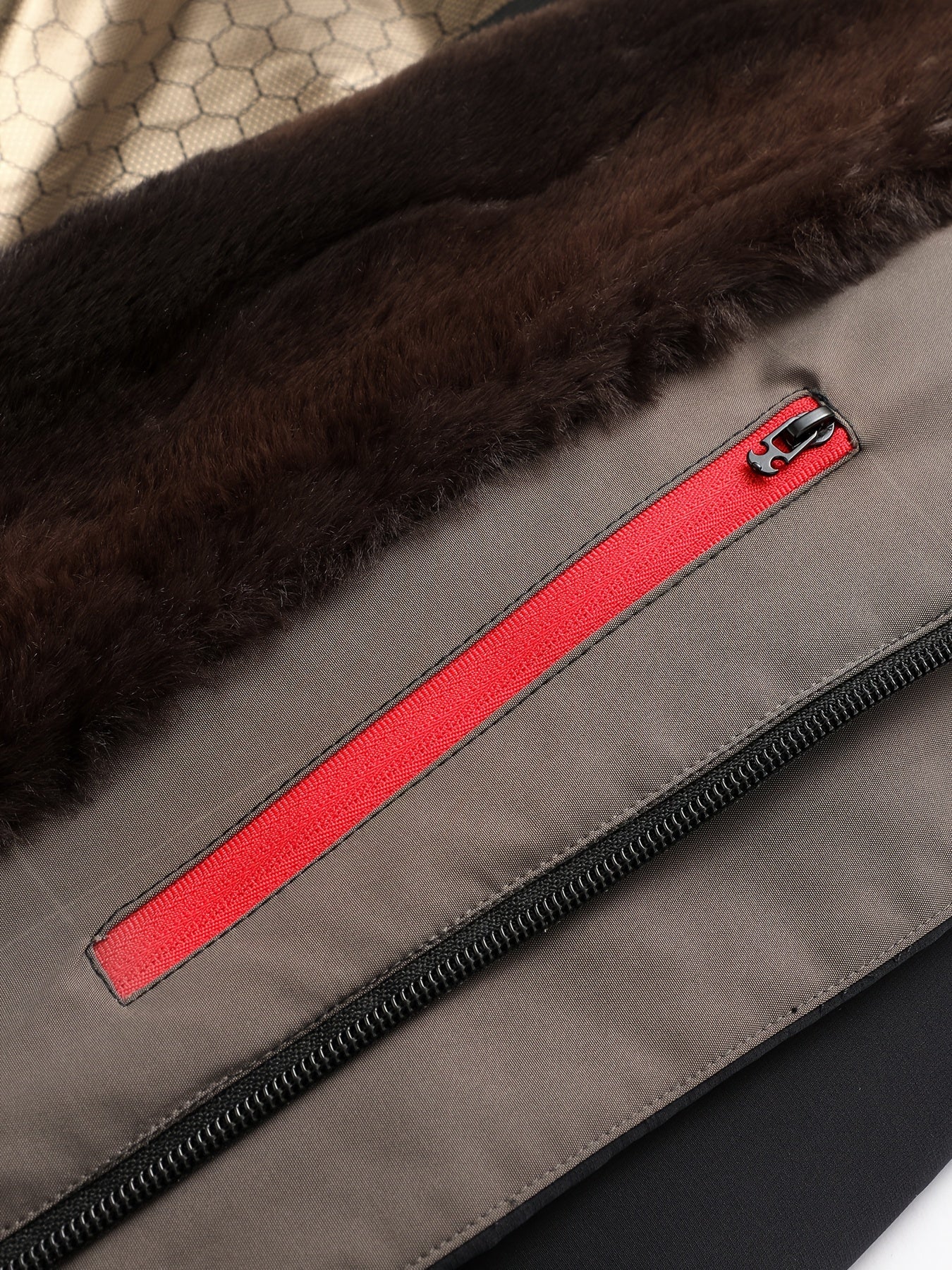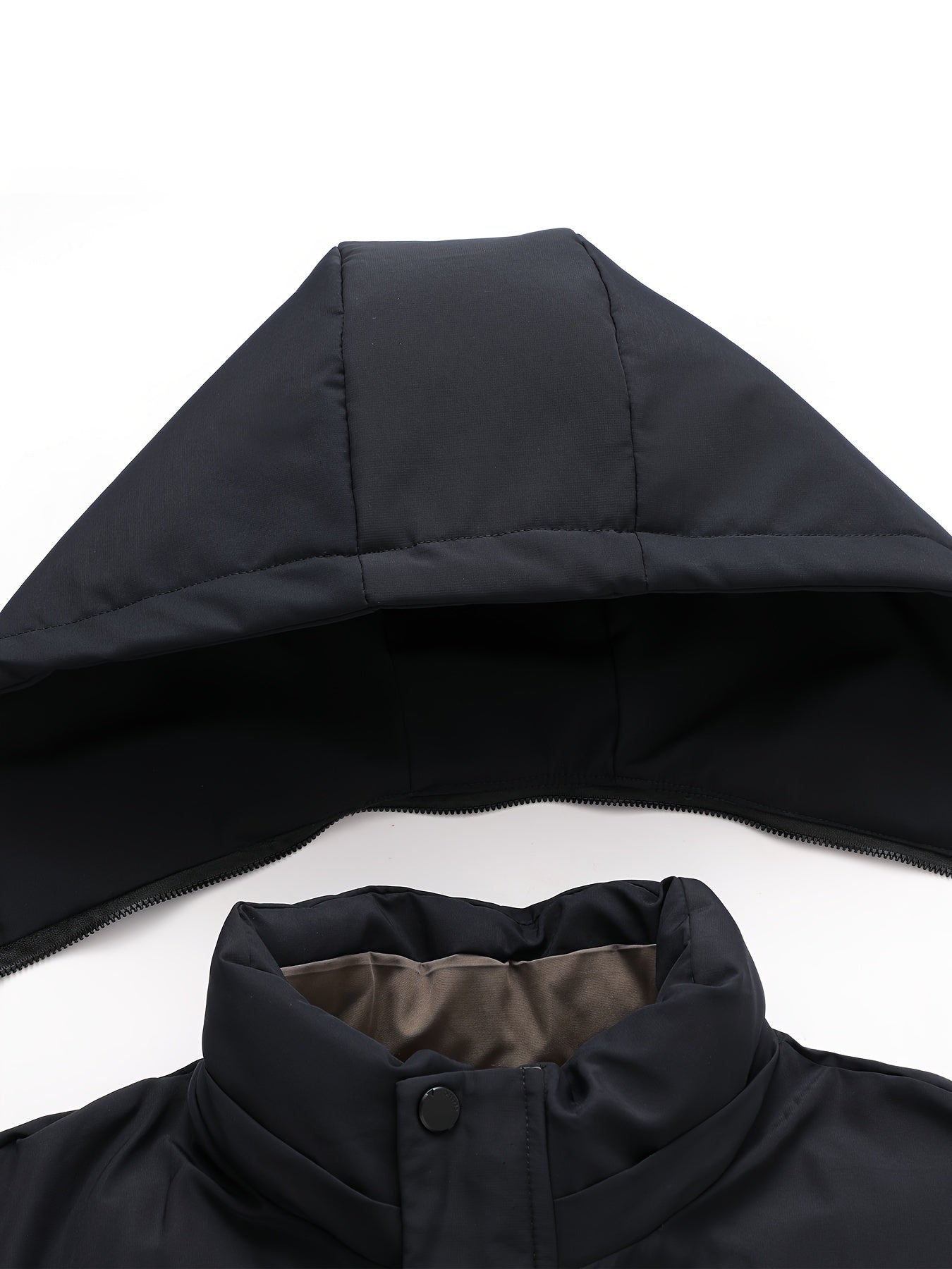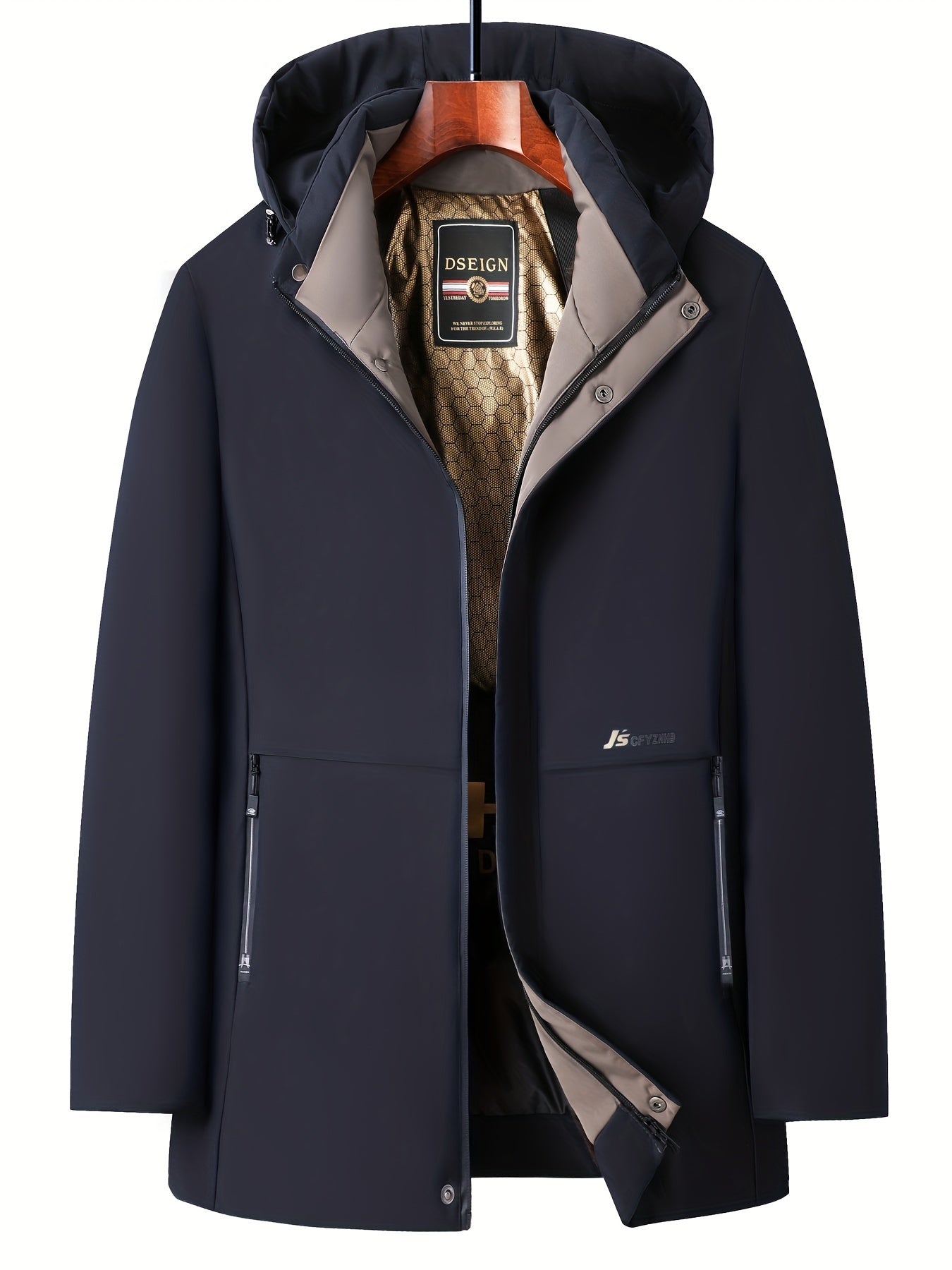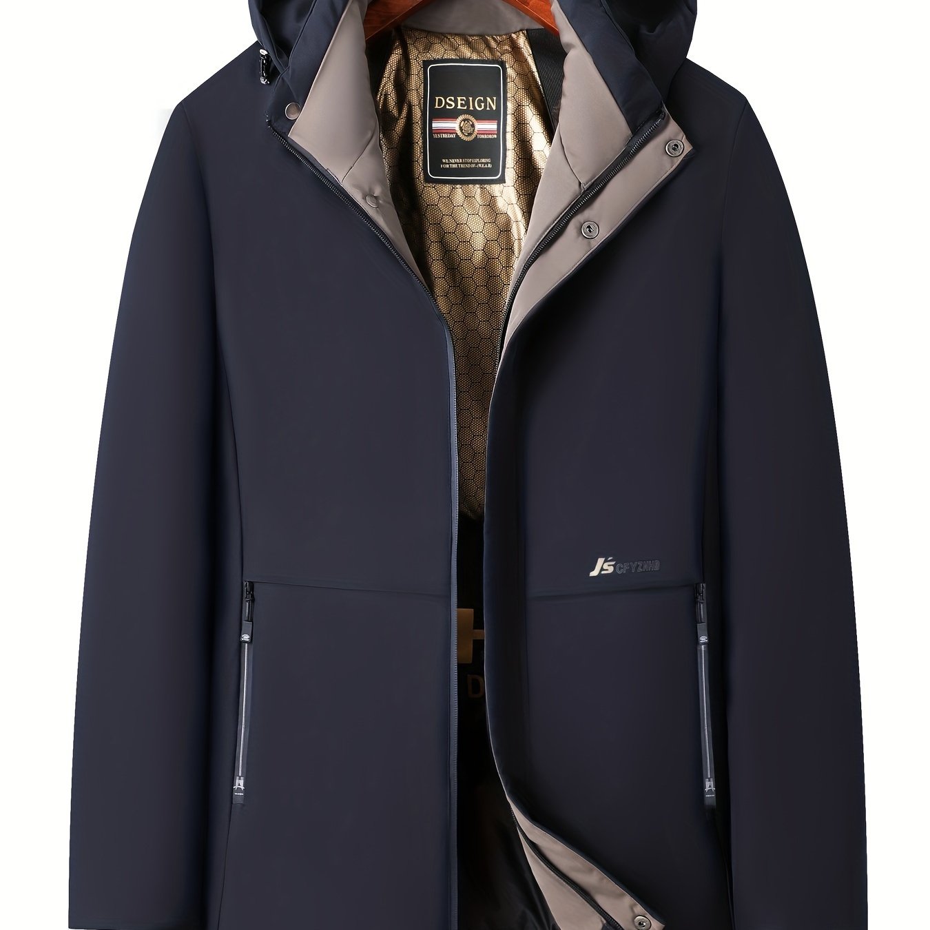 Erkaklar uchun tasodifiy kapüşonli poliester to'ldirilgan kurtka, alfavit naqshi, zip plakat va qishki issiqlik uchun poliester tolasi bilan.
