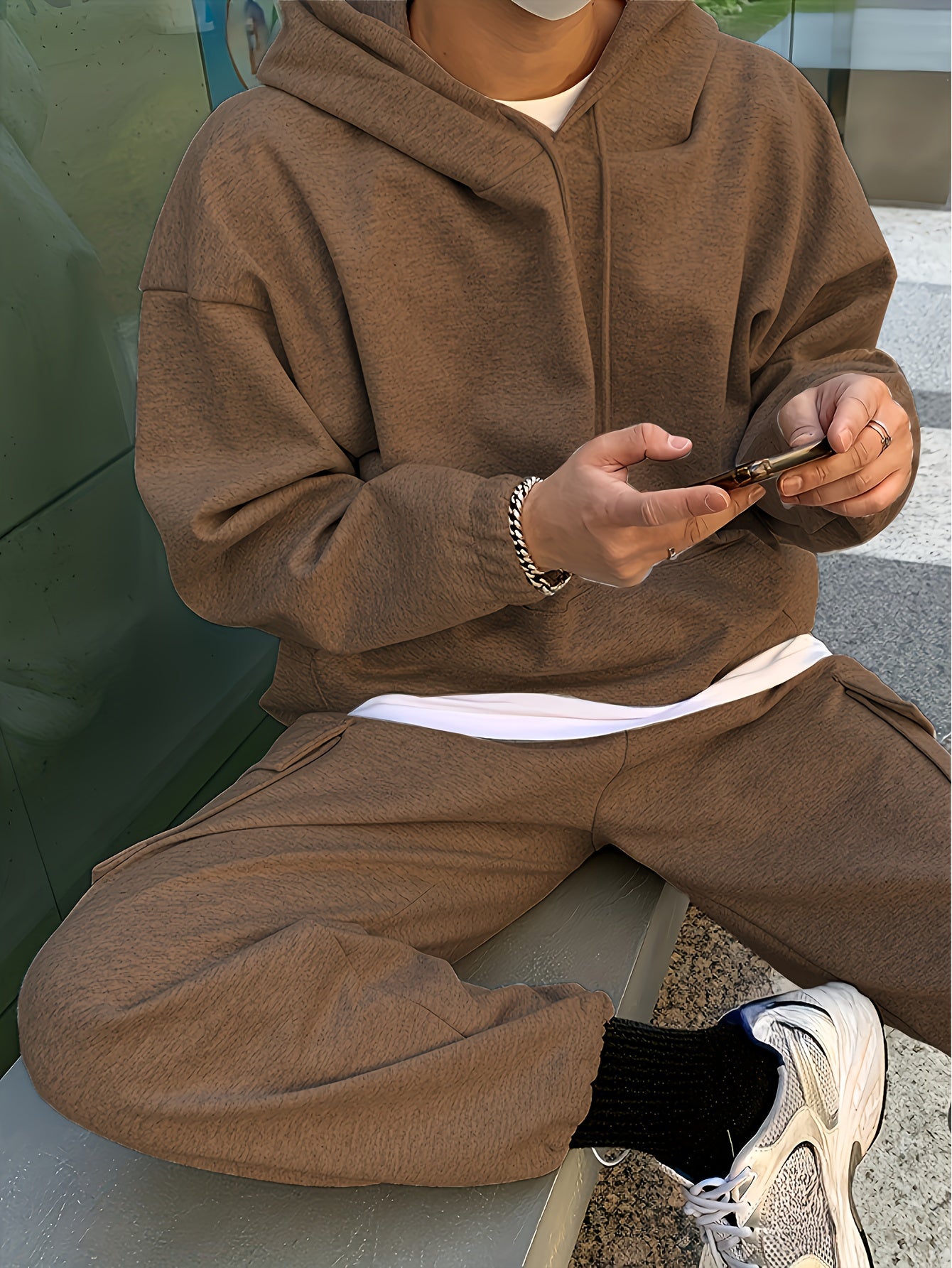 Erkaklar uchun tasodifiy kapüşonli sviter va shimlar to'plami 100% polyesterdan tayyorlangan, biroz cho'ziladigan to'qima. Tashqi sport va kundalik kiyim uchun mukammal oddiy rangda muntazam moslik. Qismidir