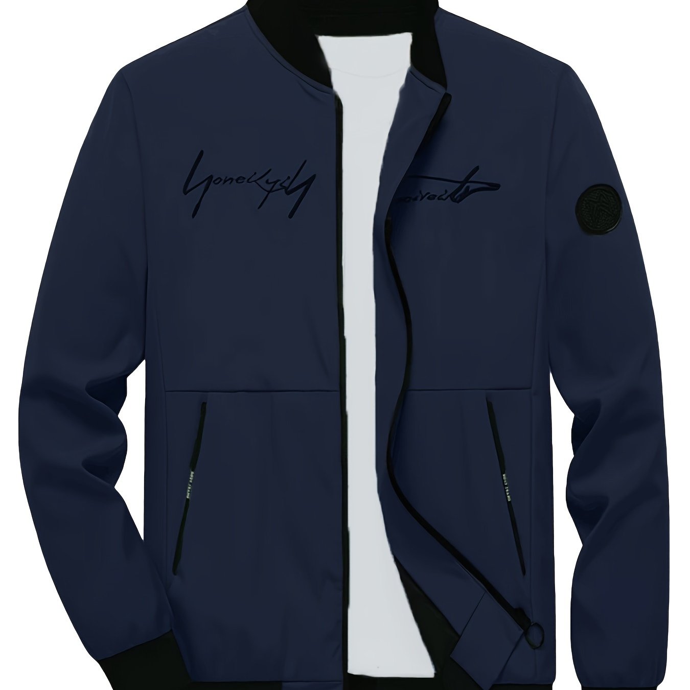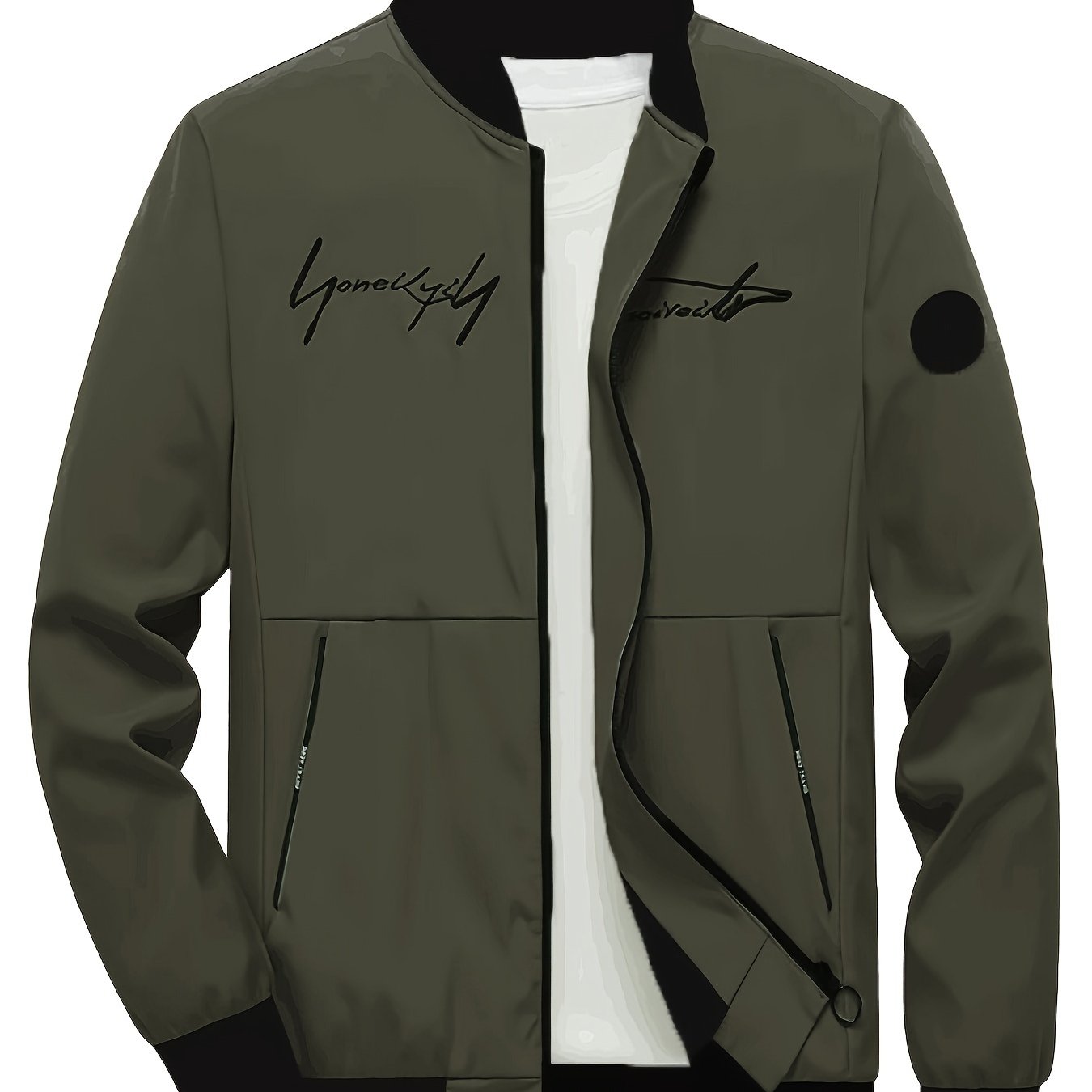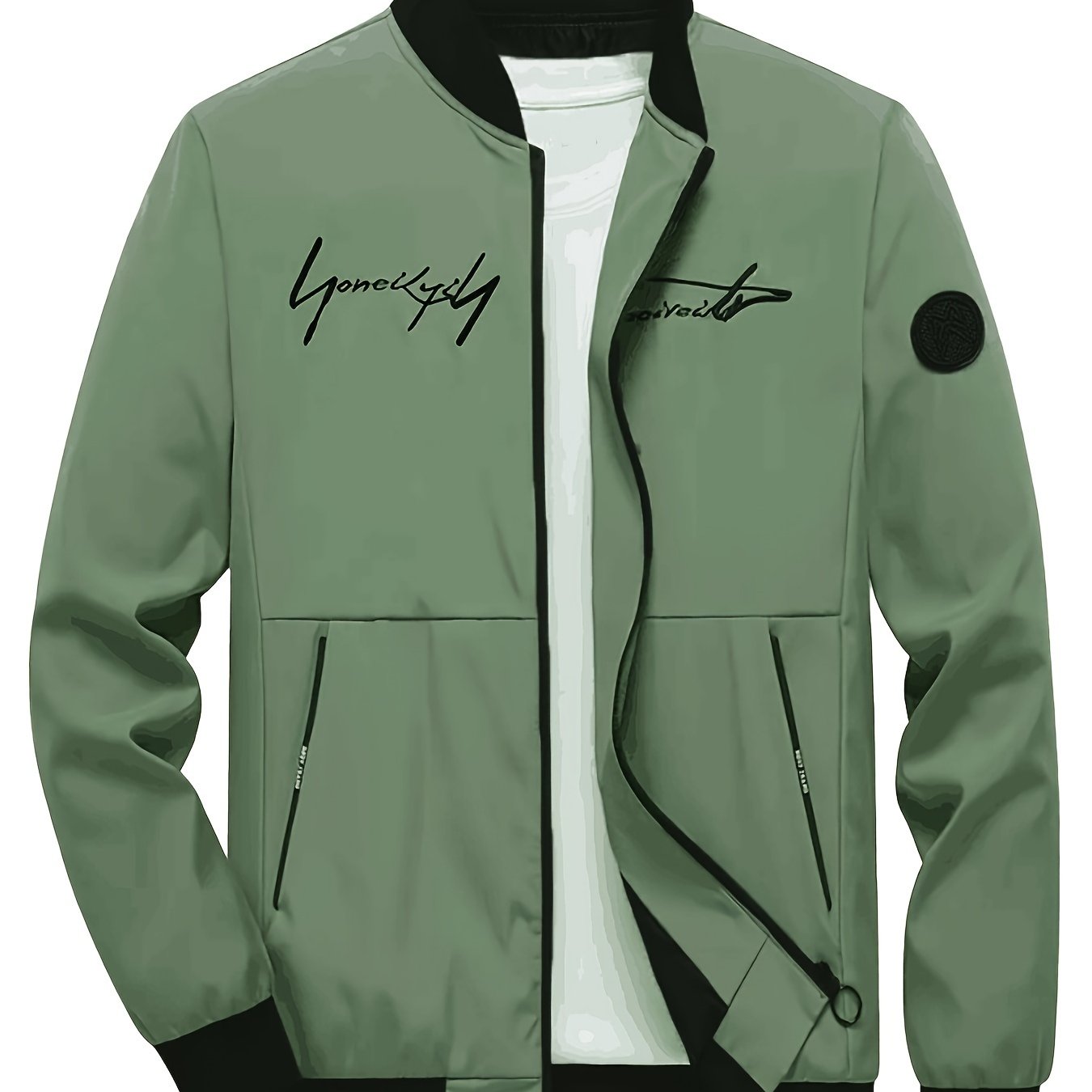 Erkaklar uchun tasodifiy harf bosma bomber kurtkasi, bahor/kovak faoliyatlari uchun zip cho'ntaklar bilan