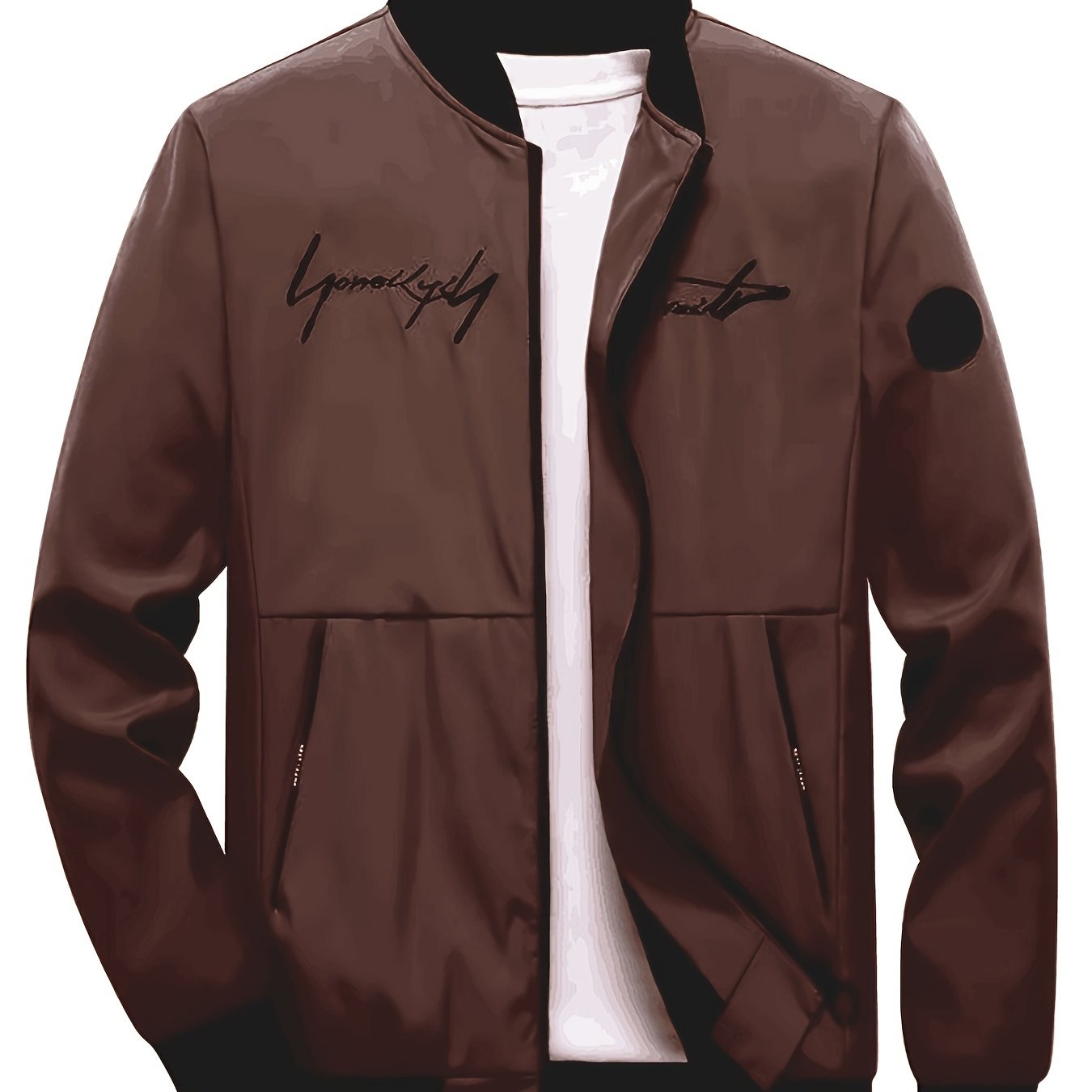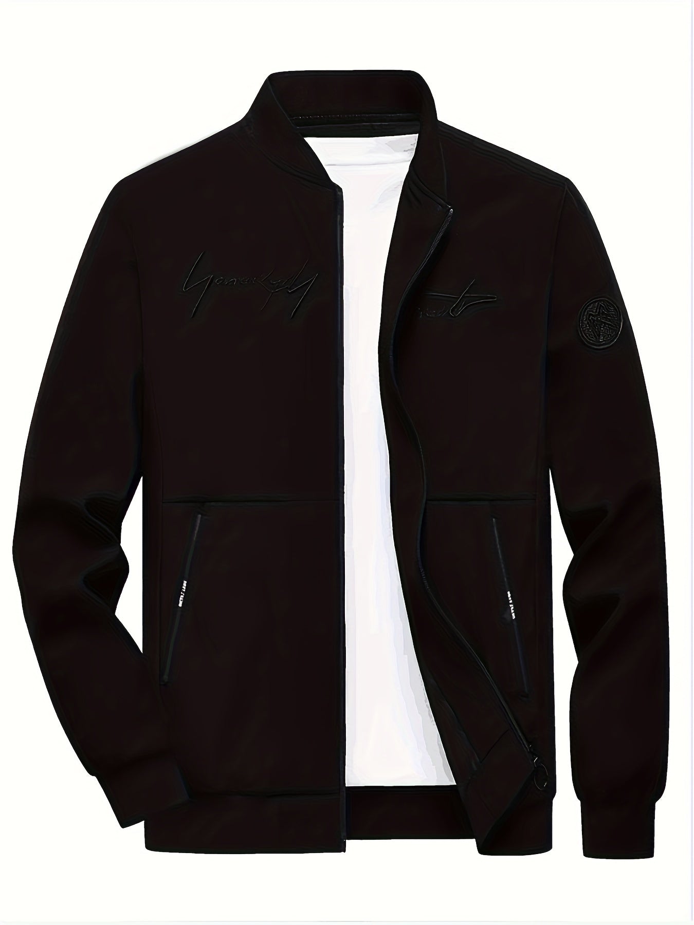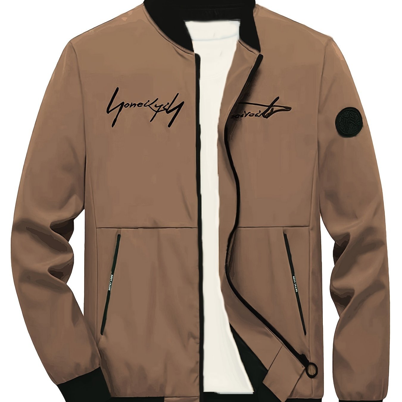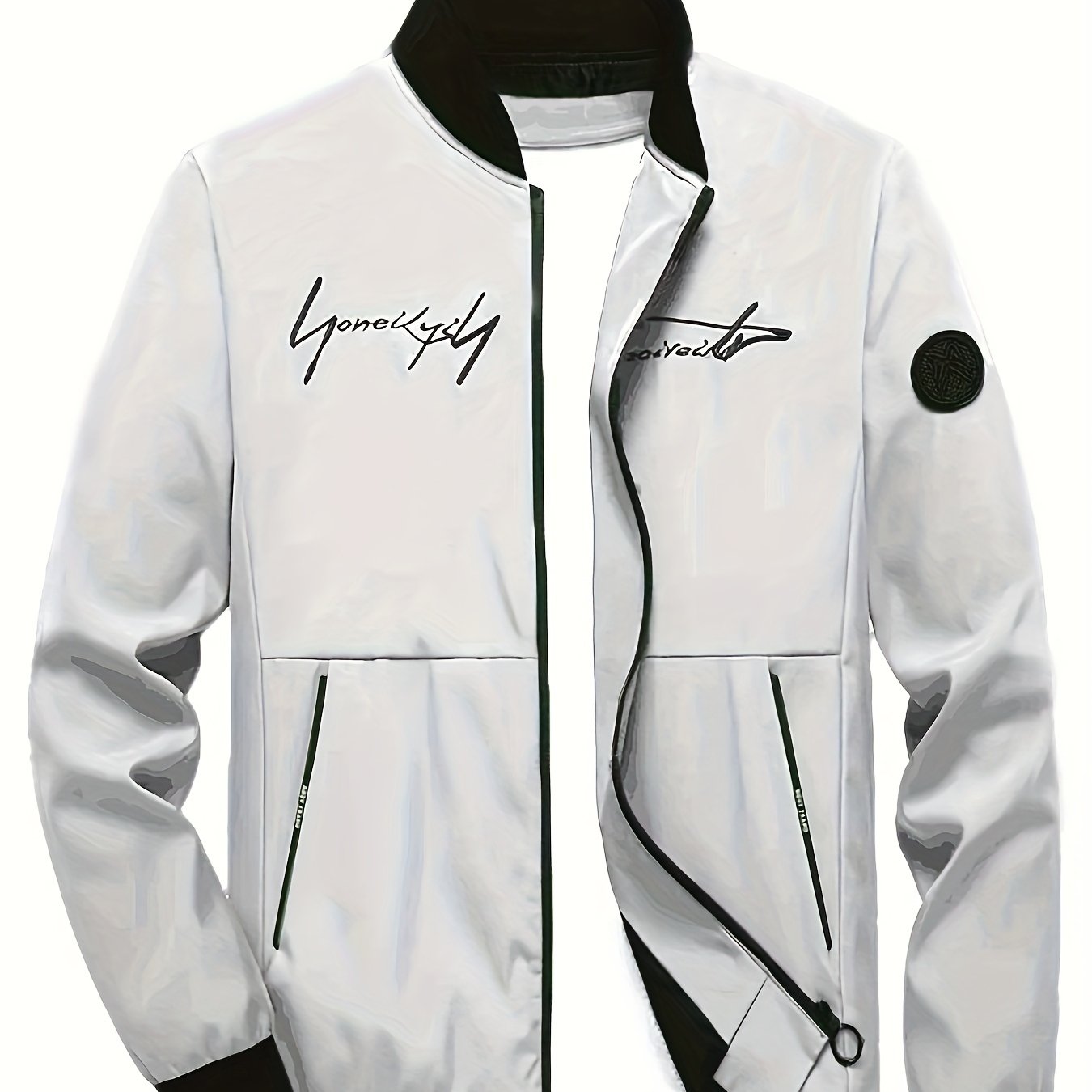 Erkaklar uchun tasodifiy harf bosma bomber kurtkasi, bahor/kovak faoliyatlari uchun zip cho'ntaklar bilan
