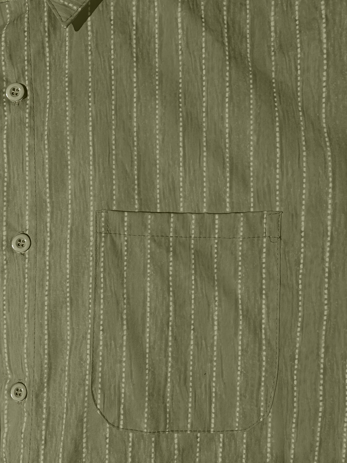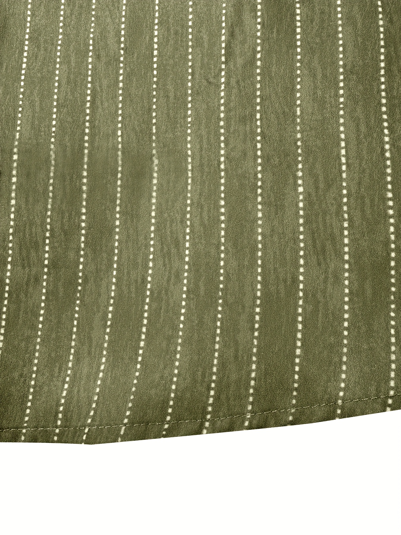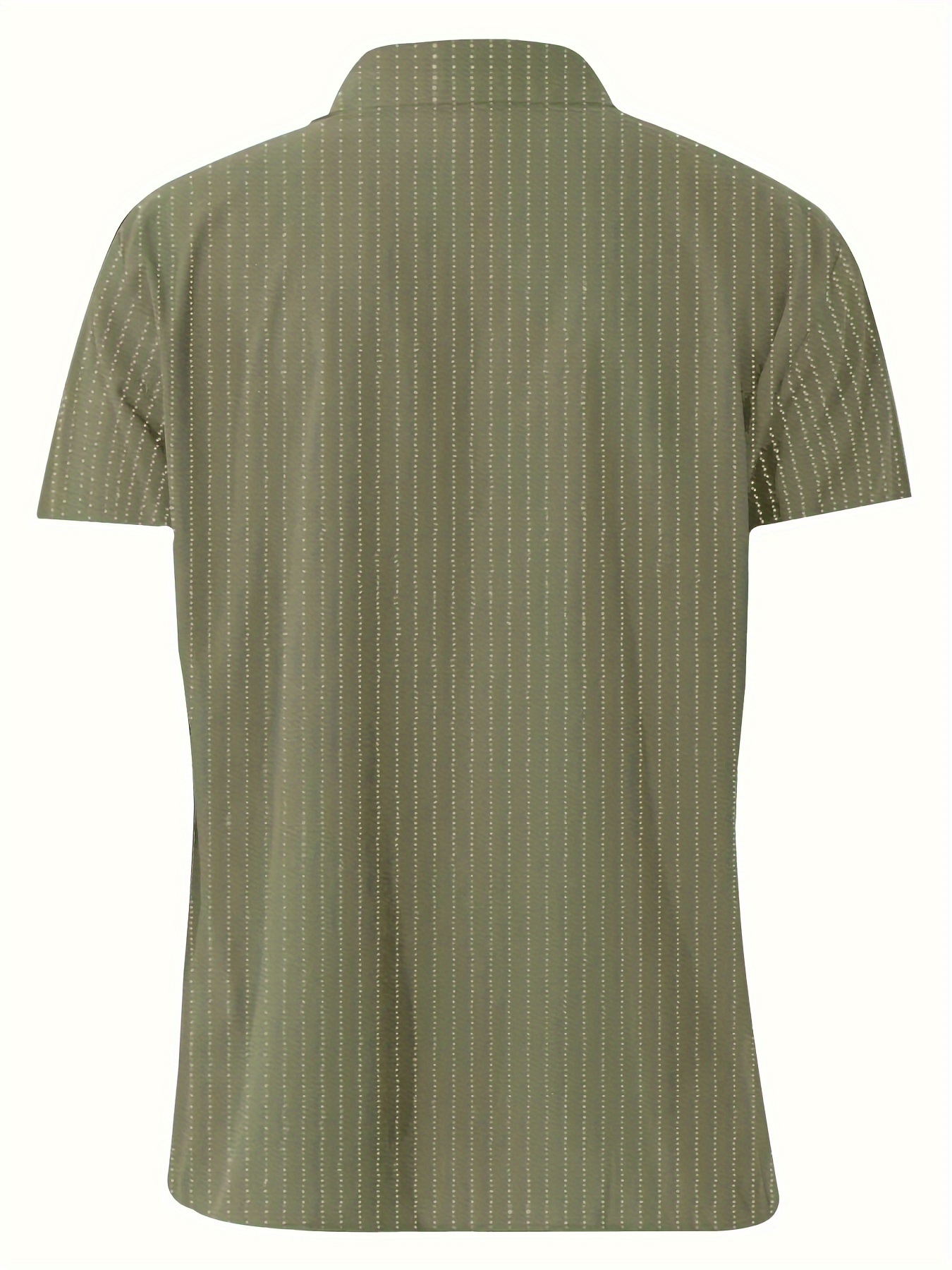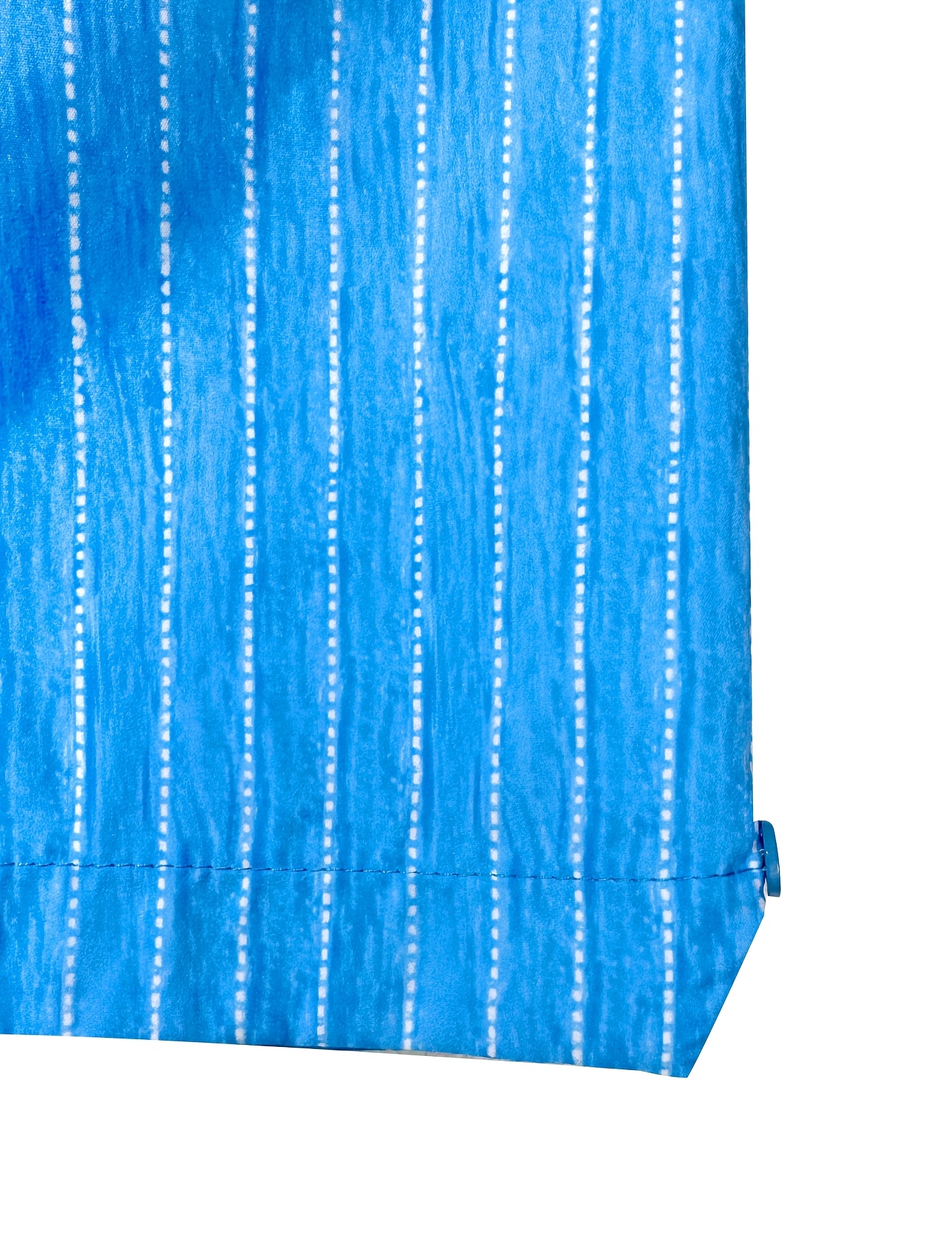 Erkaklar uchun tasodifiy engil ko'k chiziqli tugmachali ko'ylak 100% polyester to'qilgan matodan tayyorlangan, oq aksentlar bilan. Yelka yengil, qisqa yenglar va ko'krak cho'ntagi bilan, odatiy moslikda. Mos keladi.