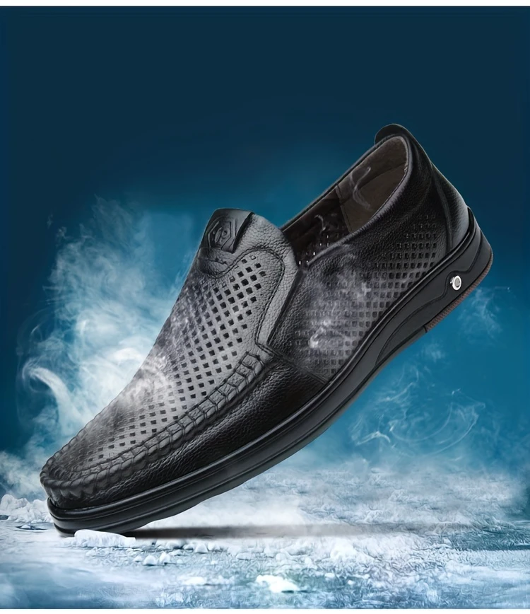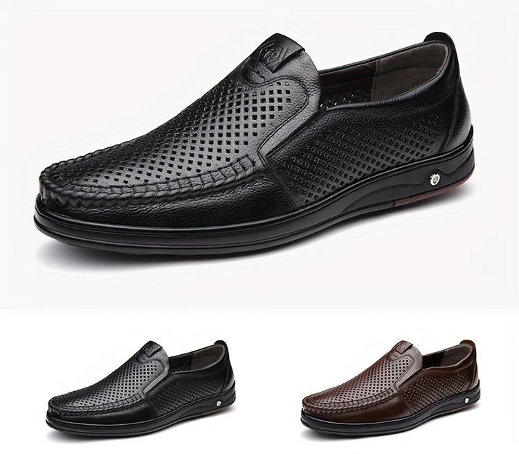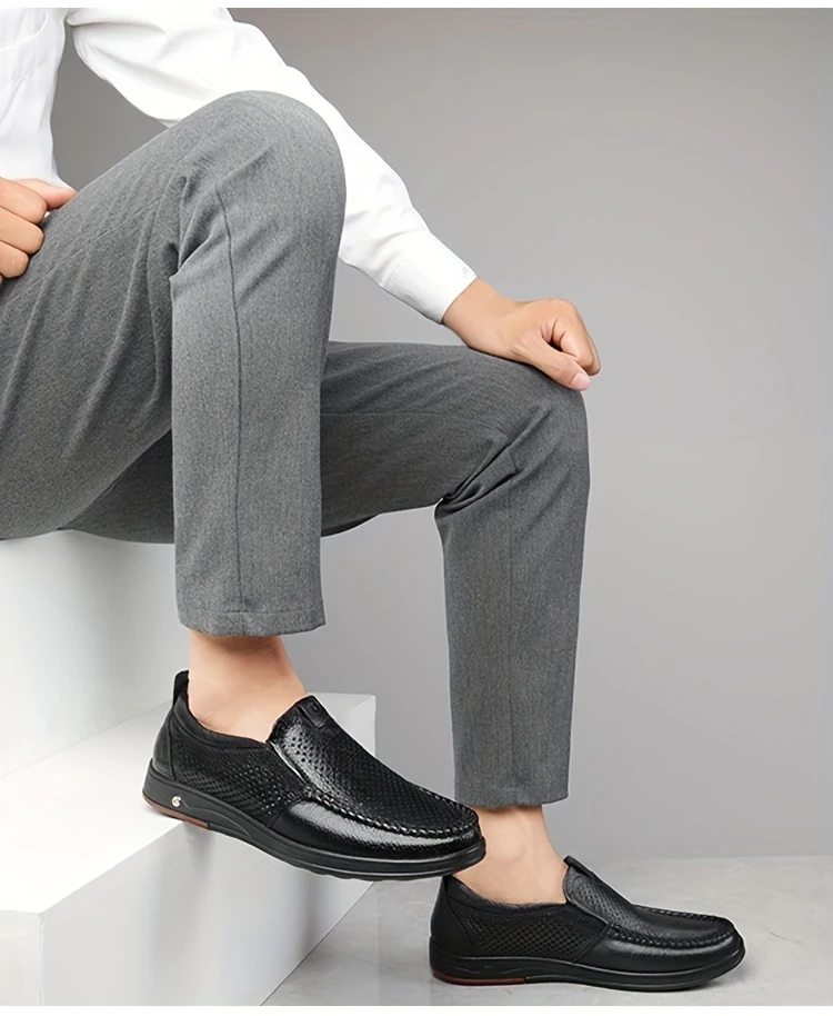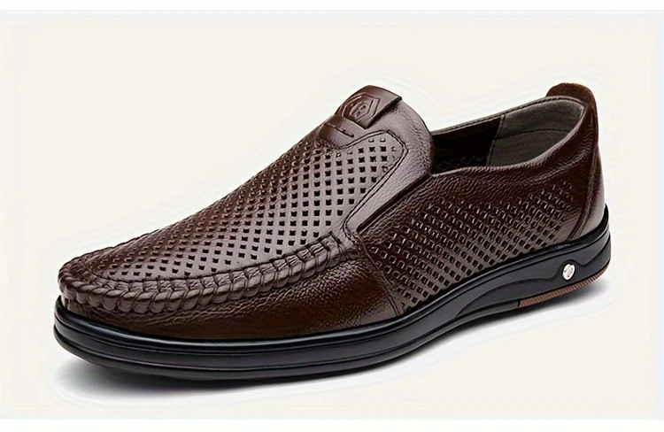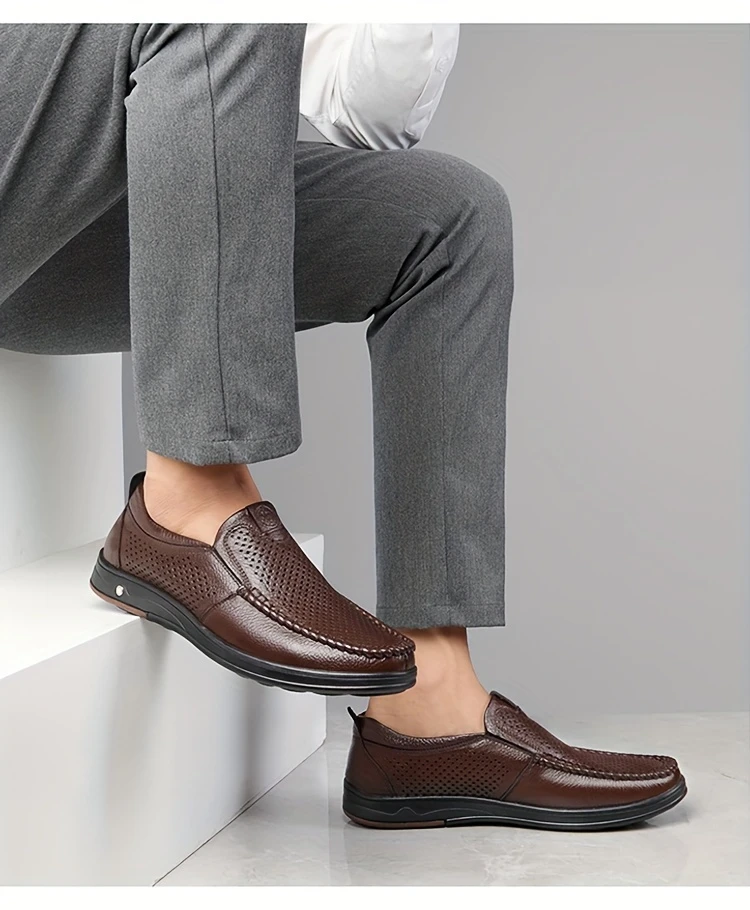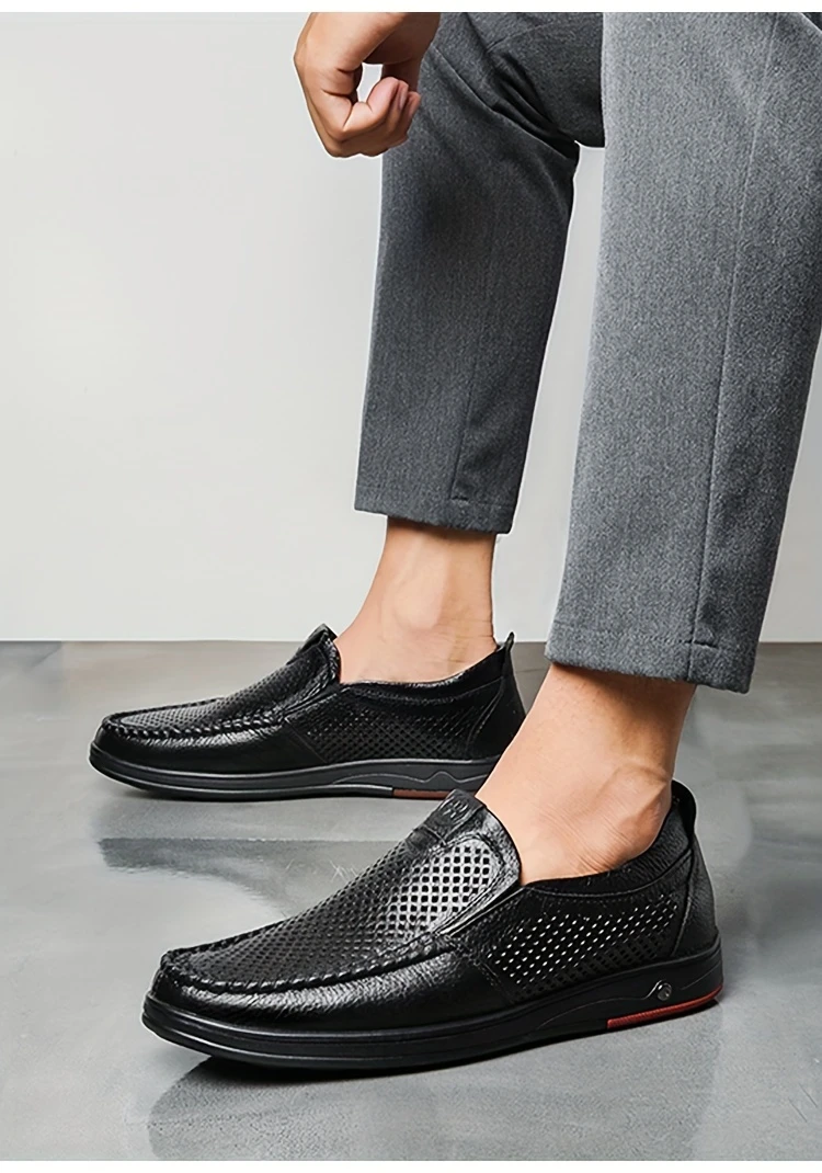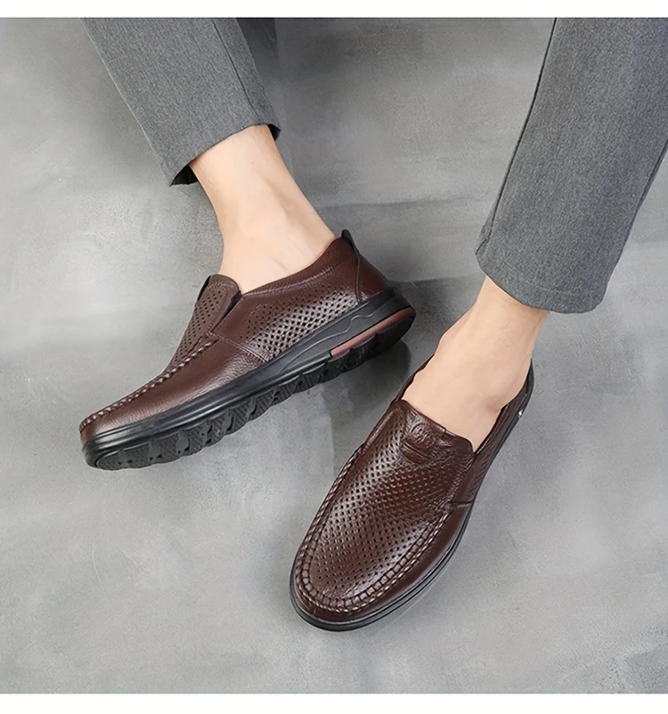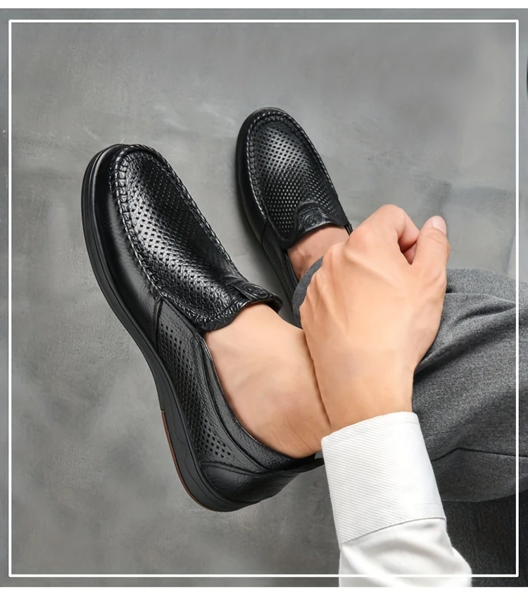 Erkaklar uchun tasodifiy loferlar, bo'sh dizayn, yuqori charm ustki qismi va nafas oladigan, kiyishga chidamli, tashqi va ofis kiyimlari uchun mo'ljallangan slip-on uslubi.