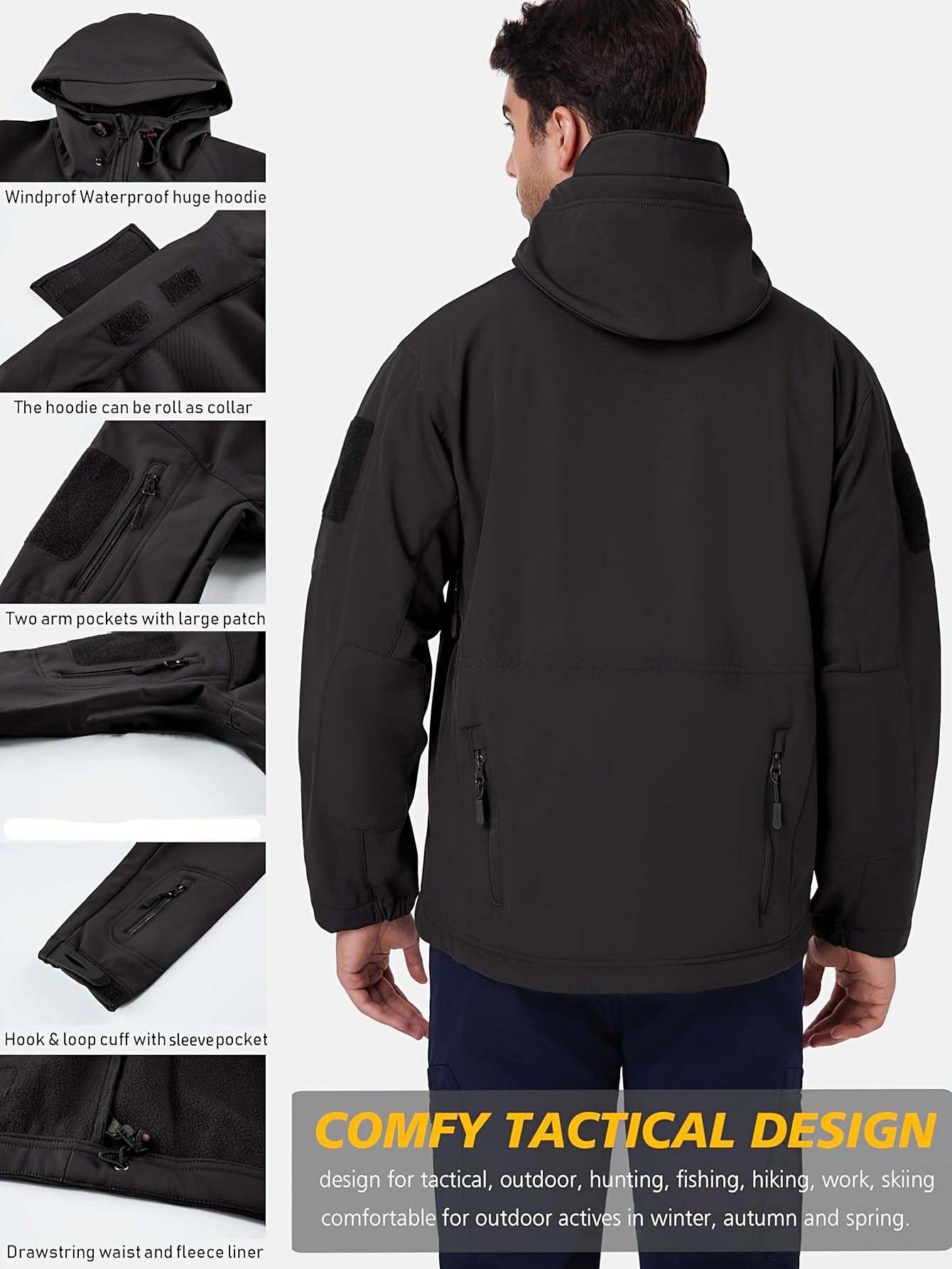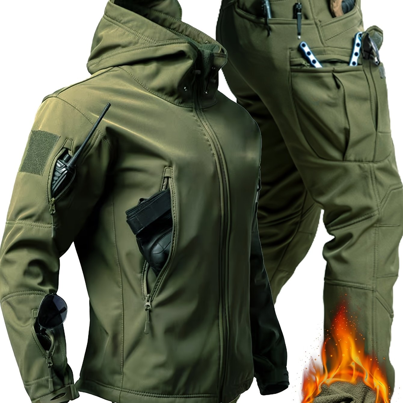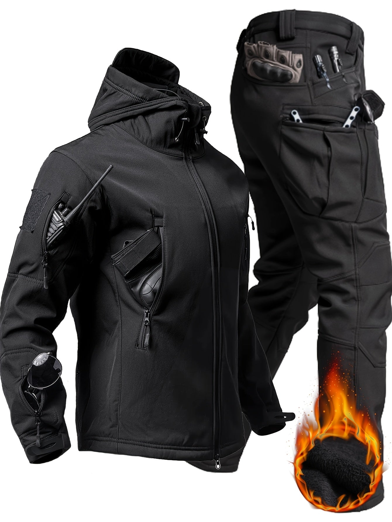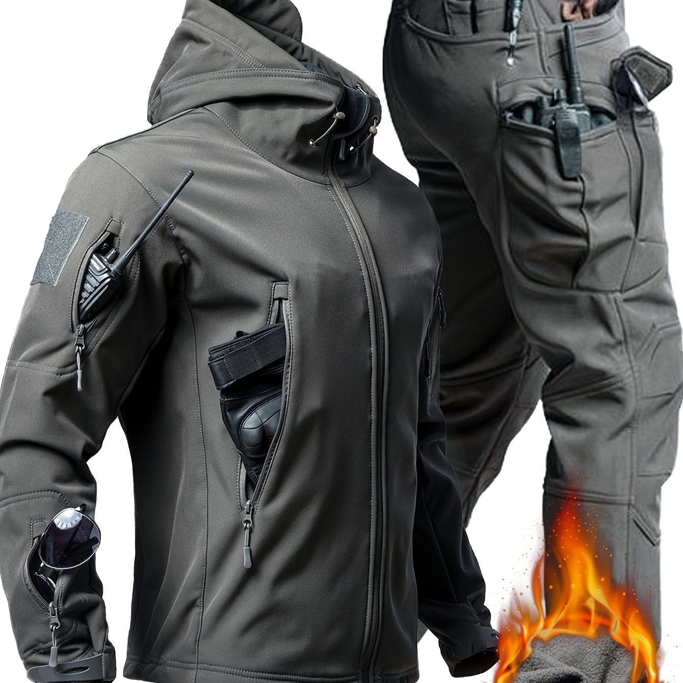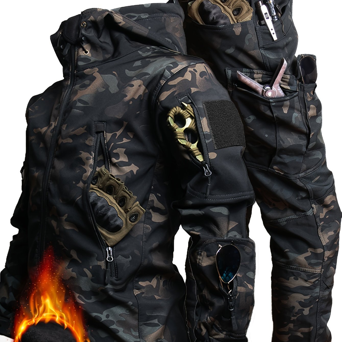 Erkaklar uchun tasodifiy kiyim to'plami, kamuflyaj va oddiy rangda, yumshoq astarli kurtka va shimlar, kuz va qish mavsumida sayr qilish va tog'ga chiqish uchun ko'p cho'ntaklar.