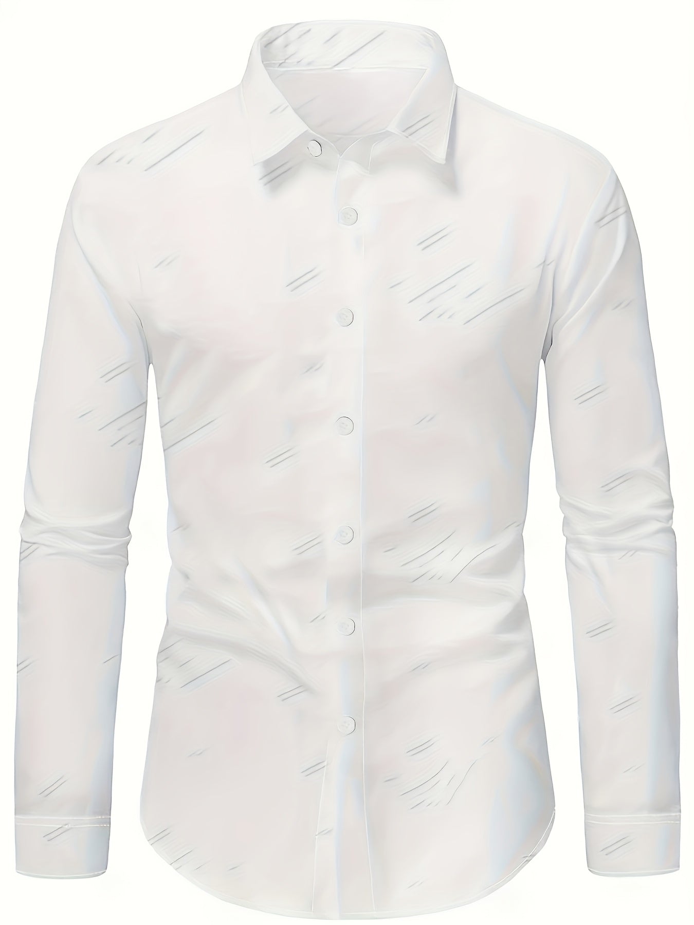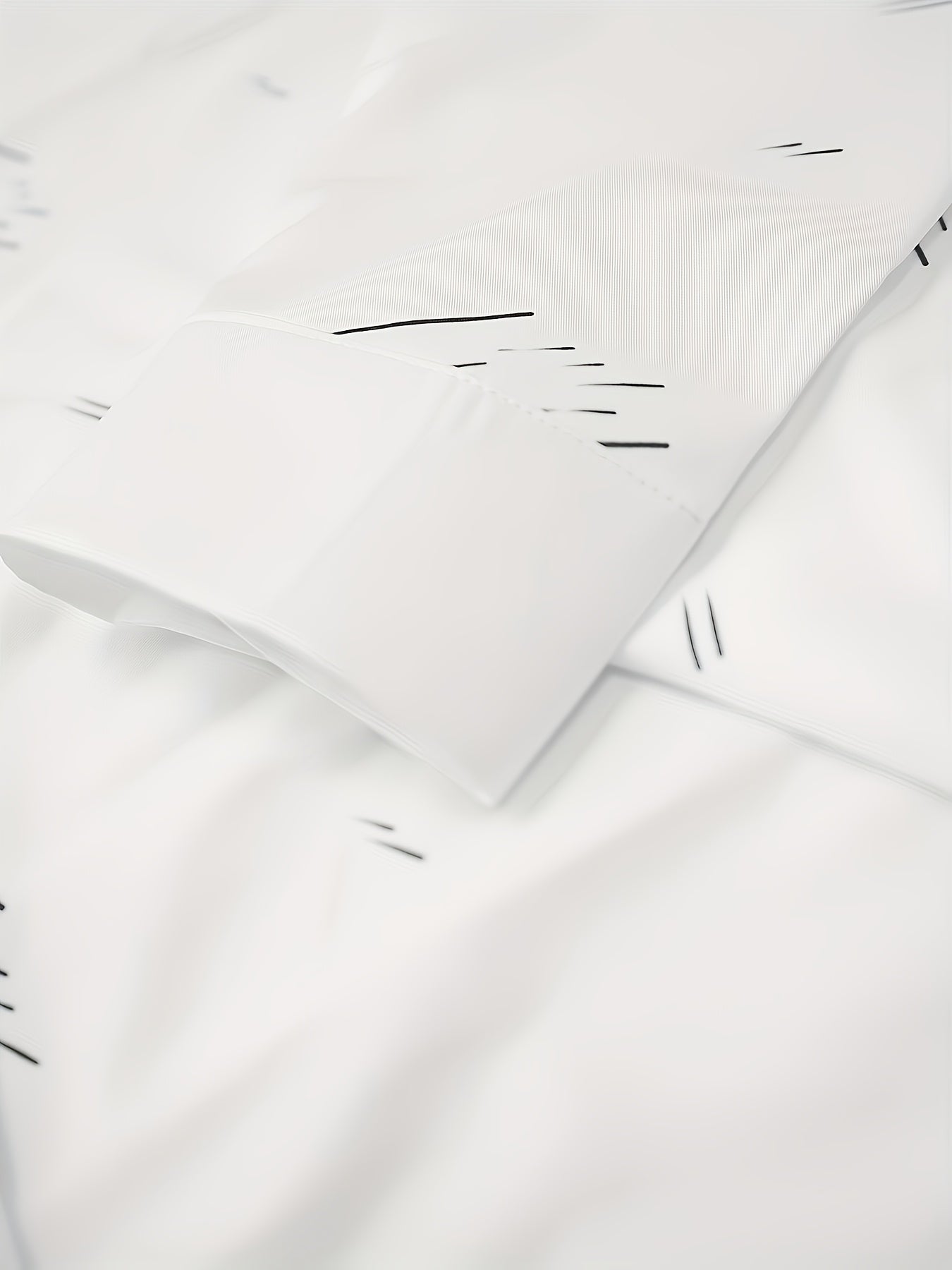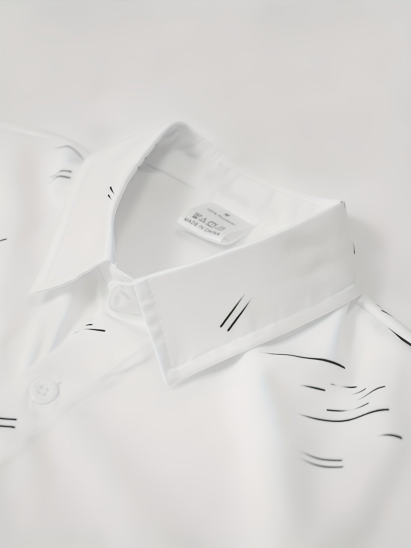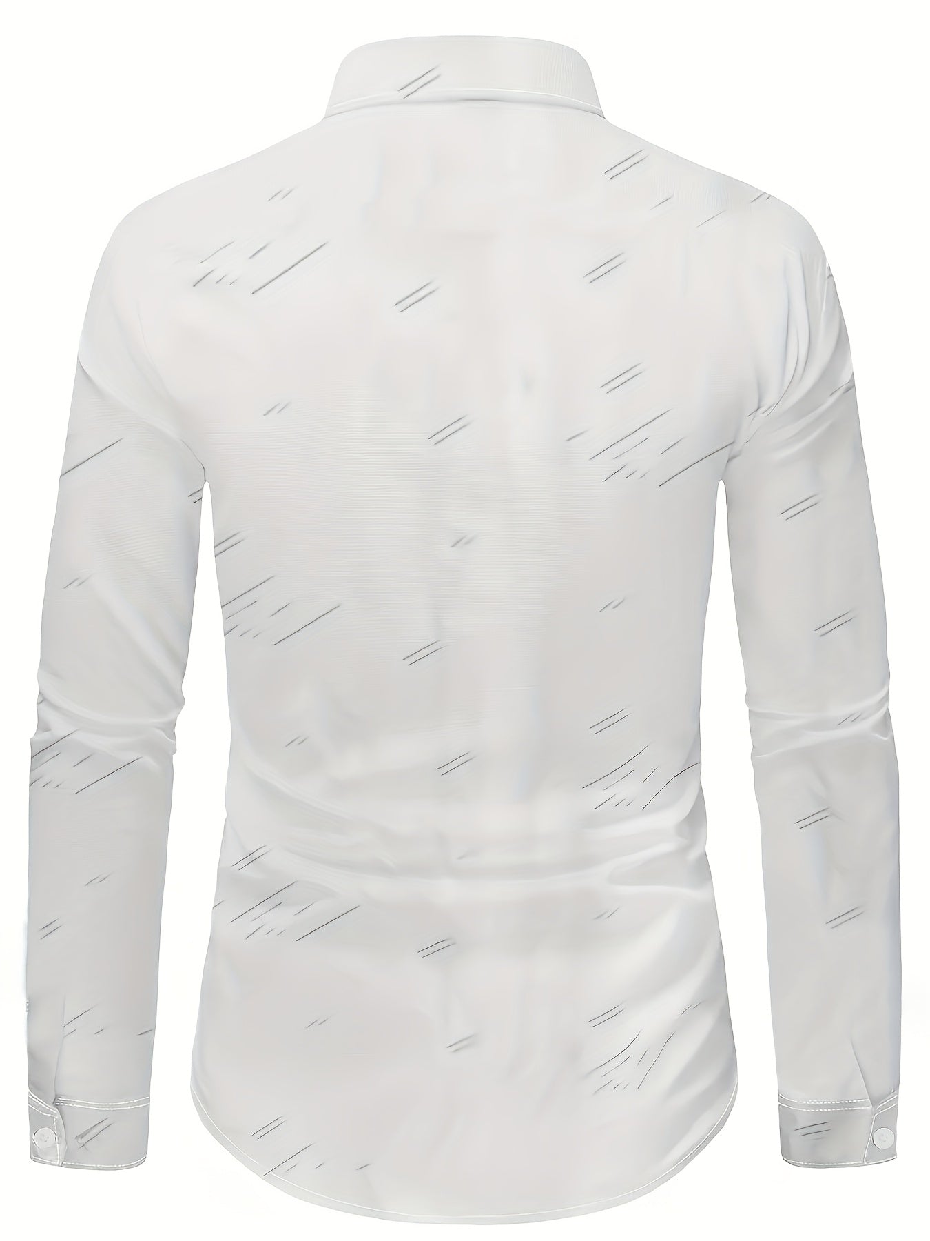 Erkaklar uchun tasodifiy ko'ylak, oq asosda va chiziqli naqshda, barcha fasllar va tadbirlar uchun mos 140g matodan tayyorlangan.