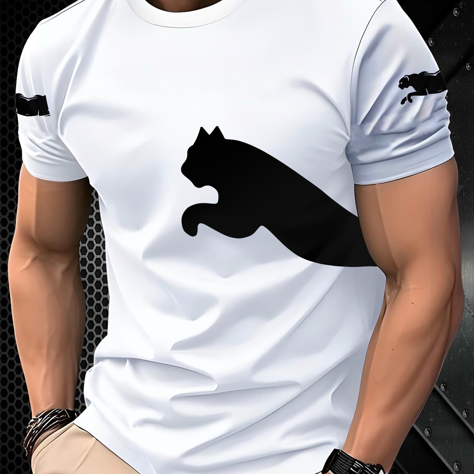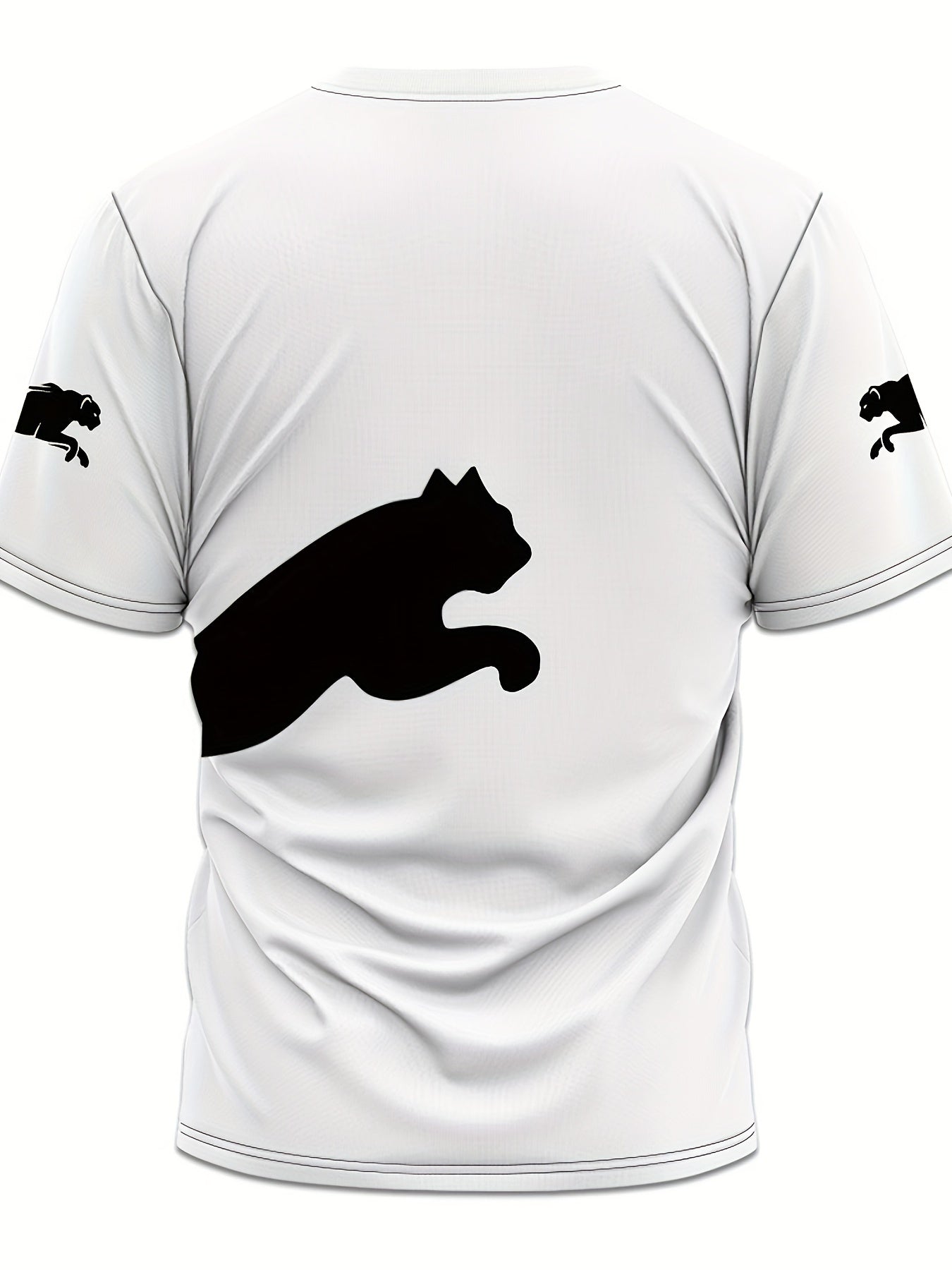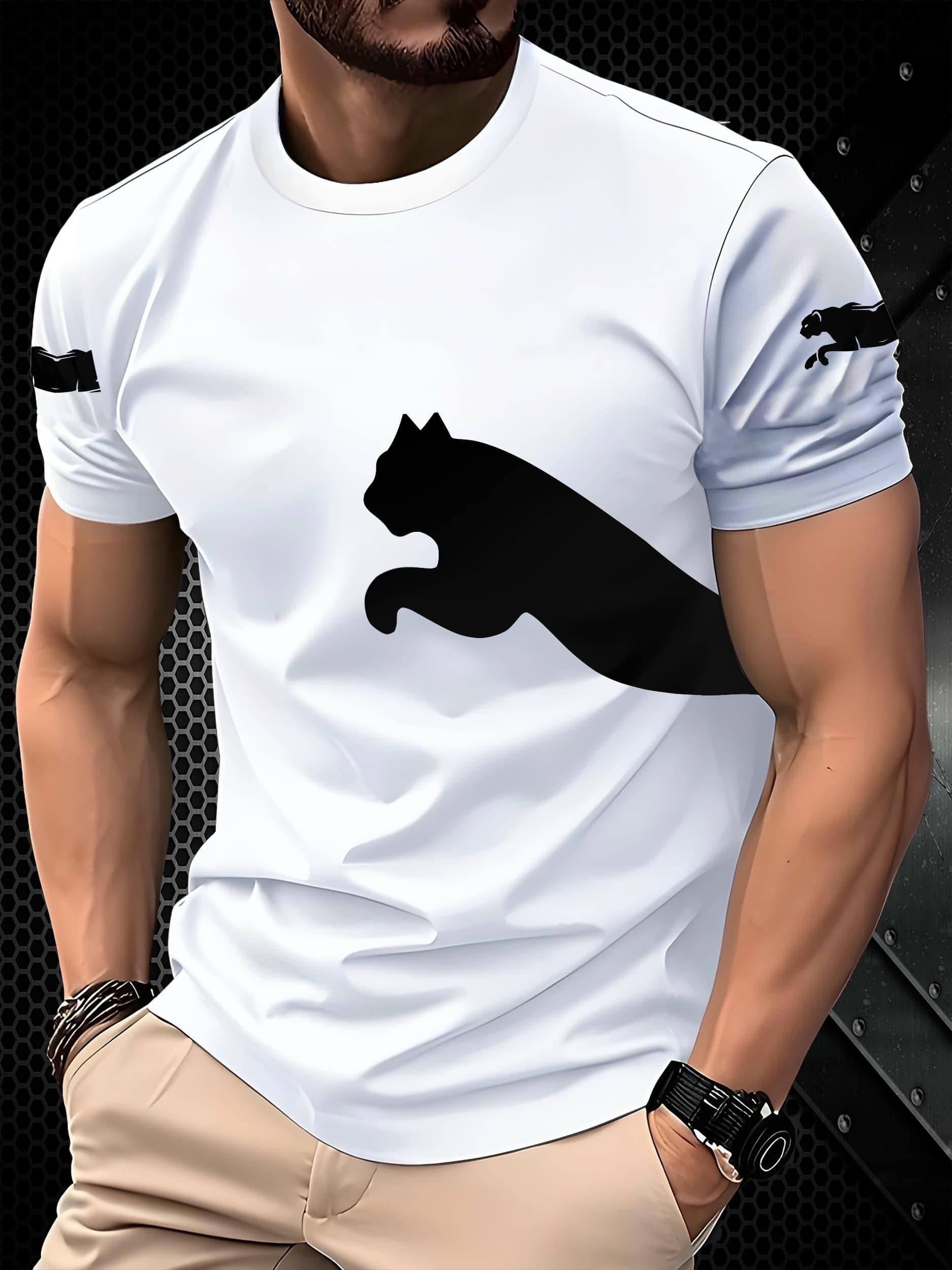 Erkaklar uchun tasodifiy qisqa yengli 3D mushuk printli futbolka, yozgi ochiq havoda kiyish uchun nafas oladigan polyester aralashmasidan tayyorlangan.