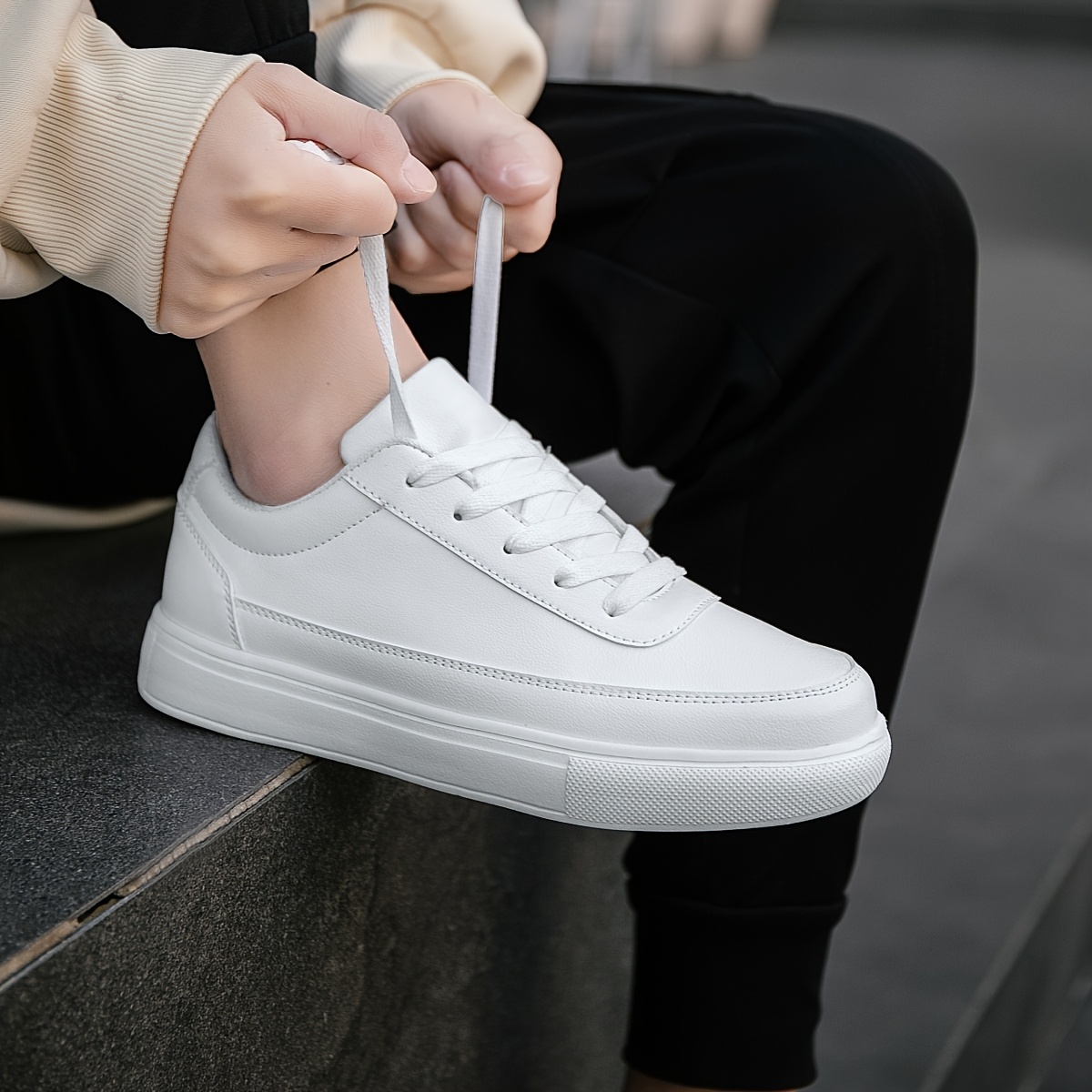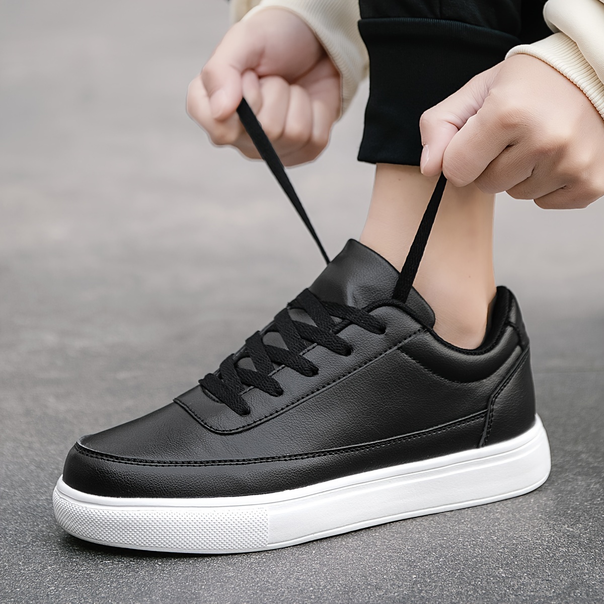 Erkaklar uchun tasodifiy ko'cha uslubidagi krossovkalar, barcha mavsumlar uchun mos. Mustahkam rang, pastki qismi bog'ichli dizayn, sun'iy yuqori qismi, mato ichki qismi va EVA tagligi bilan yugurish va kundalik kiyish uchun.