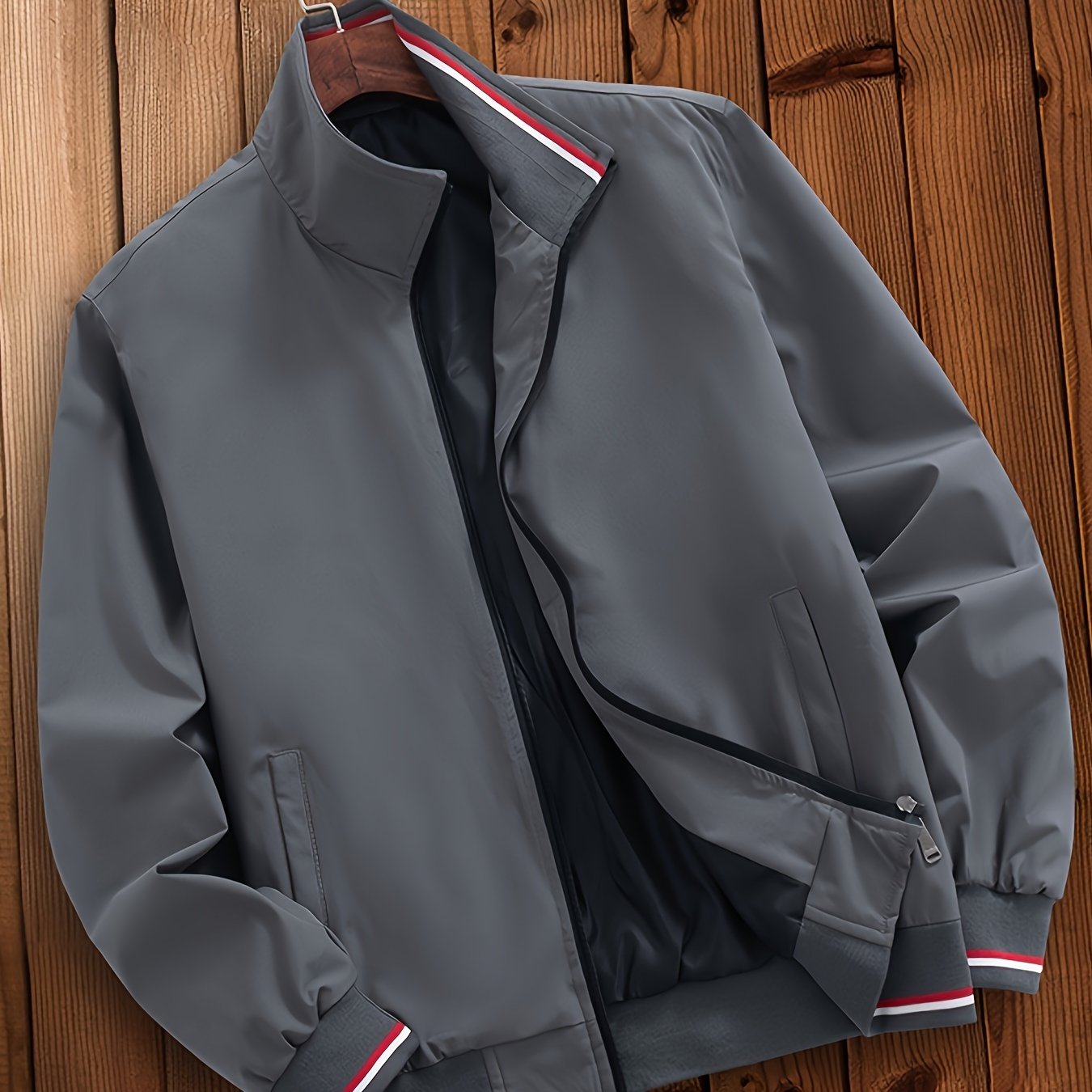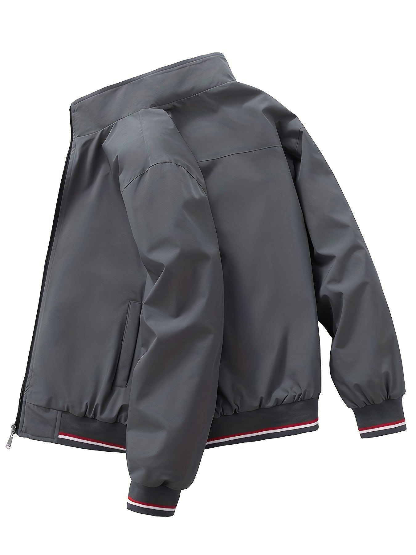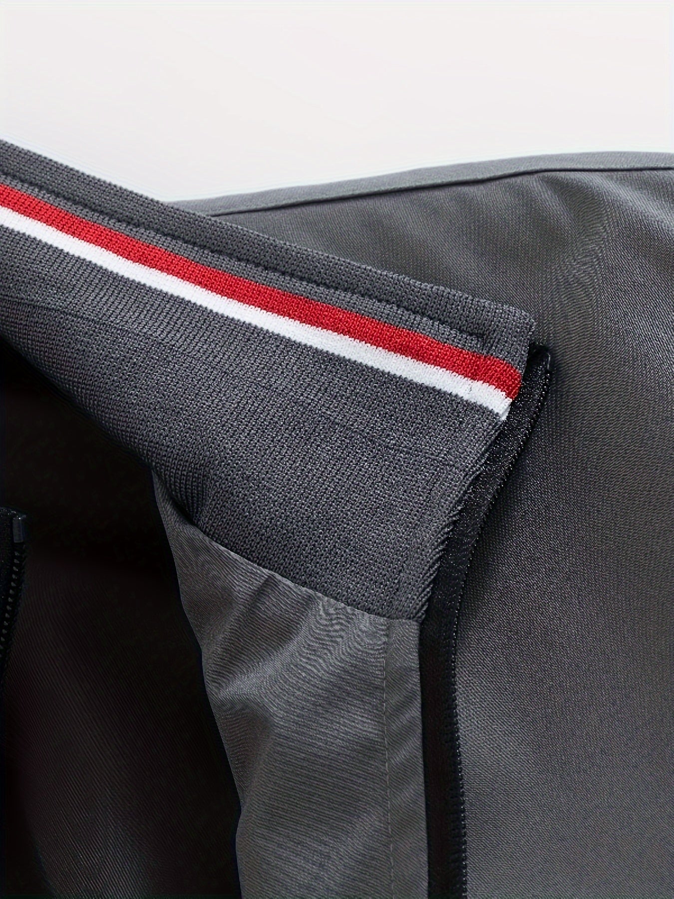 Erkaklar uchun tasodifiy chiziqli jakket, cho'ntaklar bilan, turli xil yenglar, fermuar yopilishi va uzun yenglar bilan, ochiq havoda kiyish uchun mos.