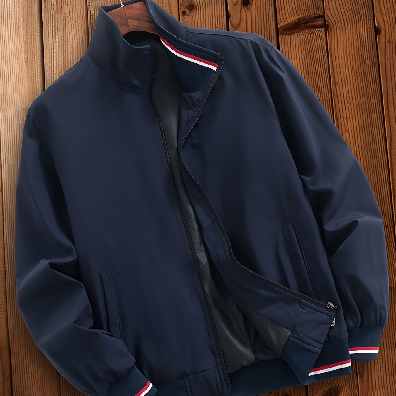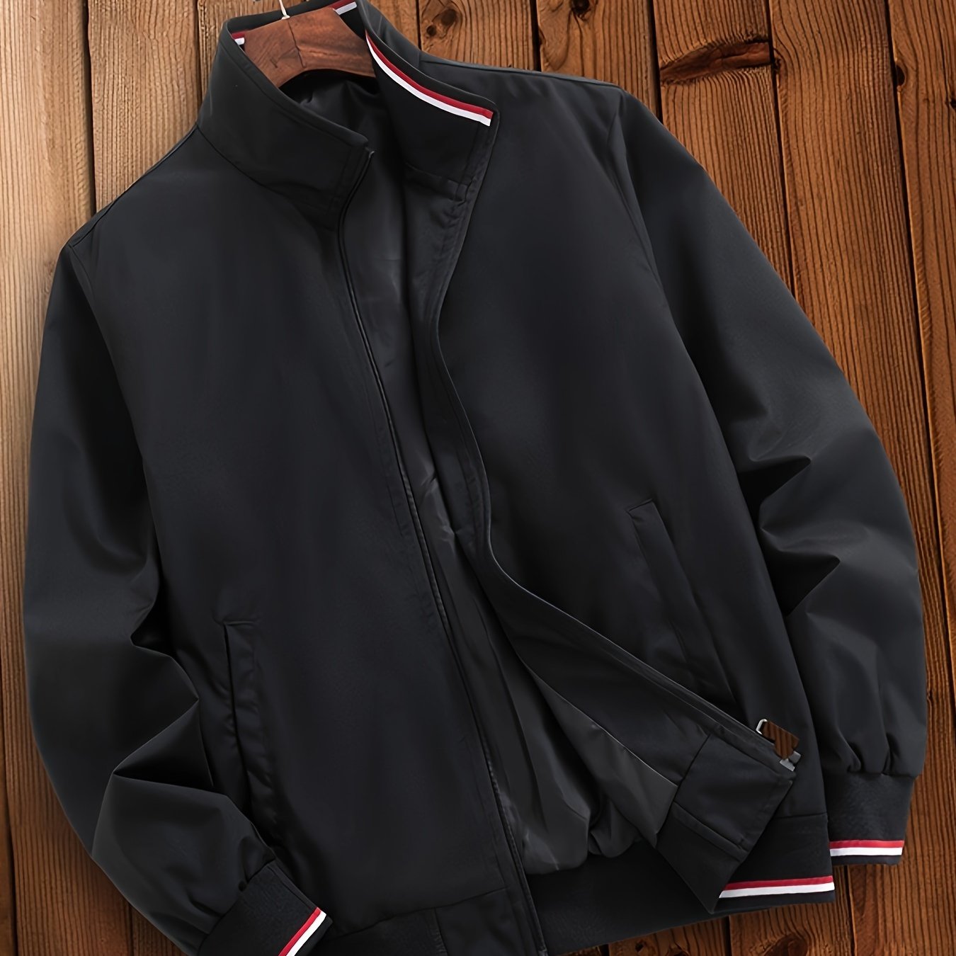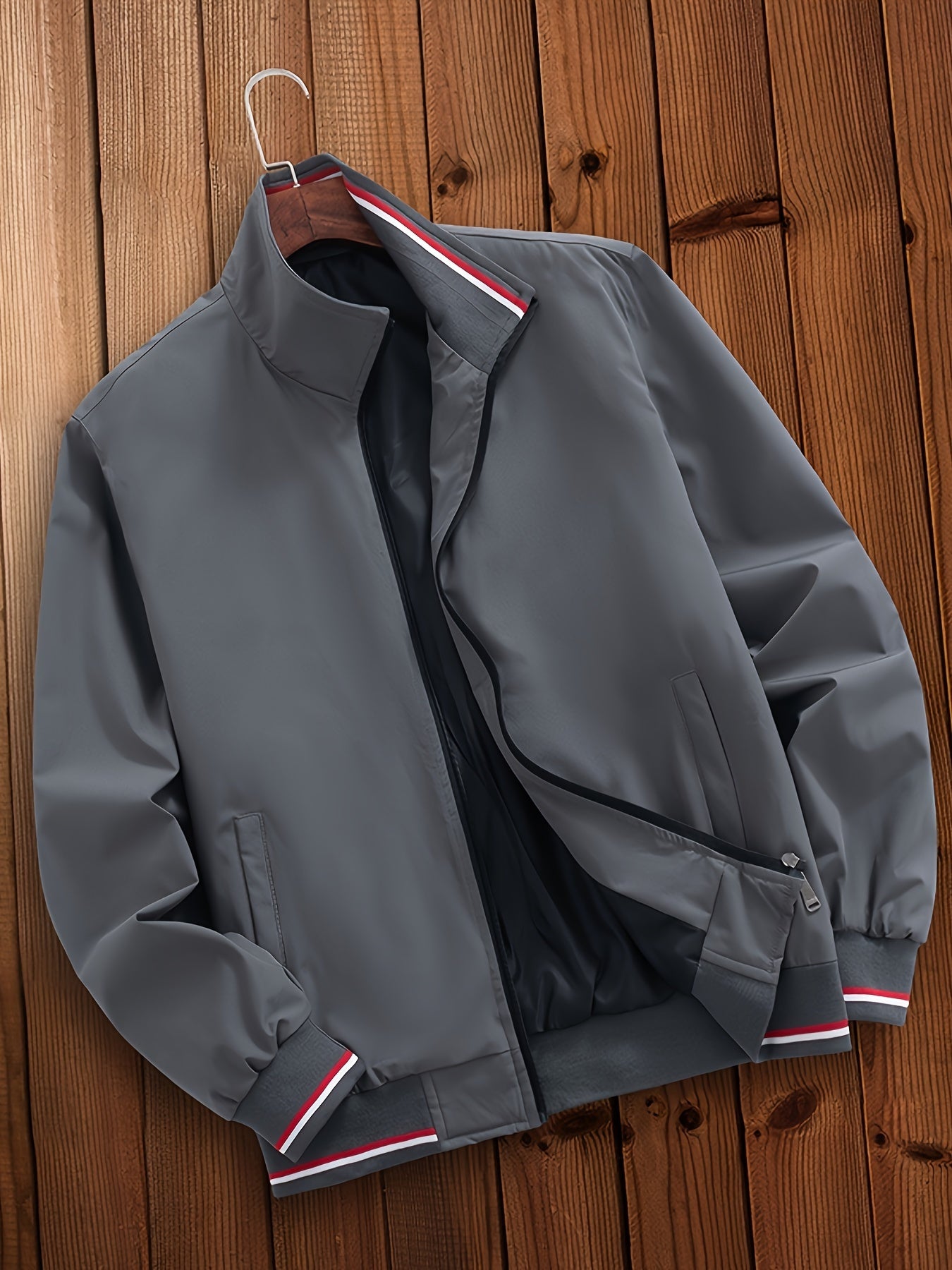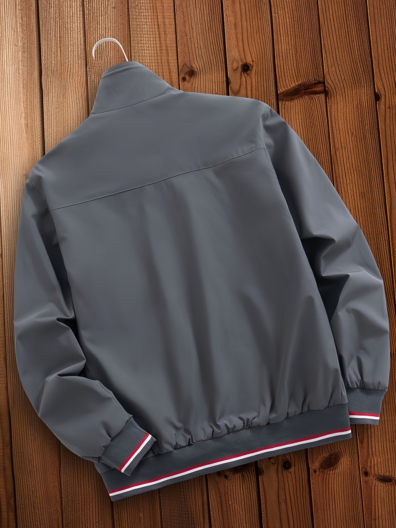 Erkaklar uchun tasodifiy chiziqli jakket, cho'ntaklar bilan, turli xil yenglar, fermuar yopilishi va uzun yenglar bilan, ochiq havoda kiyish uchun mos.