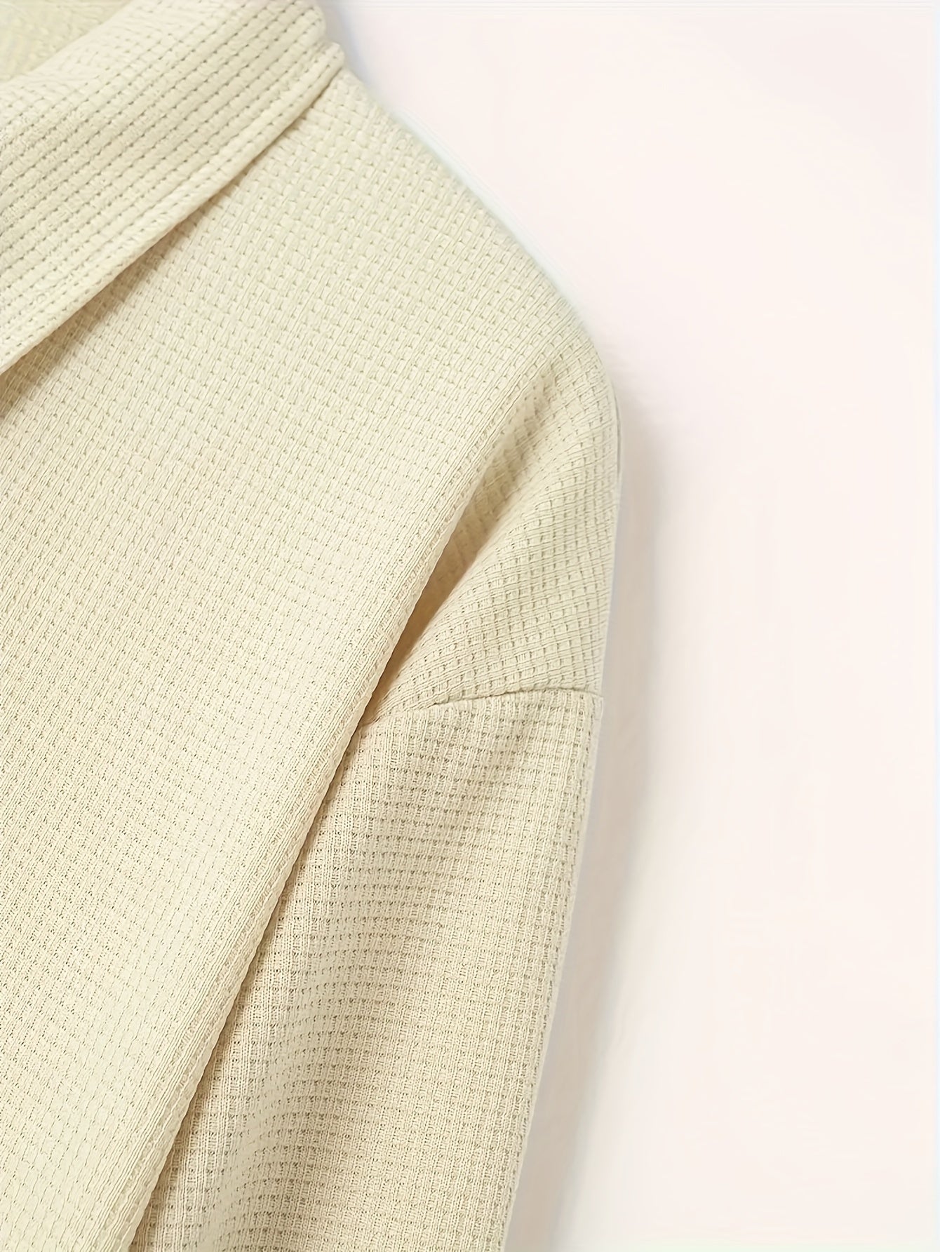 Erkaklar uchun tasodifiy waffle to'qilgan sport kostyumi, polyester fermuarlı kurtka va odatdagi kesimdagi shimlar bilan.