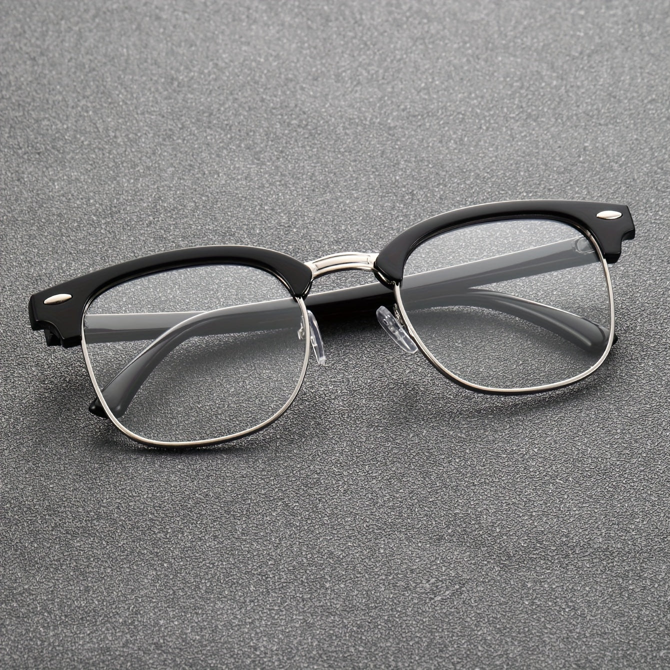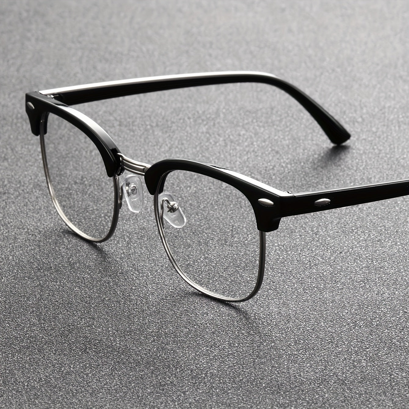 Erkaklar uchun klassik moda ko'zoynaklari qora yarim ramkasiz uslubda, TAC linzalari bilan, tasodifiy dizayn, metall aksessuarlar, har kuni foydalanish uchun mos va qulay joylashuvga ega zamonaviy ramka.