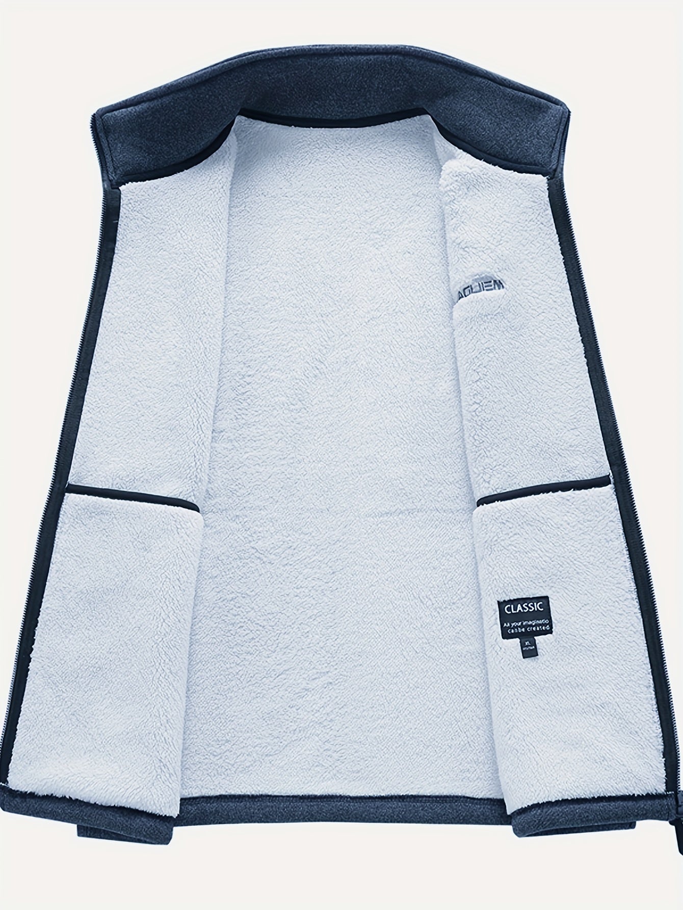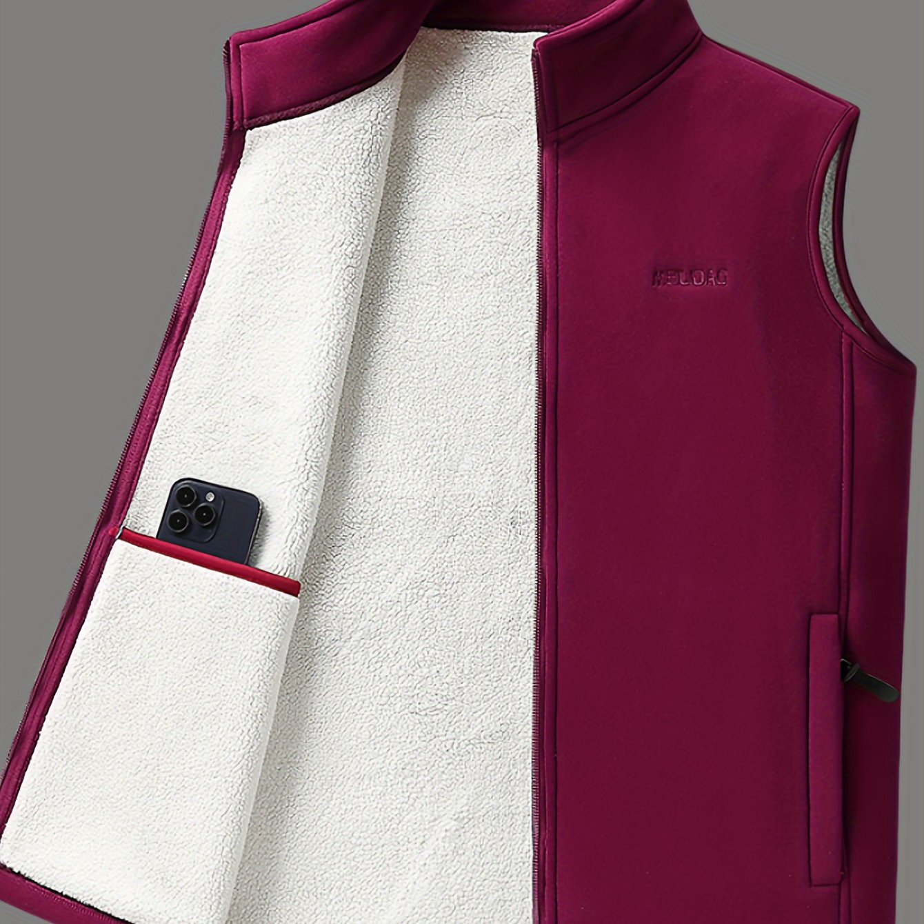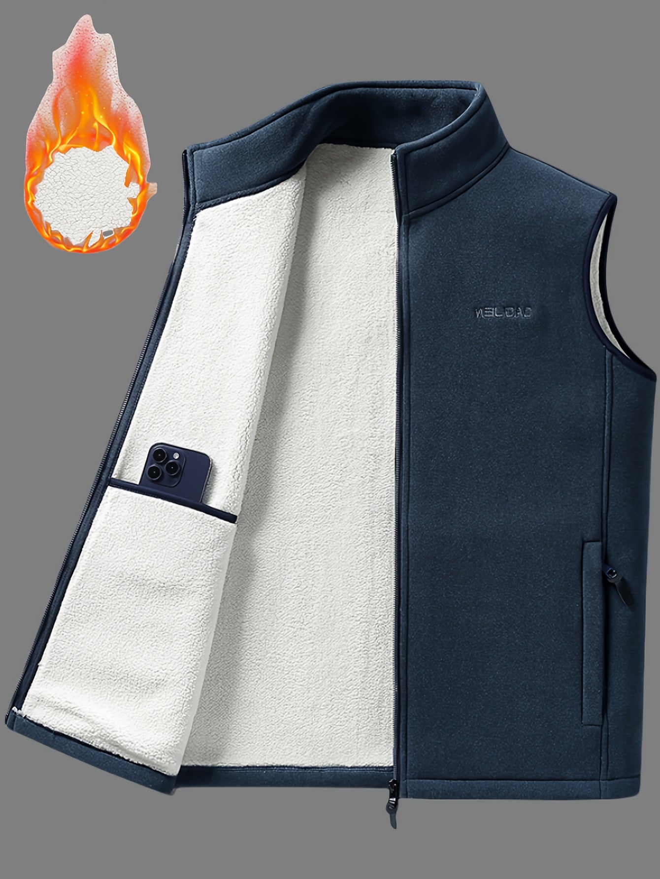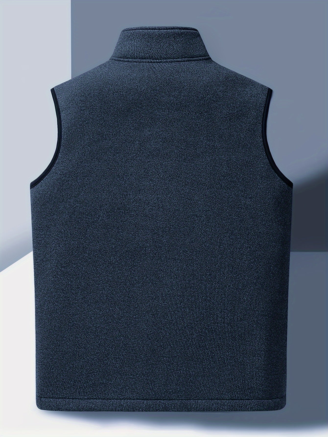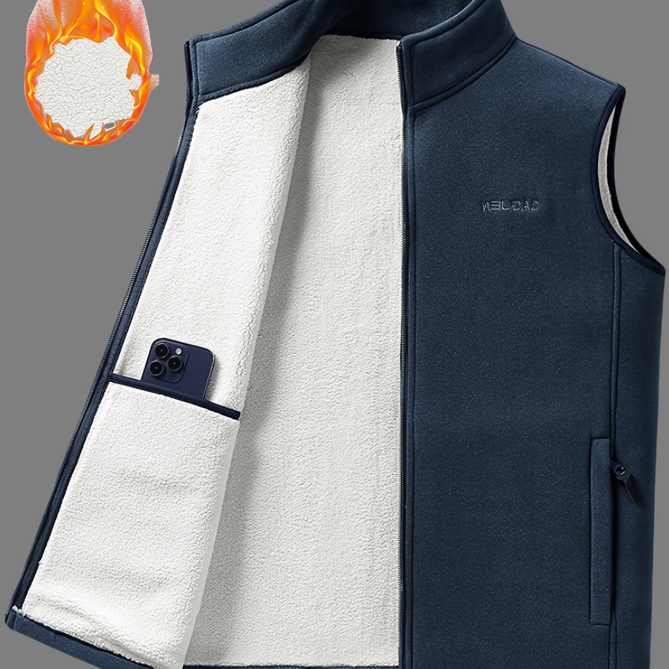 Erkaklar uchun qulay, ichki qoplamali vest, turli xil yoqimli ko'ylaklar, fermuarli cho'ntaklar va kuz/qish issiqligi uchun tugma yopilishi.