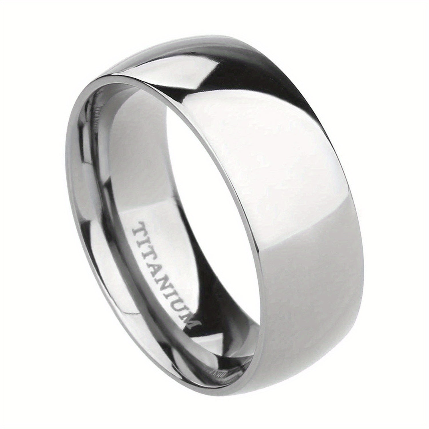 Erkaklar uchun Dome Yuqori Polirovka Qilingan Toza Titan Halqa, kengligi 8mm, AQSh o'lchovlari 4.5-14 da mavjud, bitta dona sifatida sotiladi.