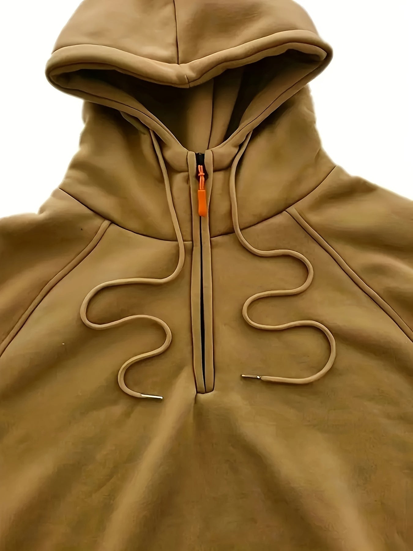 Erkaklar kuz/qish tasodifiy sport kiyimlari to'plami: Kapüşonli fermuarlı kurtka va tortma belli sport shimlari, polyester, tashqi faoliyatlar uchun odatdagi moslik.