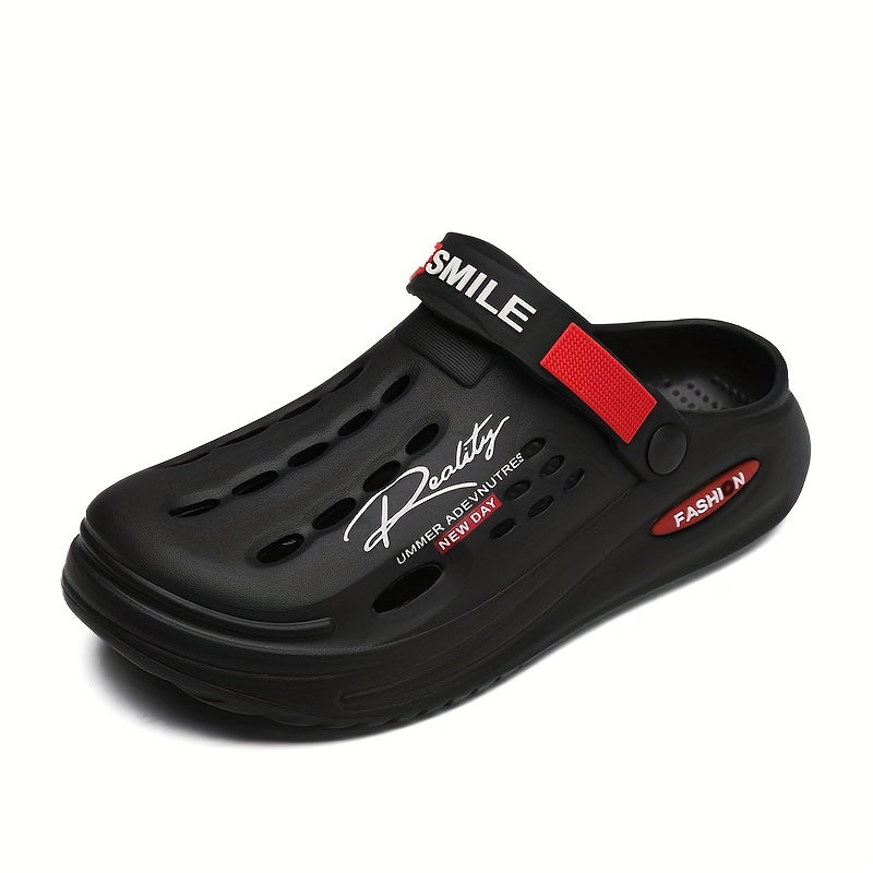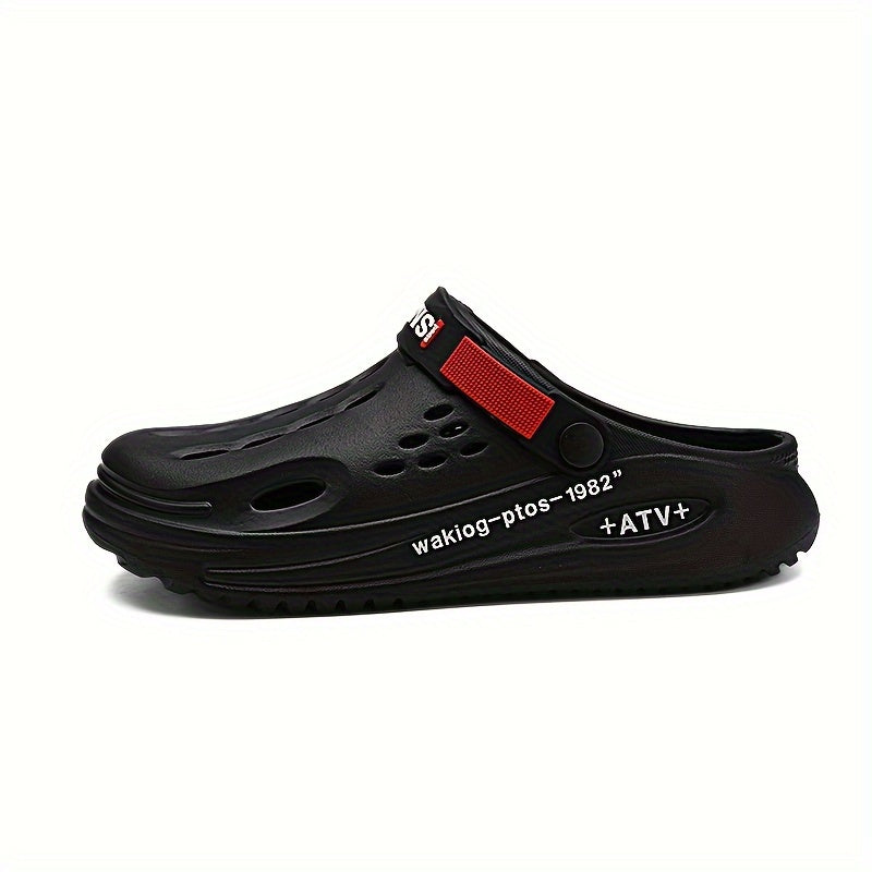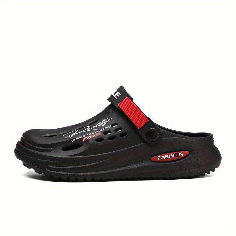 Erkaklar uchun moda qopqog'i: Qizil aksentli qora EVA sandallar, nafas oladigan va qulay, tasodifiy kiyim uchun surish dizayni.