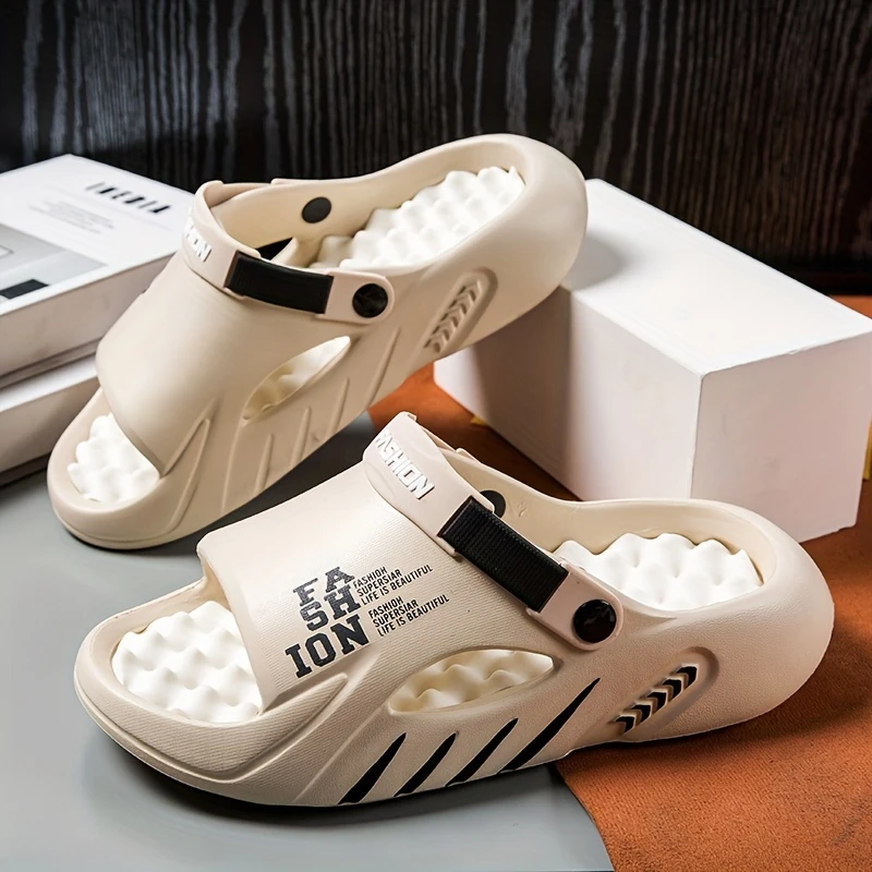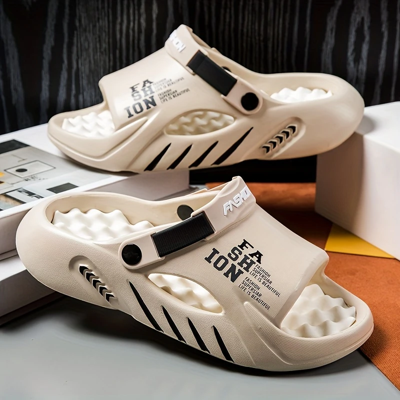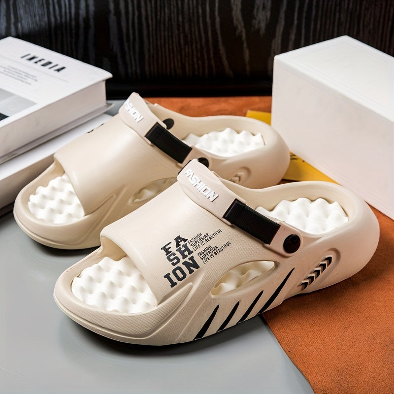 Erkaklar uchun moda EVA plyaj sandallari, yengil slip-on slaydlar, dumaloq barmoq dizayni bilan