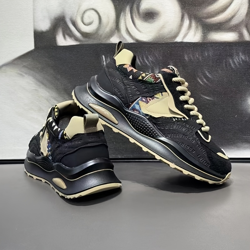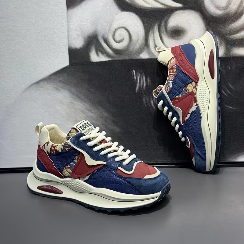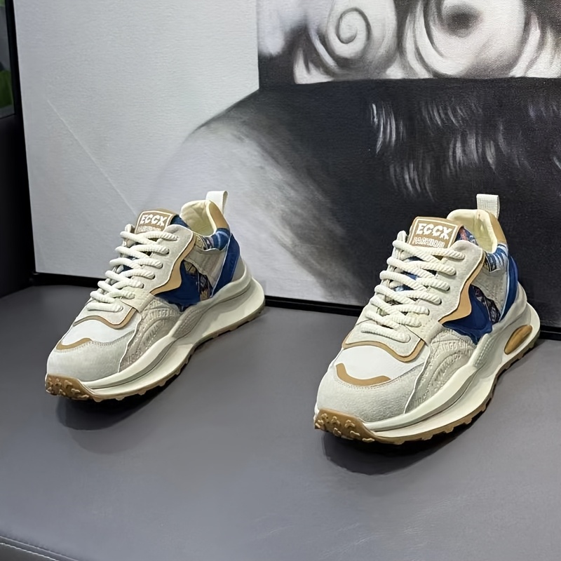 Erkaklar Moda Krossovkalari 2024: Preppy uslub, barcha mavsumlar uchun pastki qismi dumaloq barmoq, bog'ichli dizayn, mato va sun'iy yuqori qismi, kauchuk taglik, EVA ichki taglik va ko'p funksiyali rangli blokli Koreys otalarining poyabzallari.