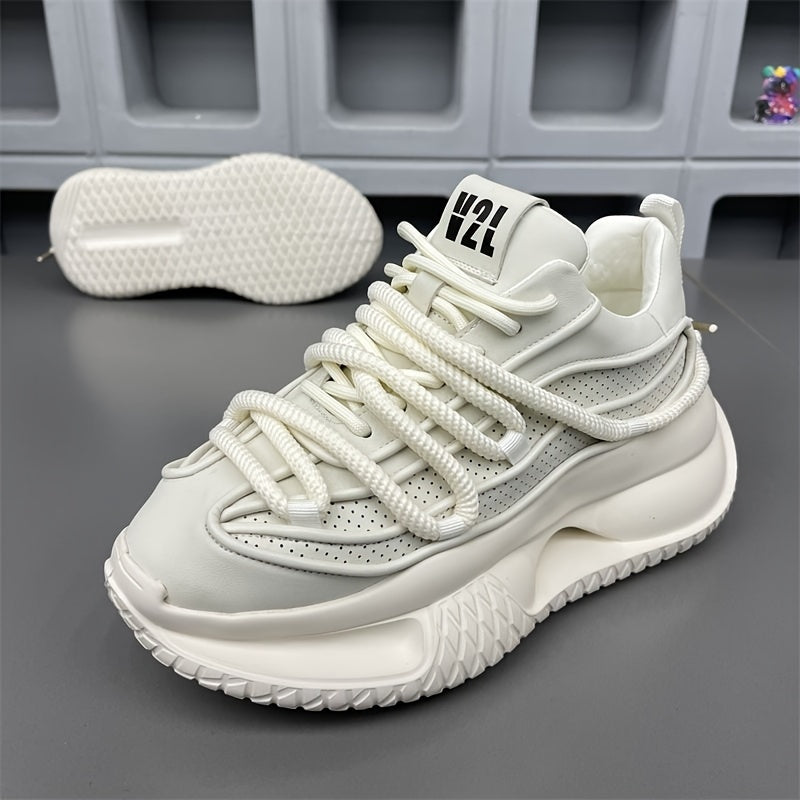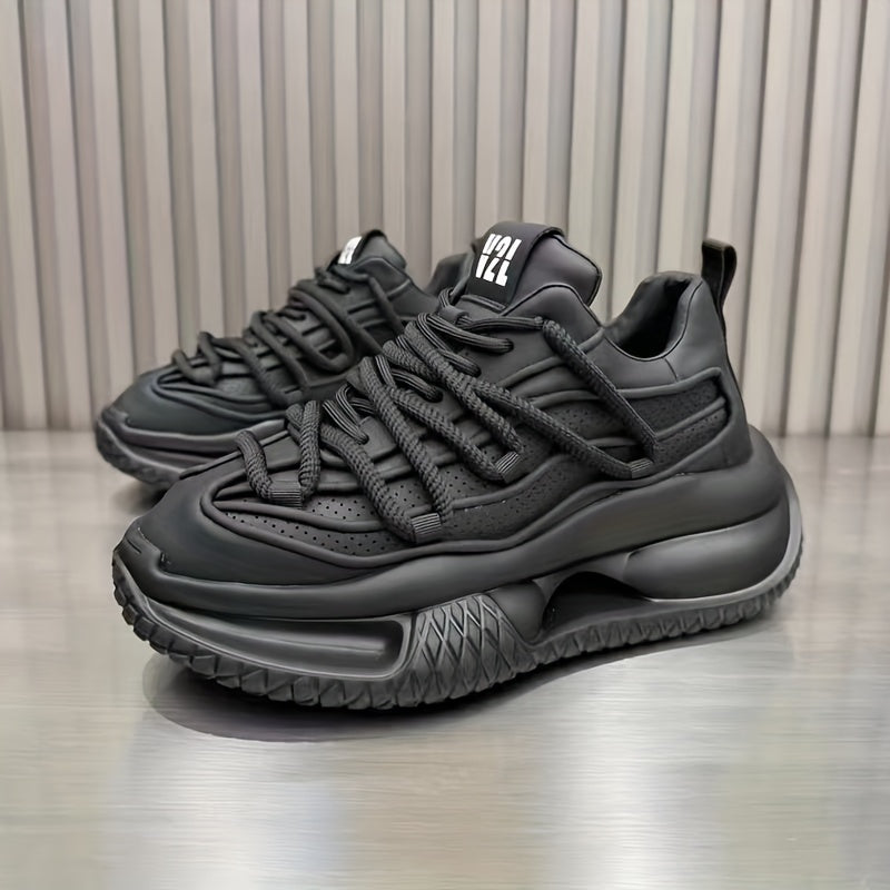 Erkaklar uchun sport uslubidagi krossovkalar, bir rangli, pastki qismi bog'ichli dizayn, qulay ichki mato, mustahkam PVC taglik va kundalik kiyish va yugurish uchun mato ichki taglik.
