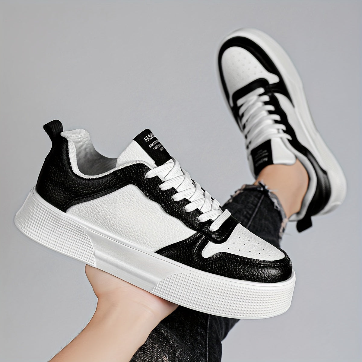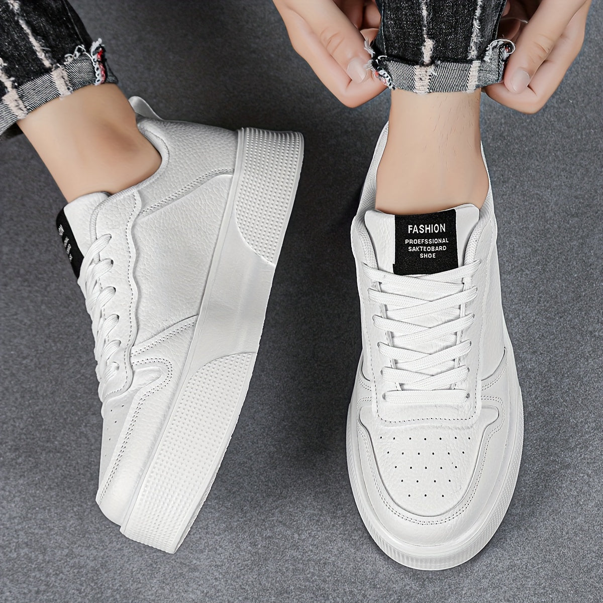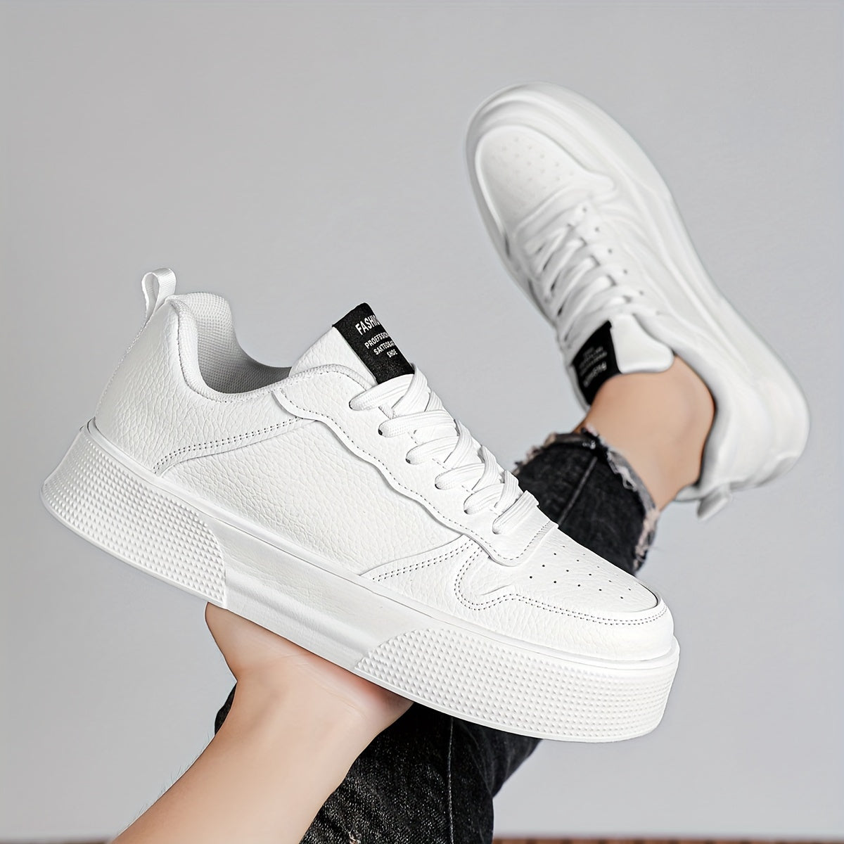 Erkaklar uchun bog'ichli tasodifiy sport poyabzallari, bir xil rangda, ko'p maqsadli dizayn, qulay va nozik, balandlikni oshirish uchun qalin taglik.