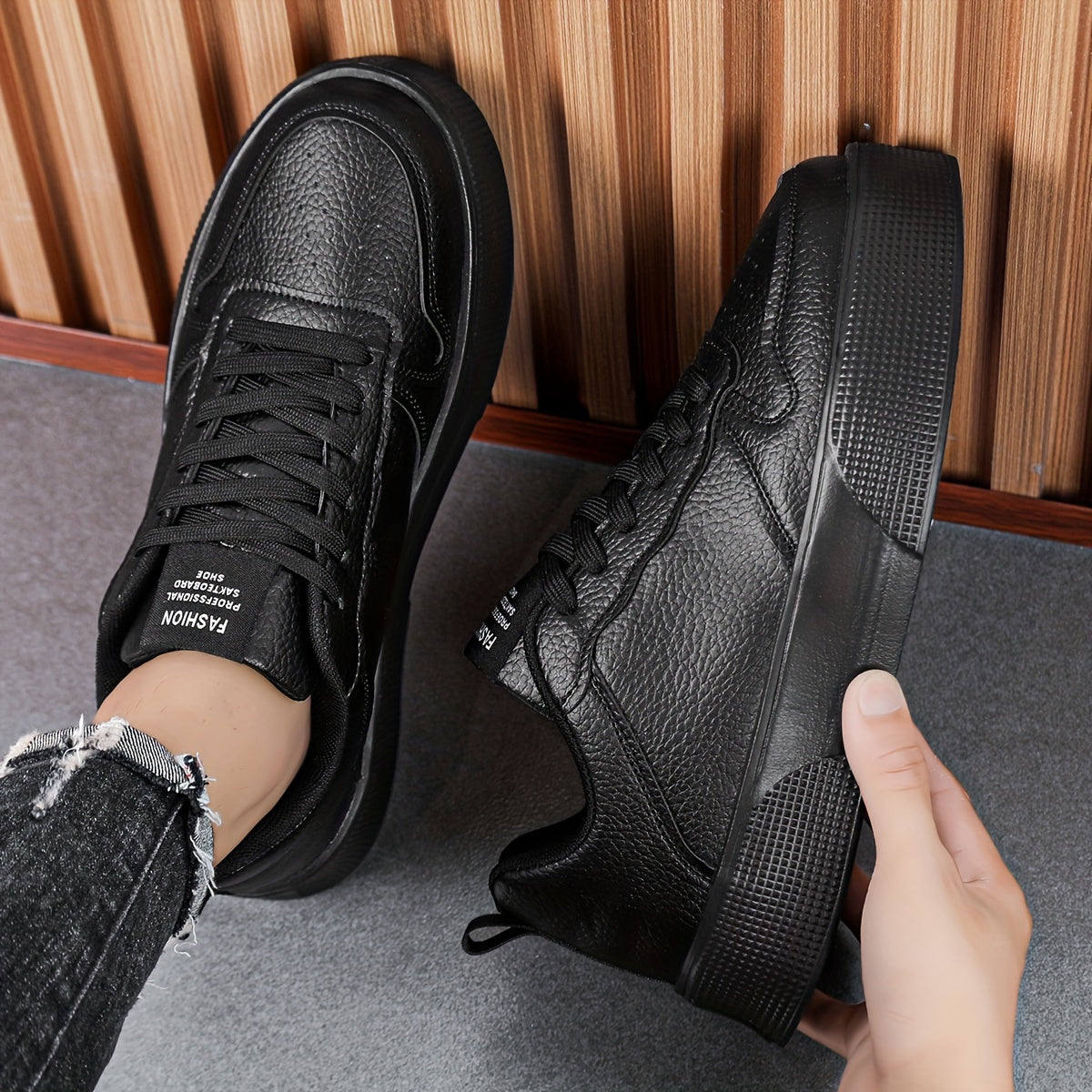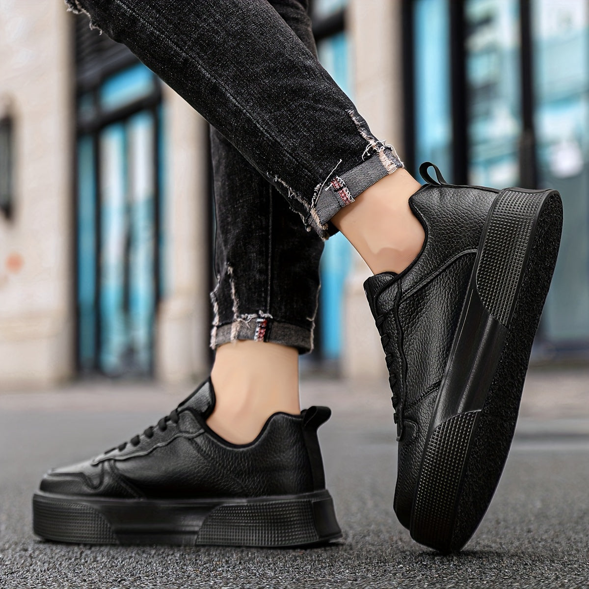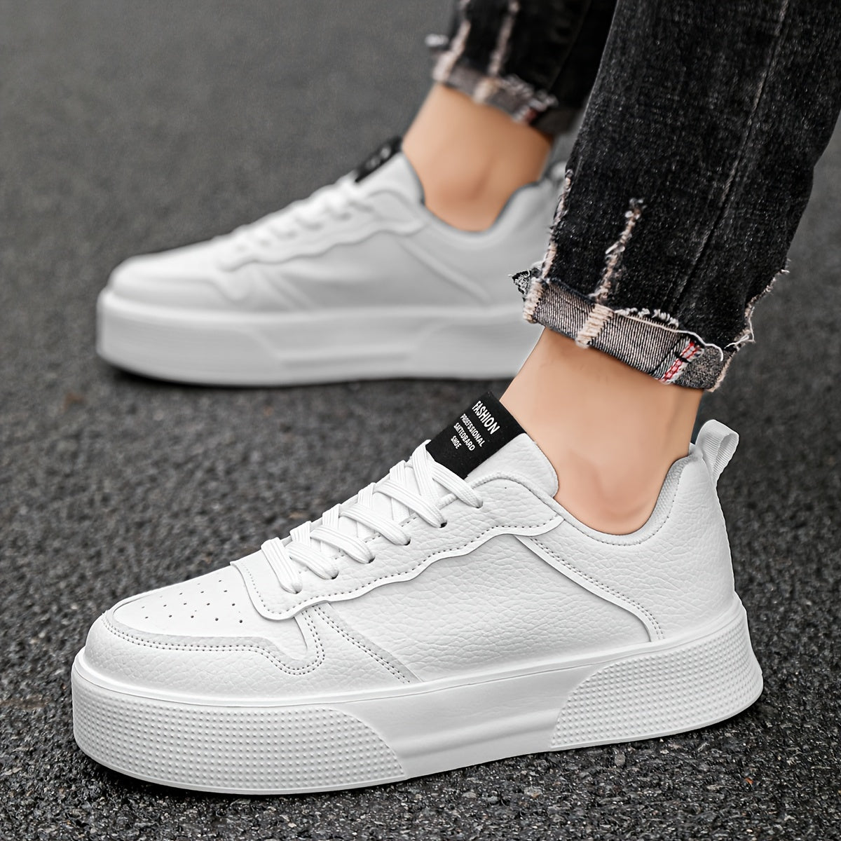 Erkaklar uchun bog'ichli tasodifiy sport poyabzallari, bir xil rangda, ko'p maqsadli dizayn, qulay va nozik, balandlikni oshirish uchun qalin taglik.