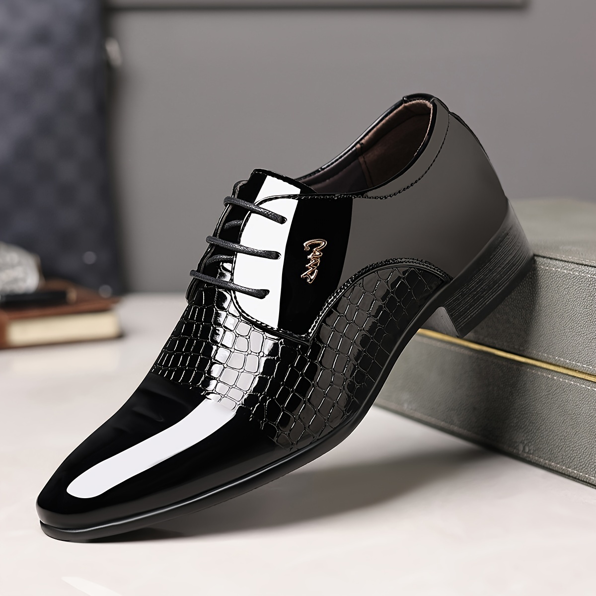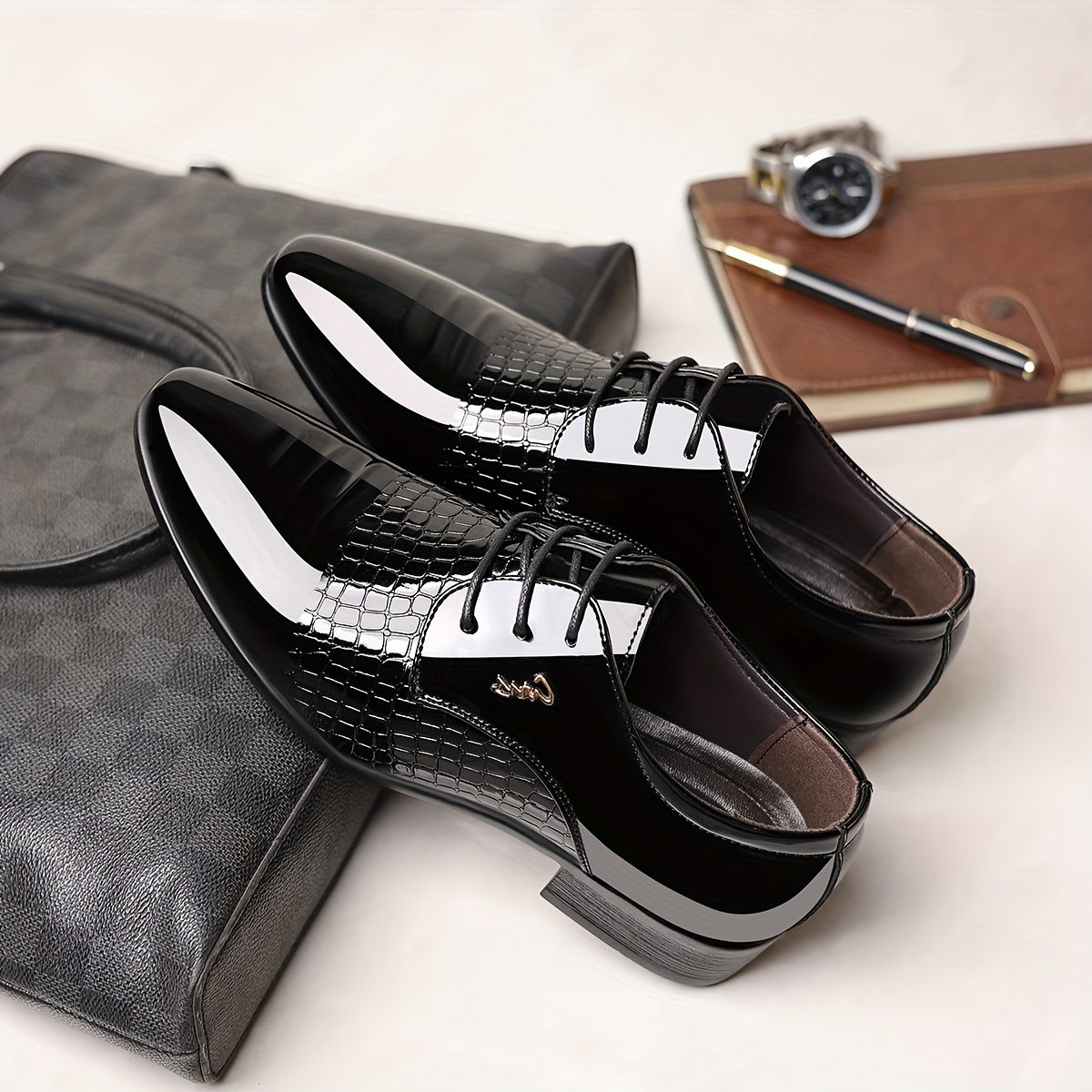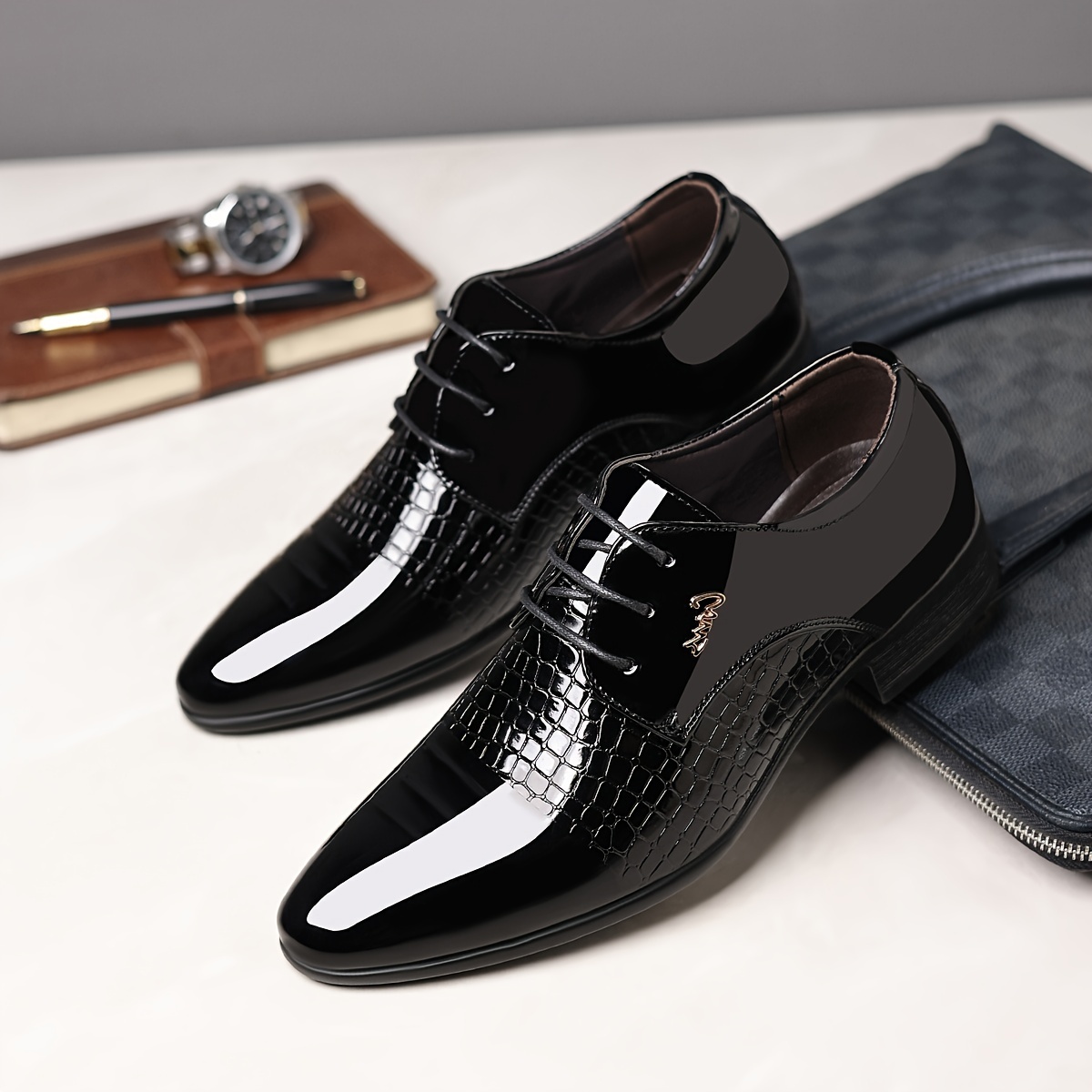 Erkaklar uchun klassik britaniya uslubidagi, qora rangdagi to'ylar va har kuni nafislik uchun ideal bo'lgan, ipli uchburchak poyabzal.