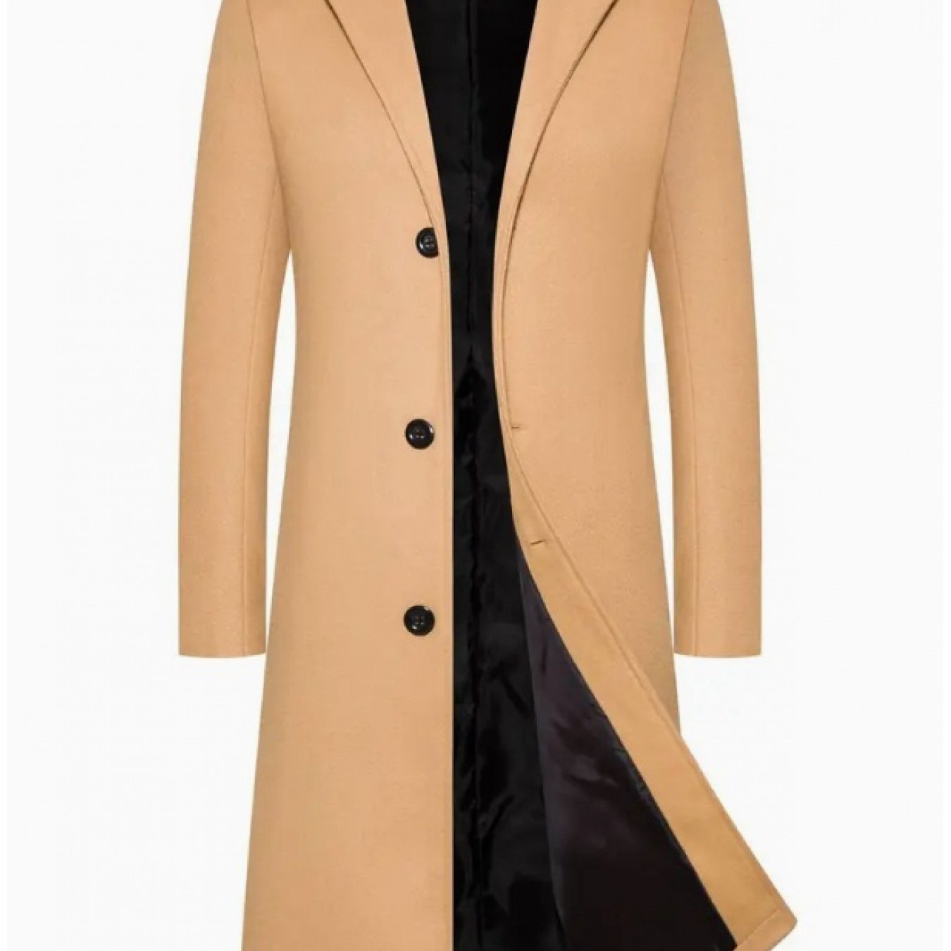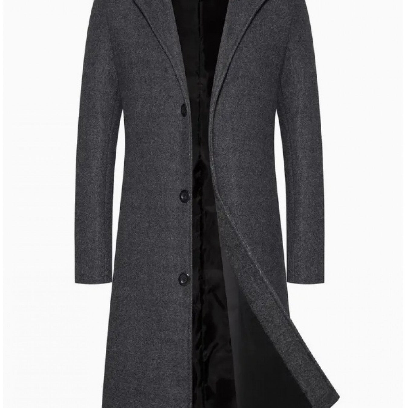 Erkaklar uchun och kulrang o'rta uzunlikdagi trenchcoat, tasodifiy turdagi turli xil yenglar, tugmachali uslub, 100% polyesterdan tayyorlangan. Kuz va qish uchun ideal, odatiy moslik.