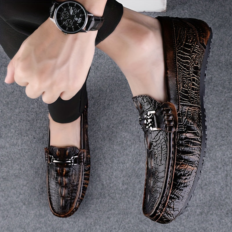 Erkaklar uchun yengil slip-on loferlar, bo'lakli sigir terisidan tayyorlangan, bir rangda. Qulay, sirpanmaydigan kauchuk taglikka ega, tasodifiy yoki rasmiy kiyim uchun mos.