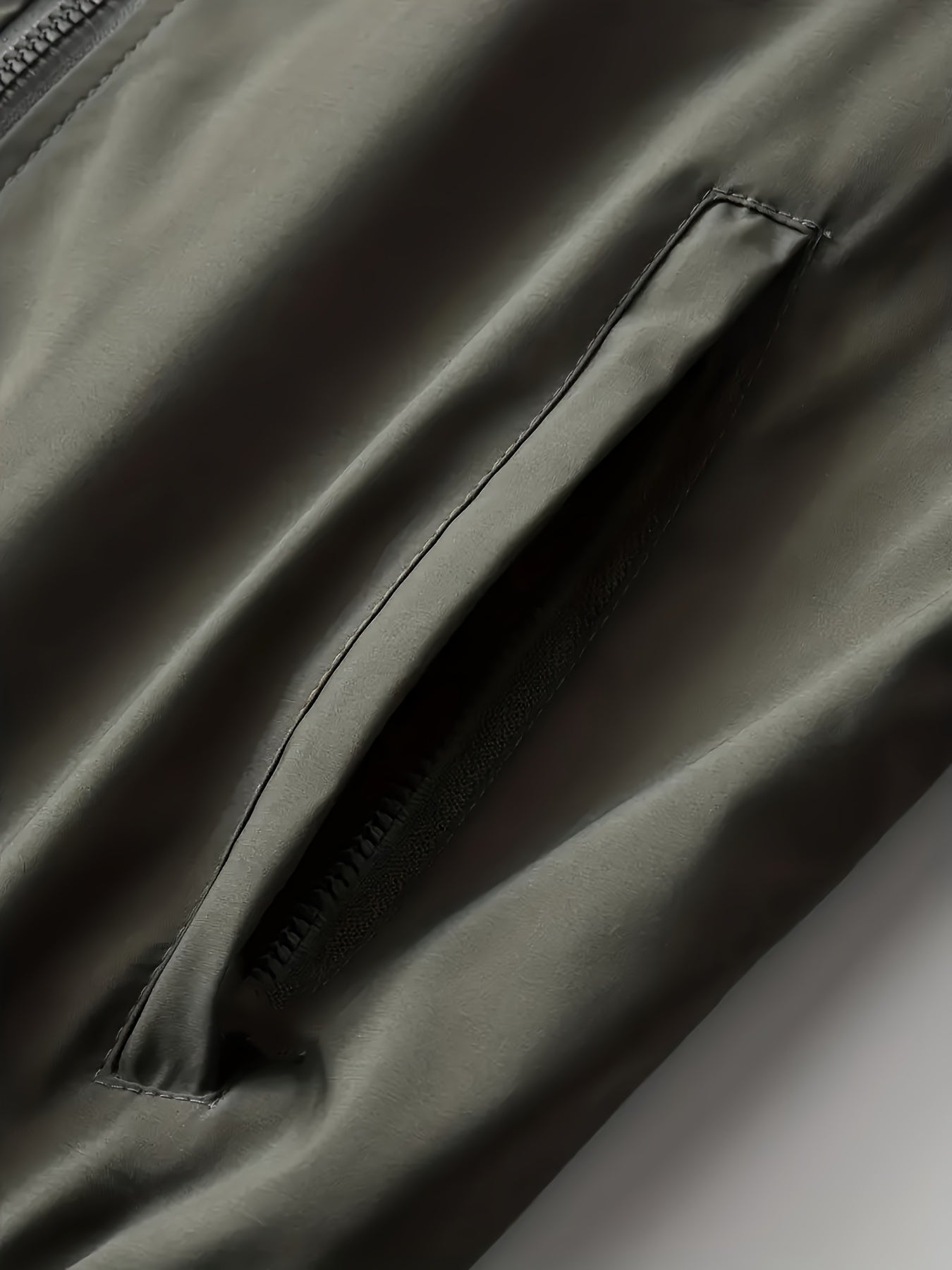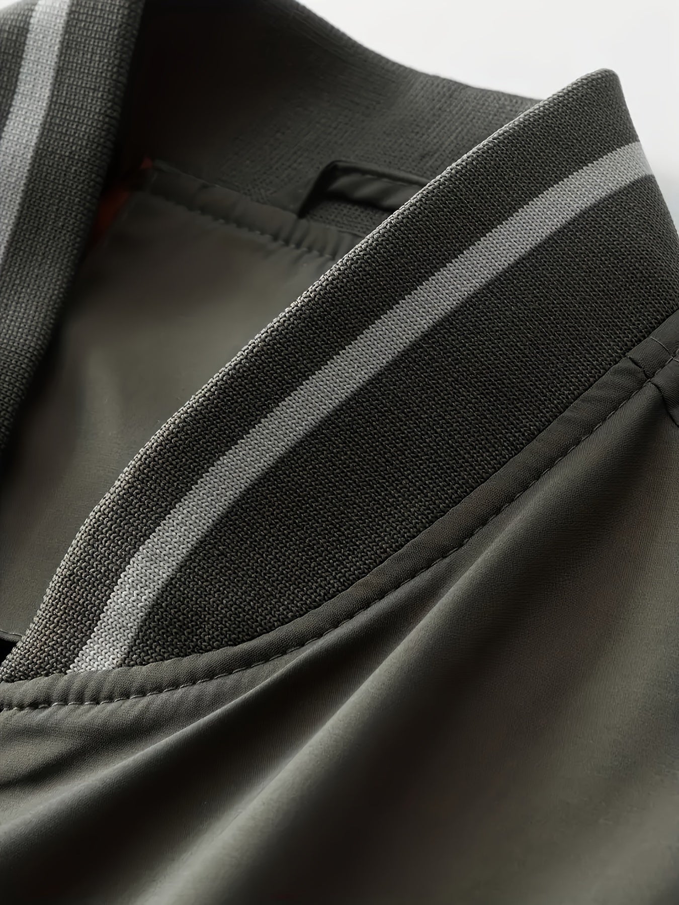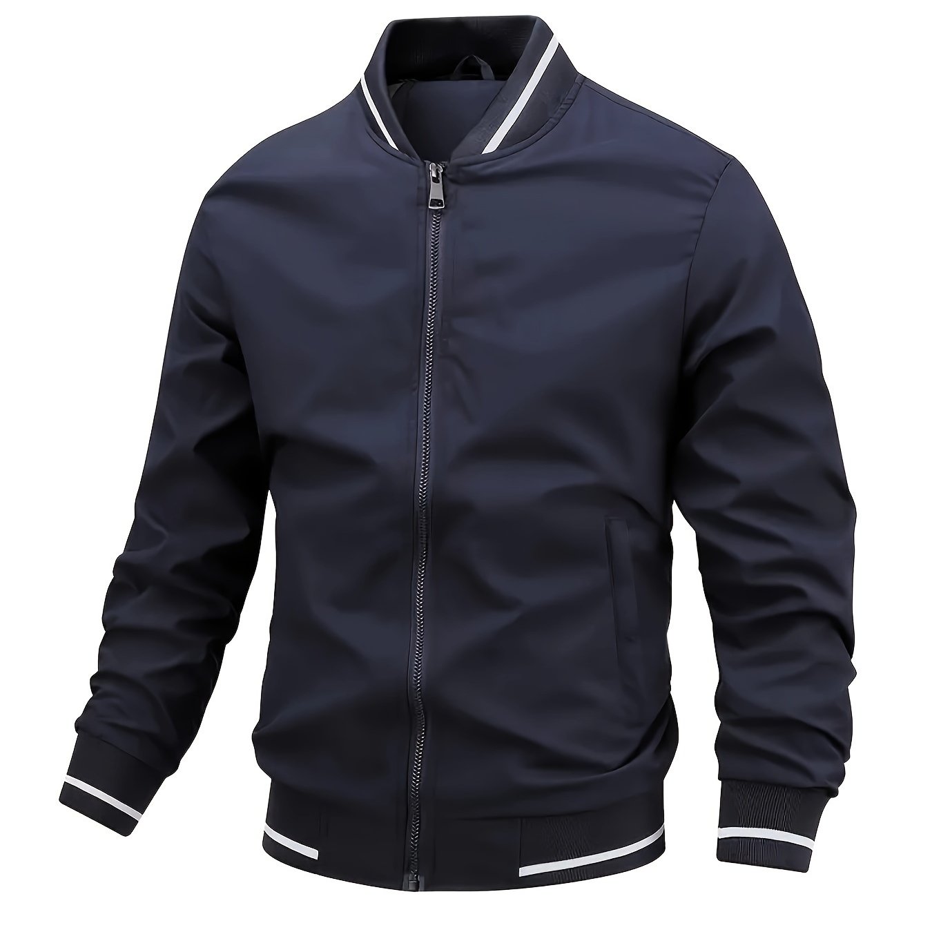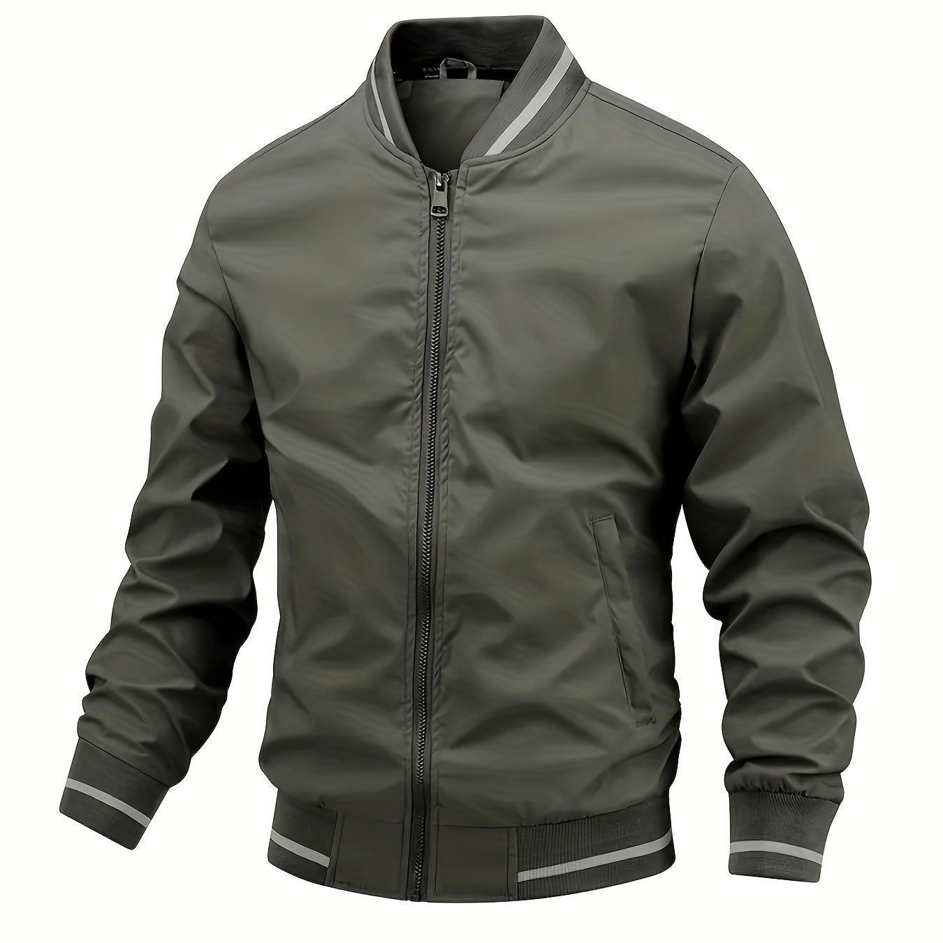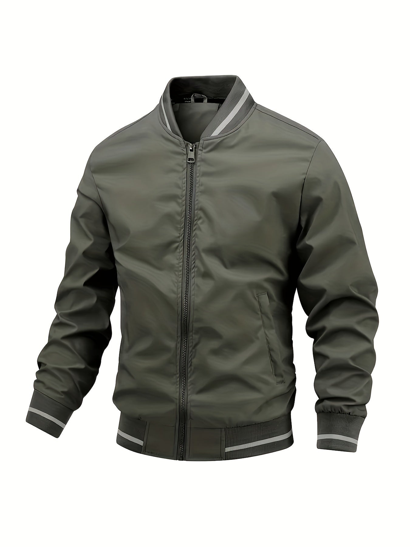Erkaklar uchun engil shamol o'tkazmaydigan kurtka, 100% polyesterdan tayyorlangan, uzun yengli, oddiy kesim va beysbol yaka bilan. Bahor va kuz mavsumlari uchun mos. To'qilgan matodan tayyorlangan, og'irligi